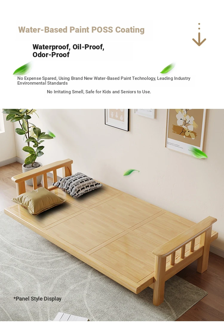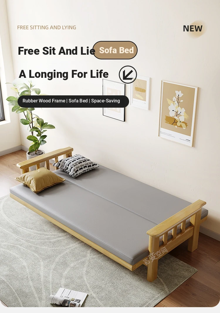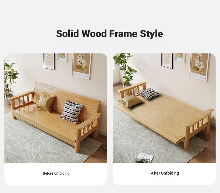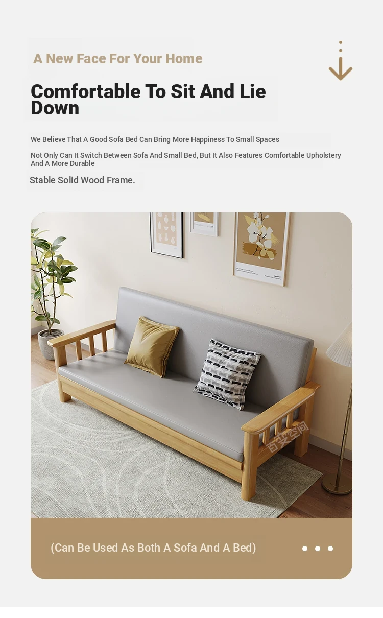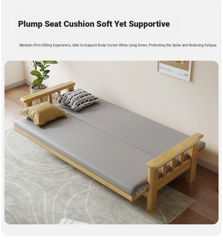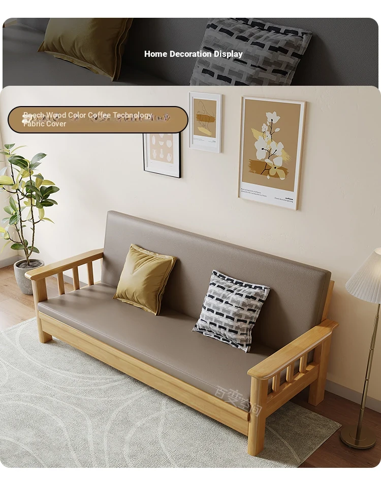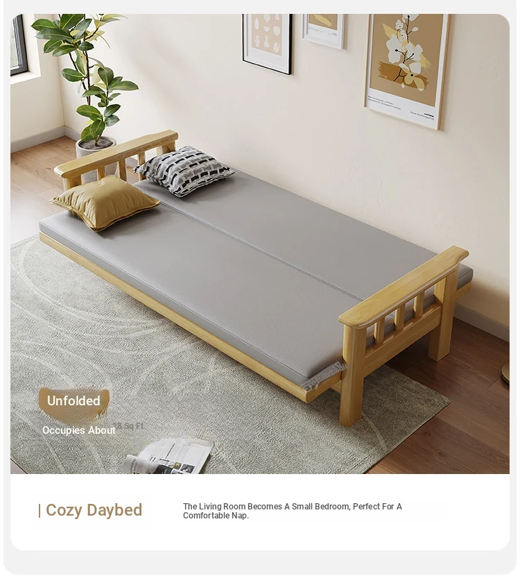 Multipurpose Solid Wood Sofa Bed - Foldable, Space-Saving Design for Small Living Rooms, Stylish Pull-Out Sleeper Sofa for Seating and Relaxation