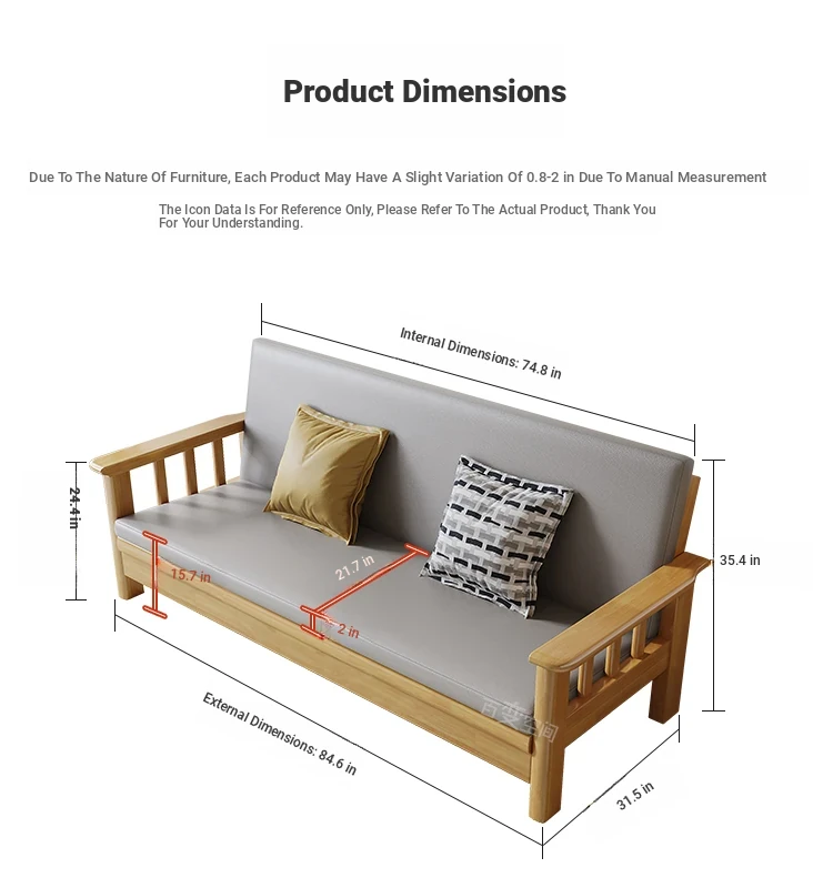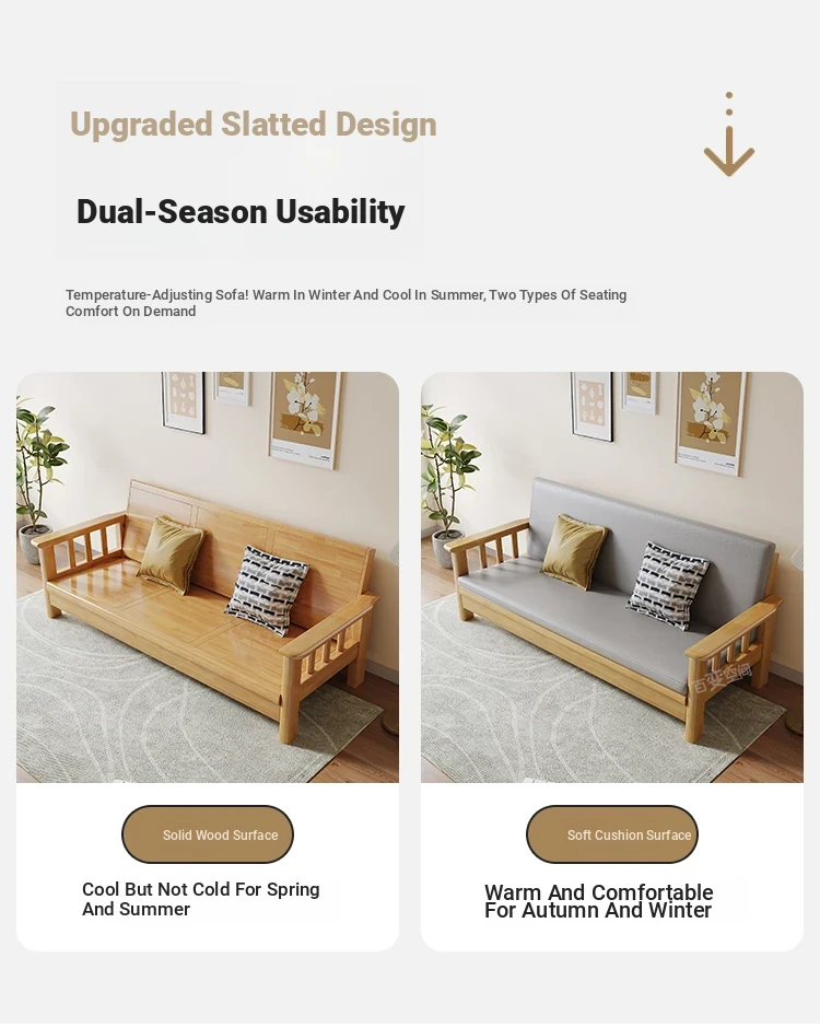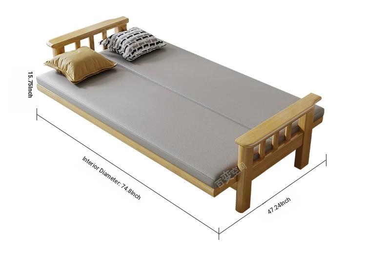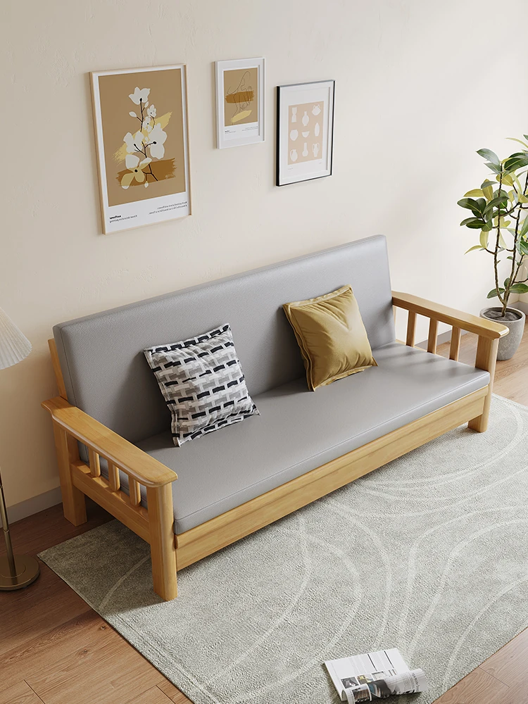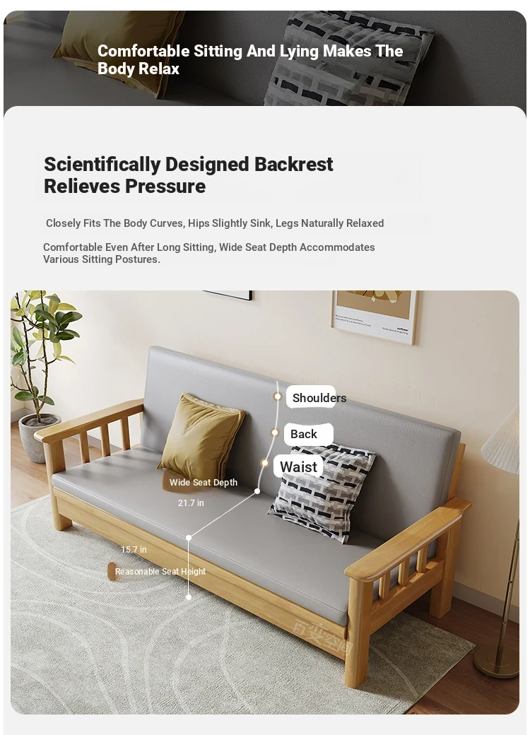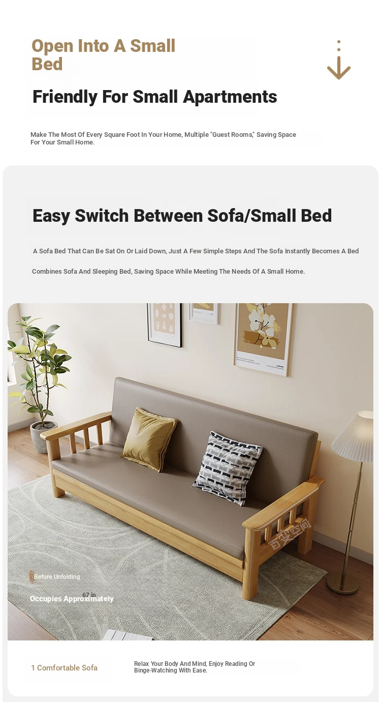 Multipurpose Solid Wood Sofa Bed - Foldable, Space-Saving Design for Small Living Rooms, Stylish Pull-Out Sleeper Sofa for Seating and Relaxation