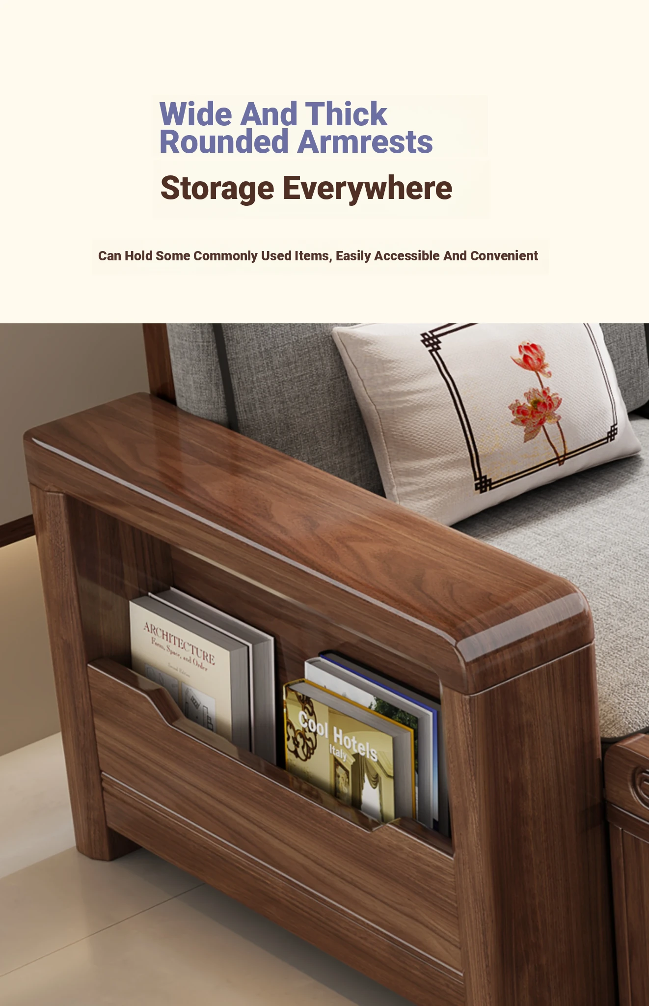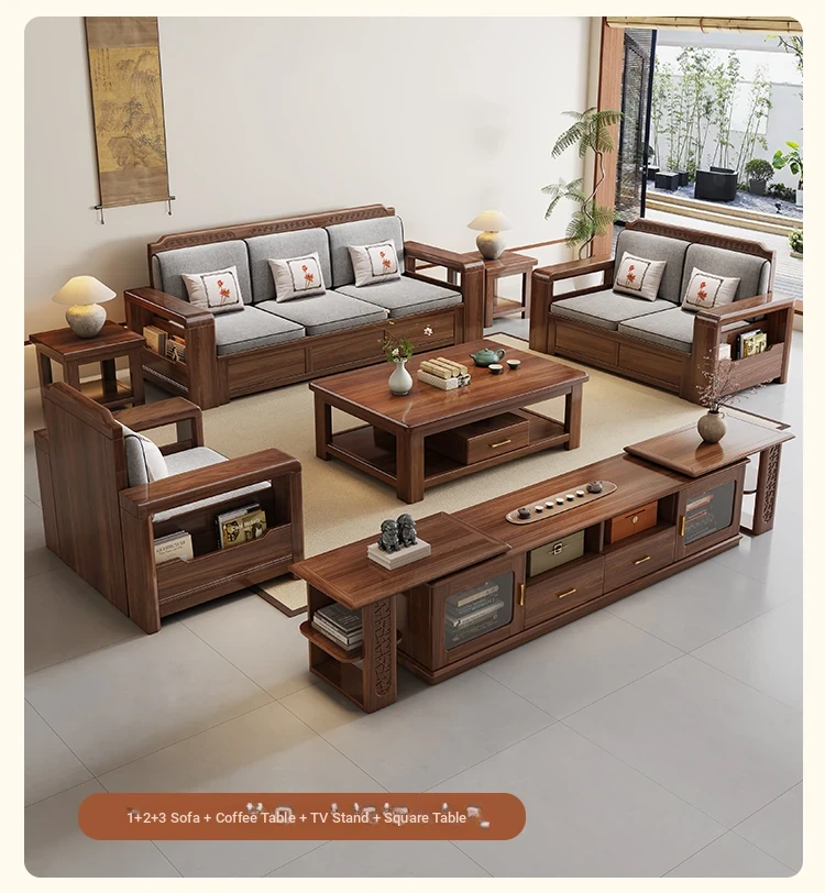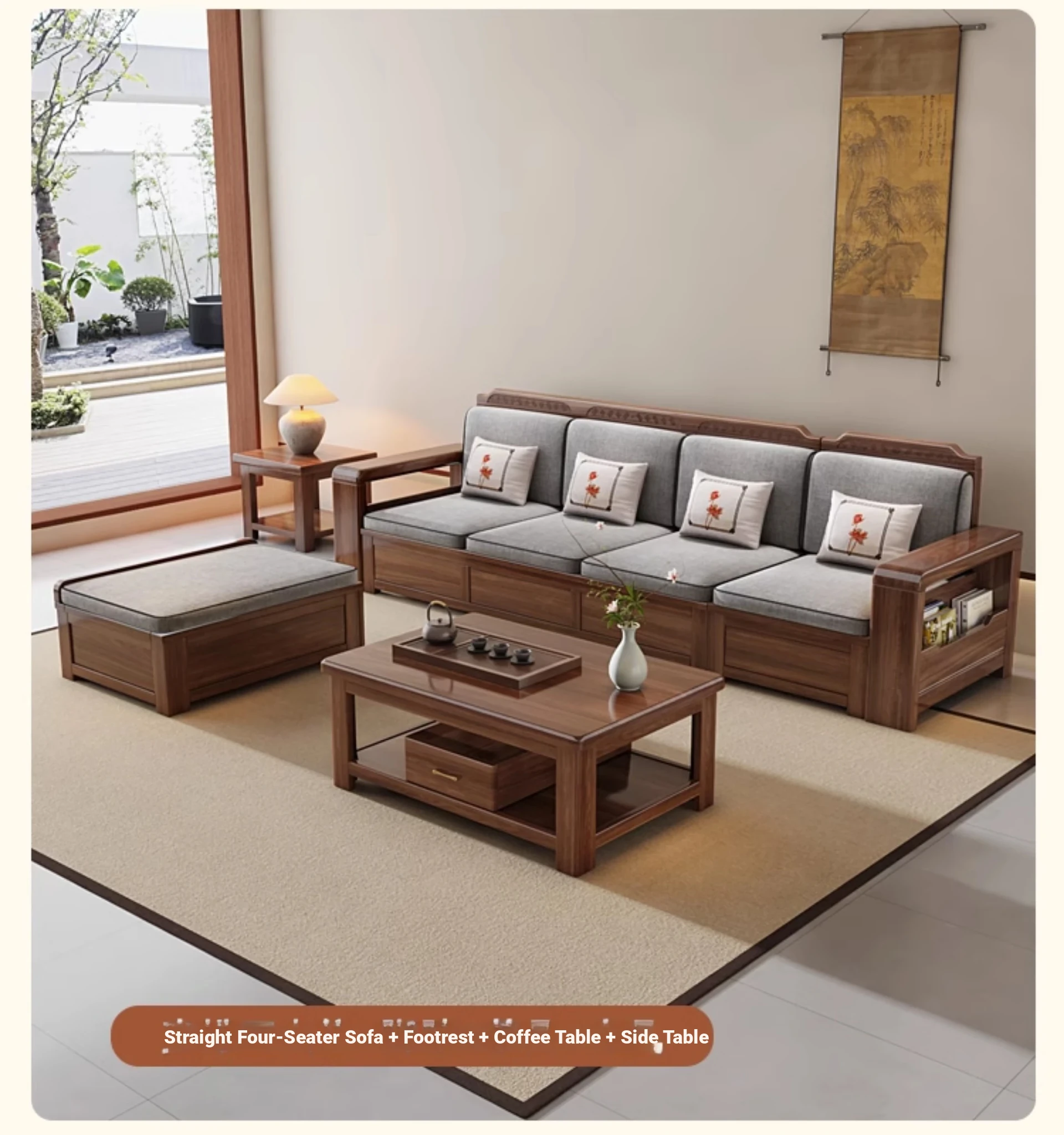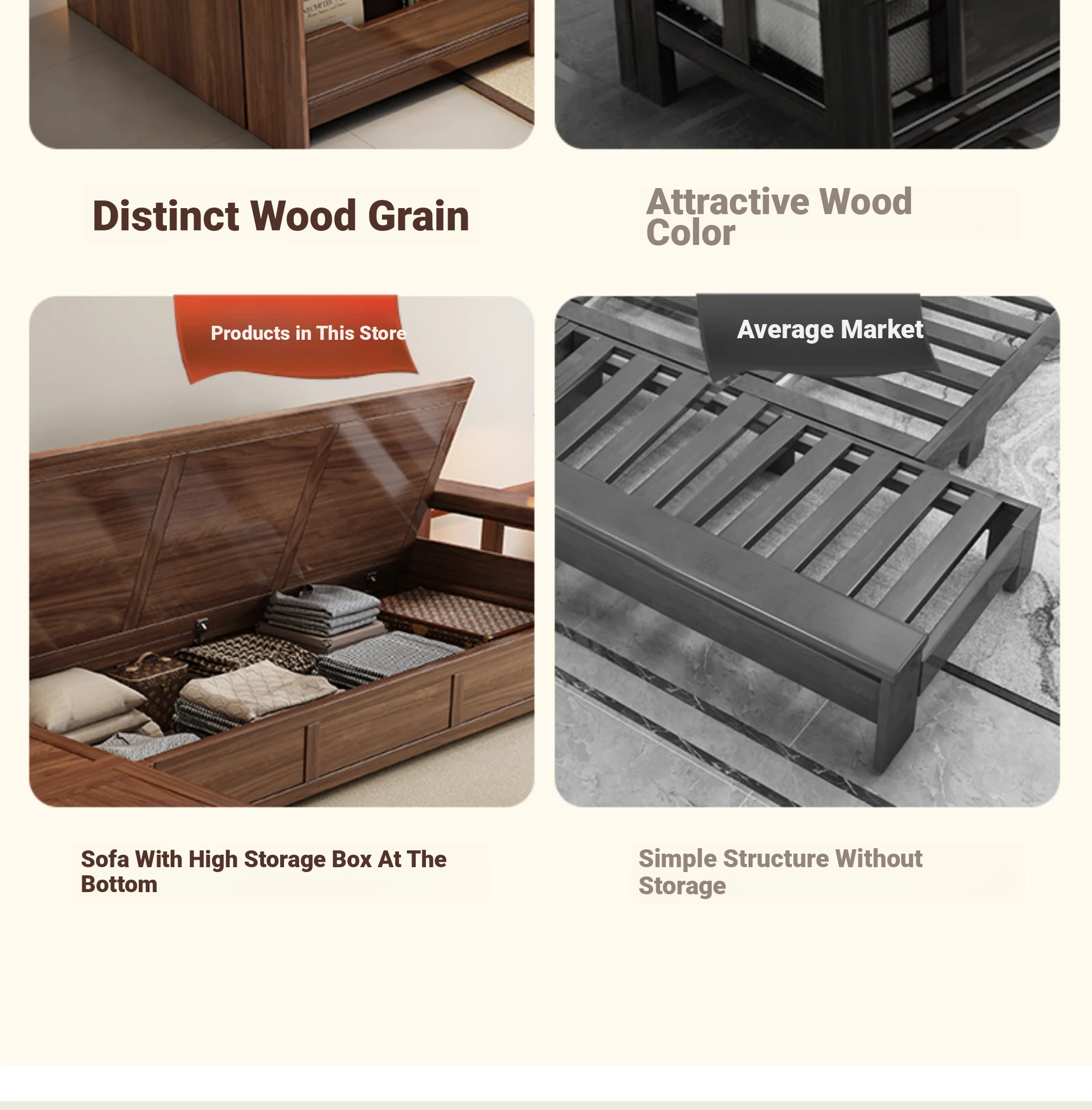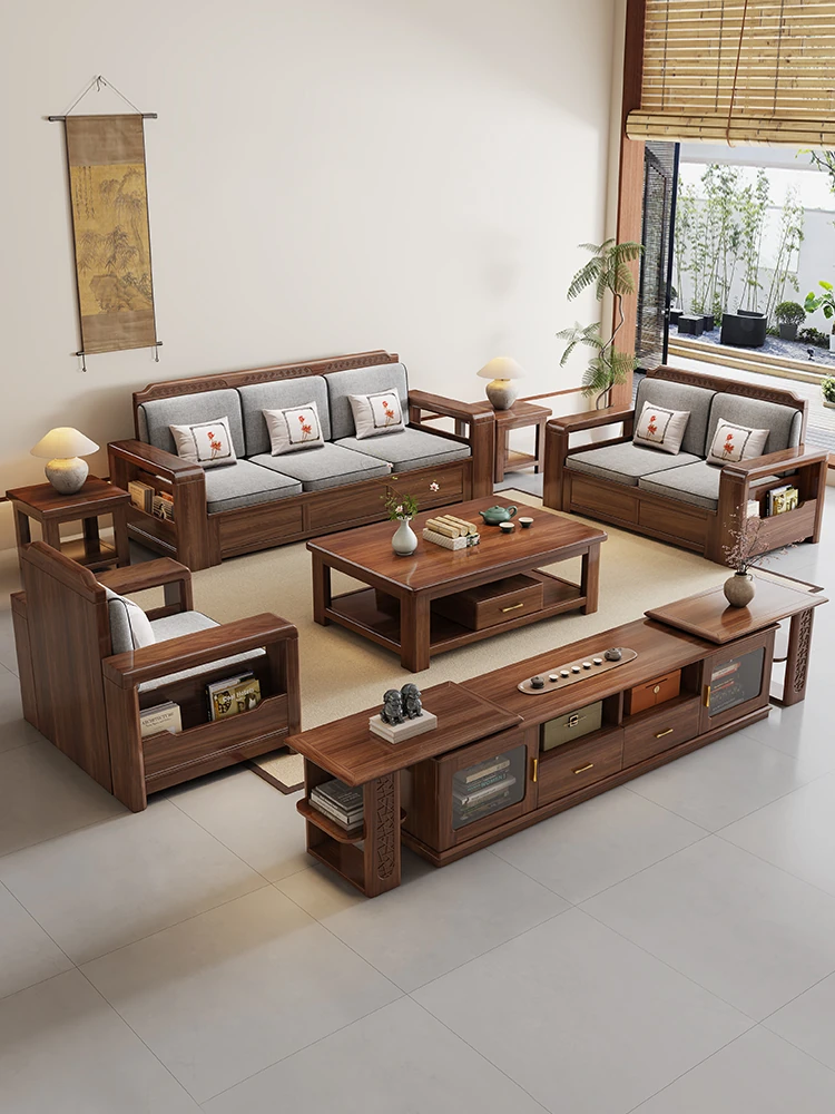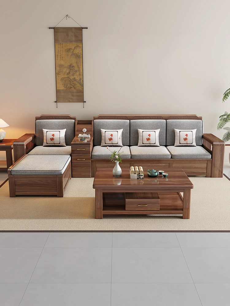 New Chinese Style Solid Black Walnut Wood Sofa - Versatile for Winter & Summer, Space-Saving Design with Storage, Direct Factory Sale for Your Living Room