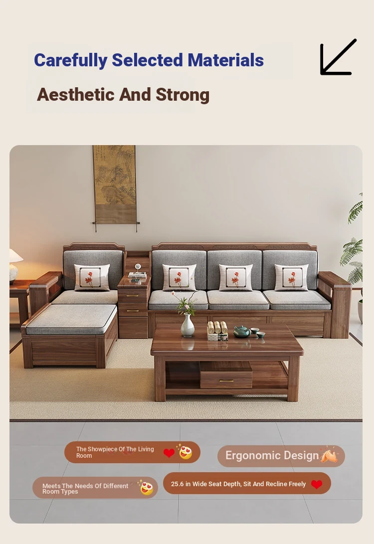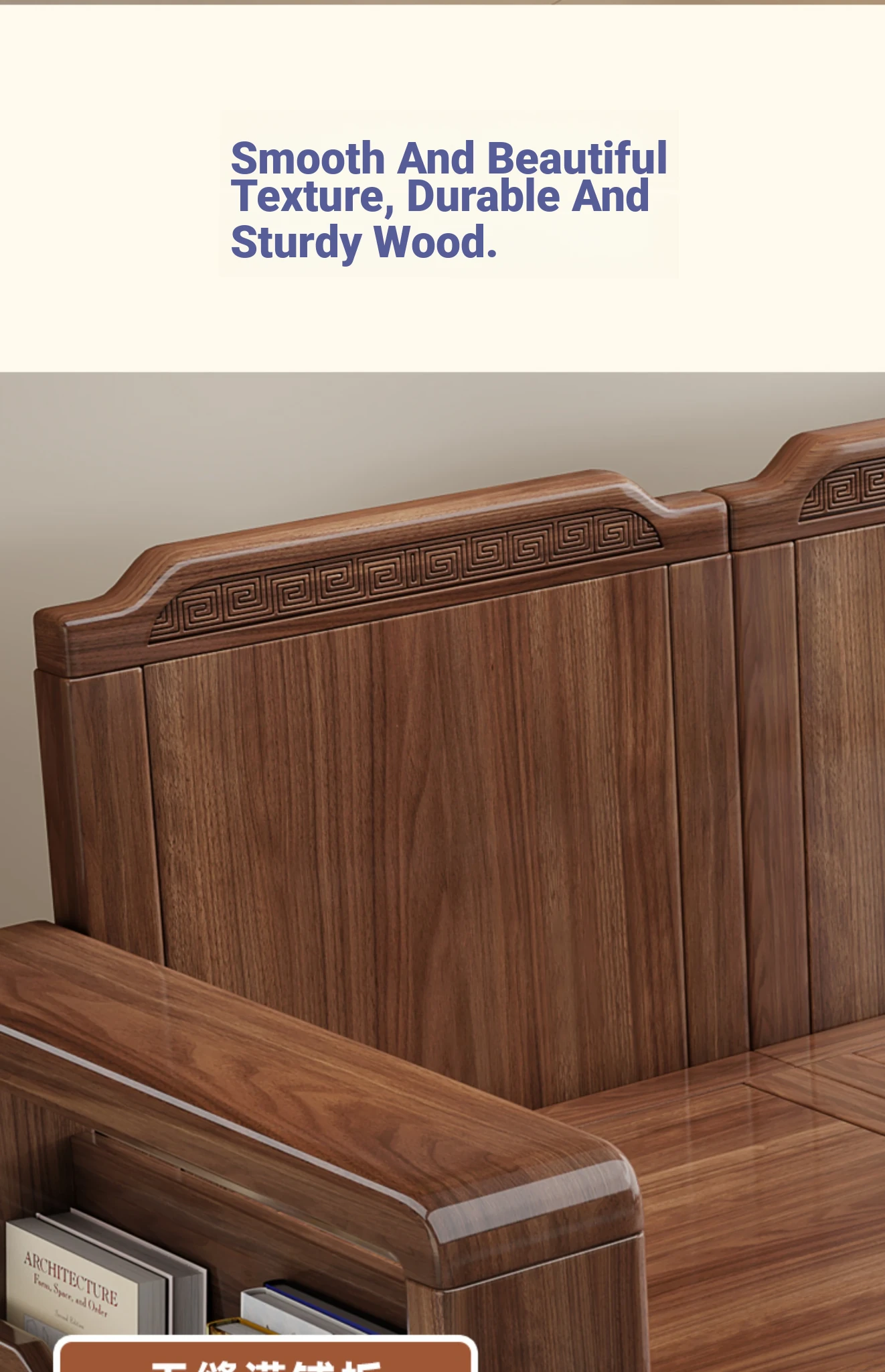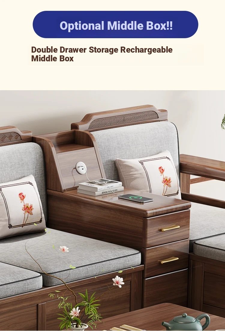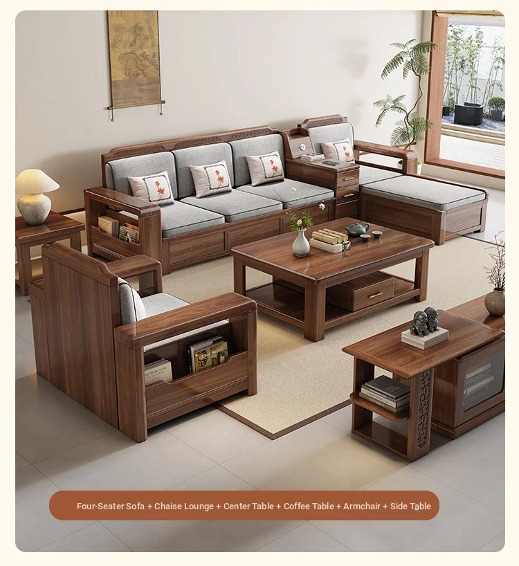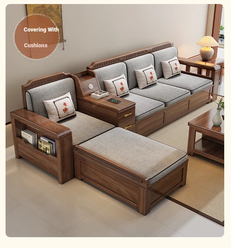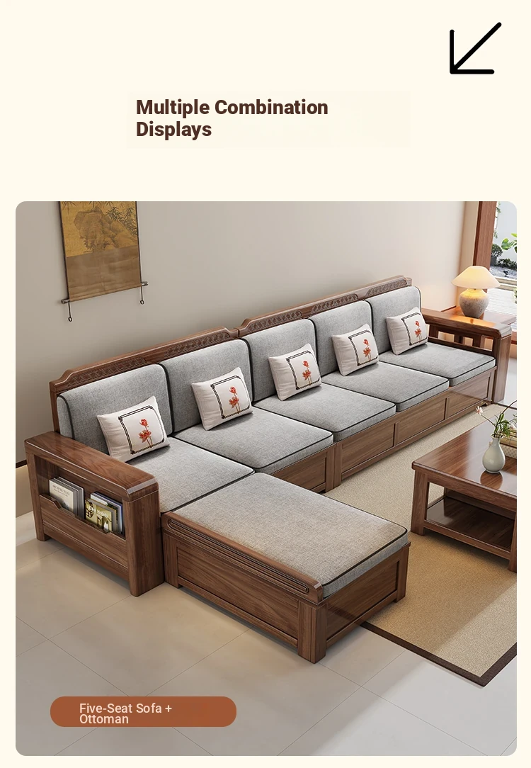 New Chinese Style Solid Black Walnut Wood Sofa - Versatile for Winter & Summer, Space-Saving Design with Storage, Direct Factory Sale for Your Living Room