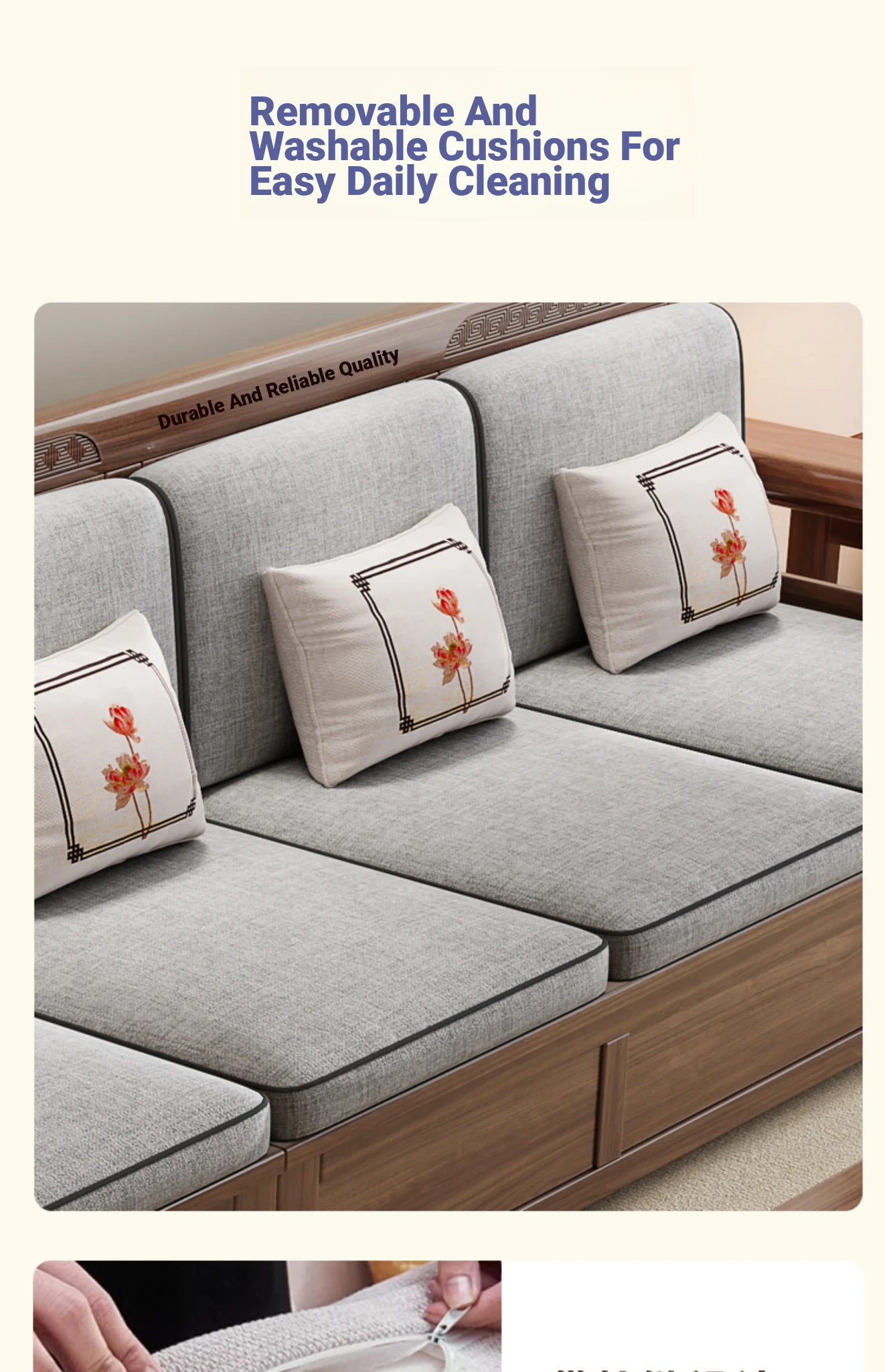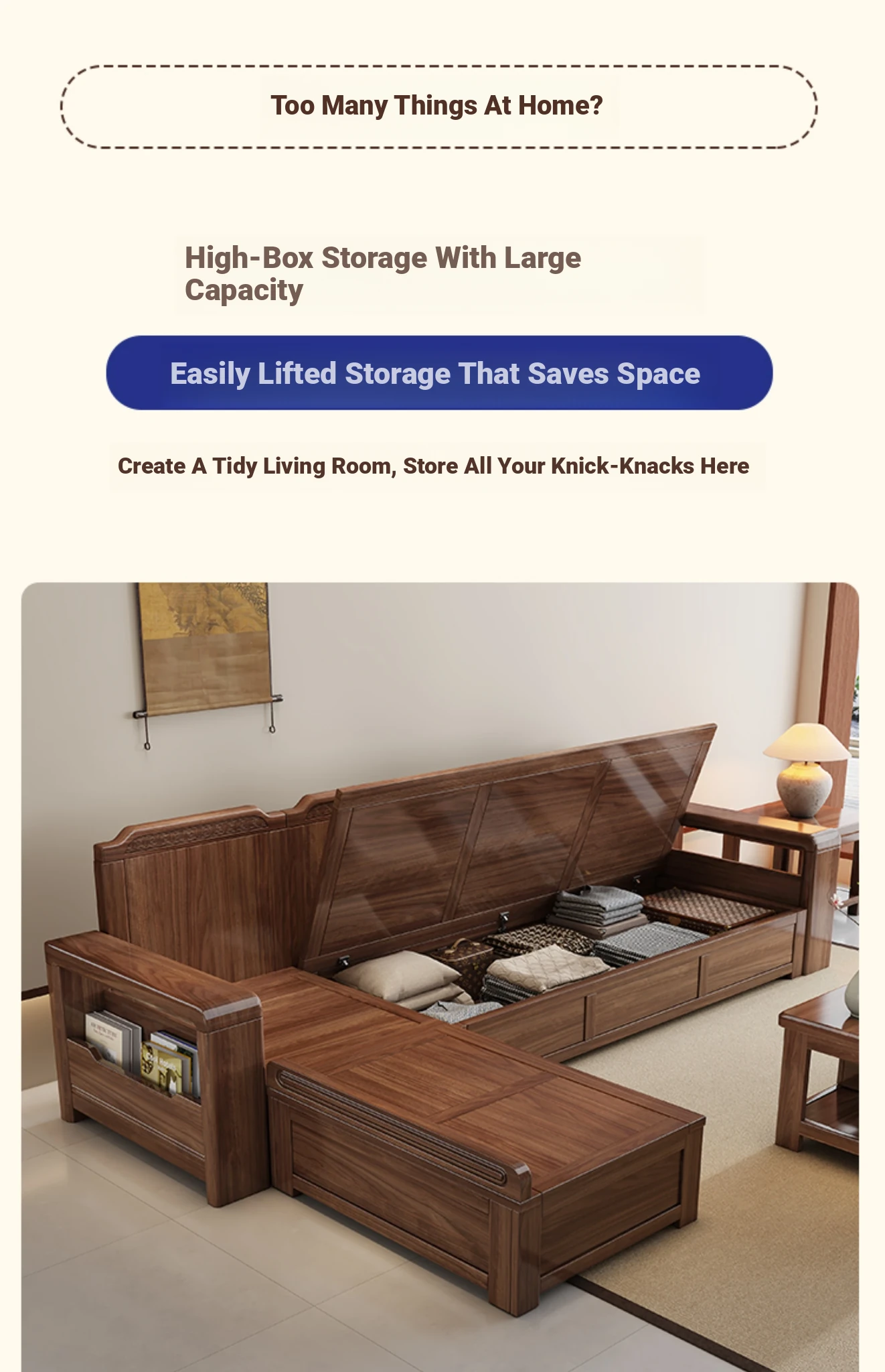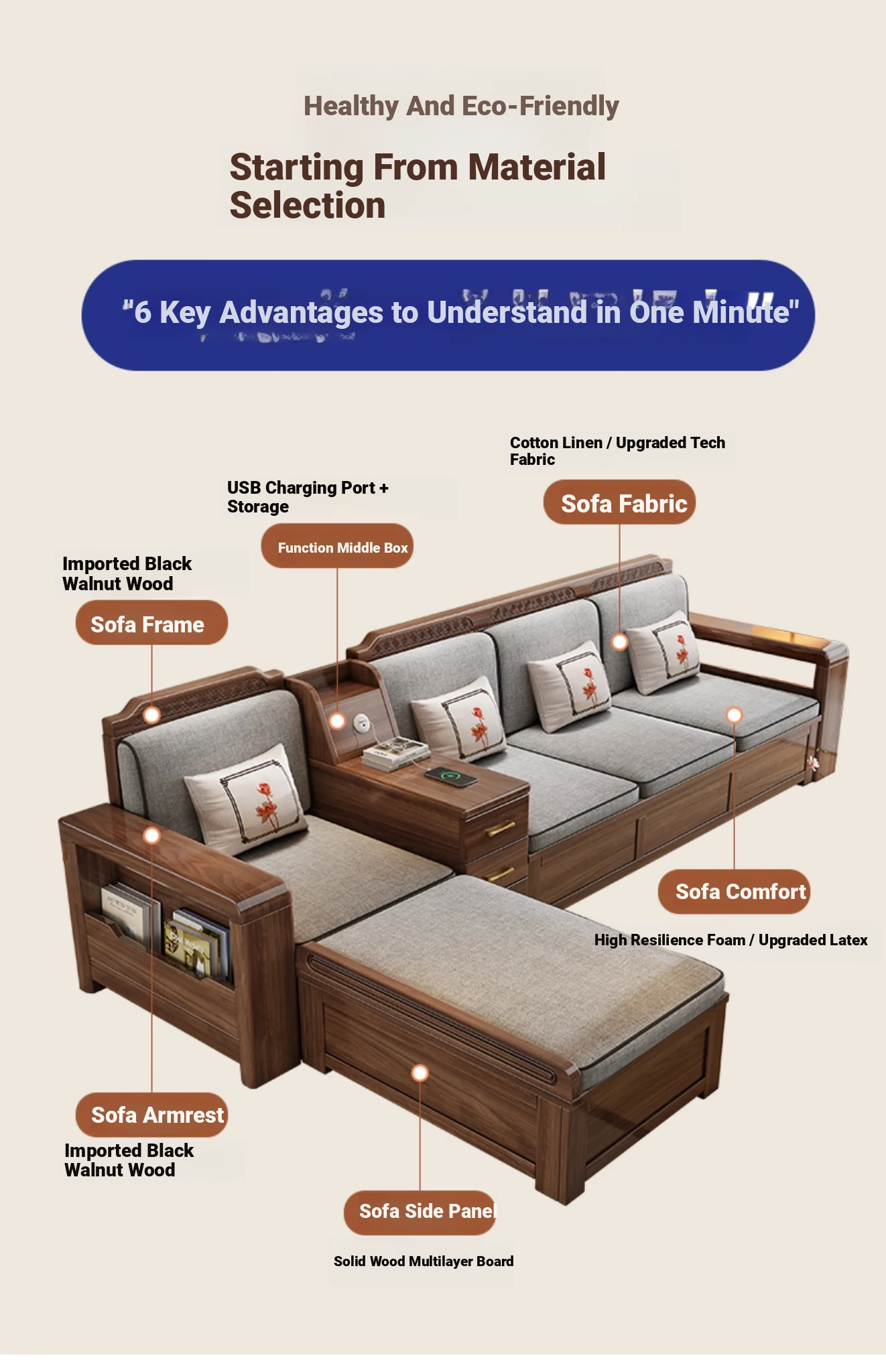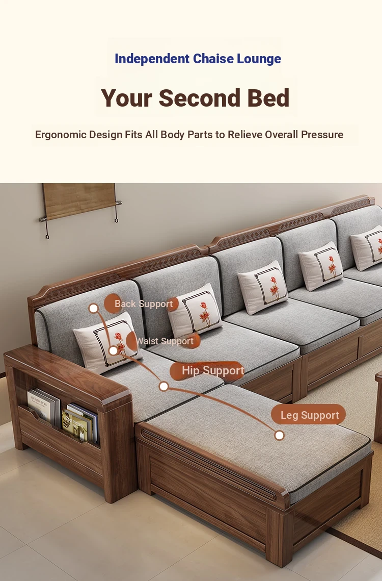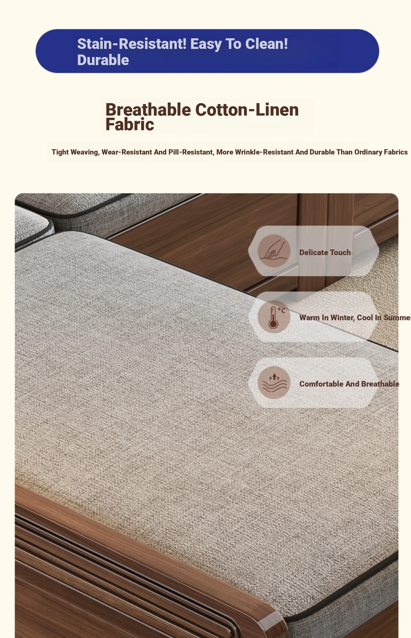 New Chinese Style Solid Black Walnut Wood Sofa - Versatile for Winter & Summer, Space-Saving Design with Storage, Direct Factory Sale for Your Living Room