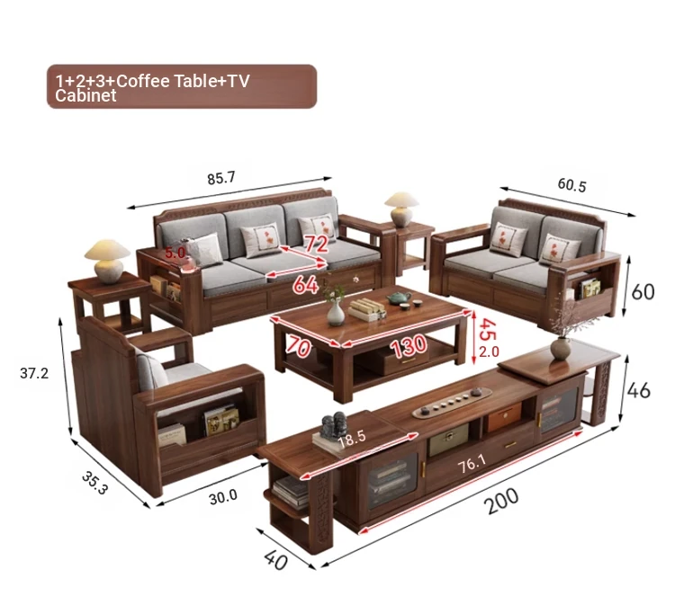 [Silk] 1+1+3 + tea table + square + TV cabinet