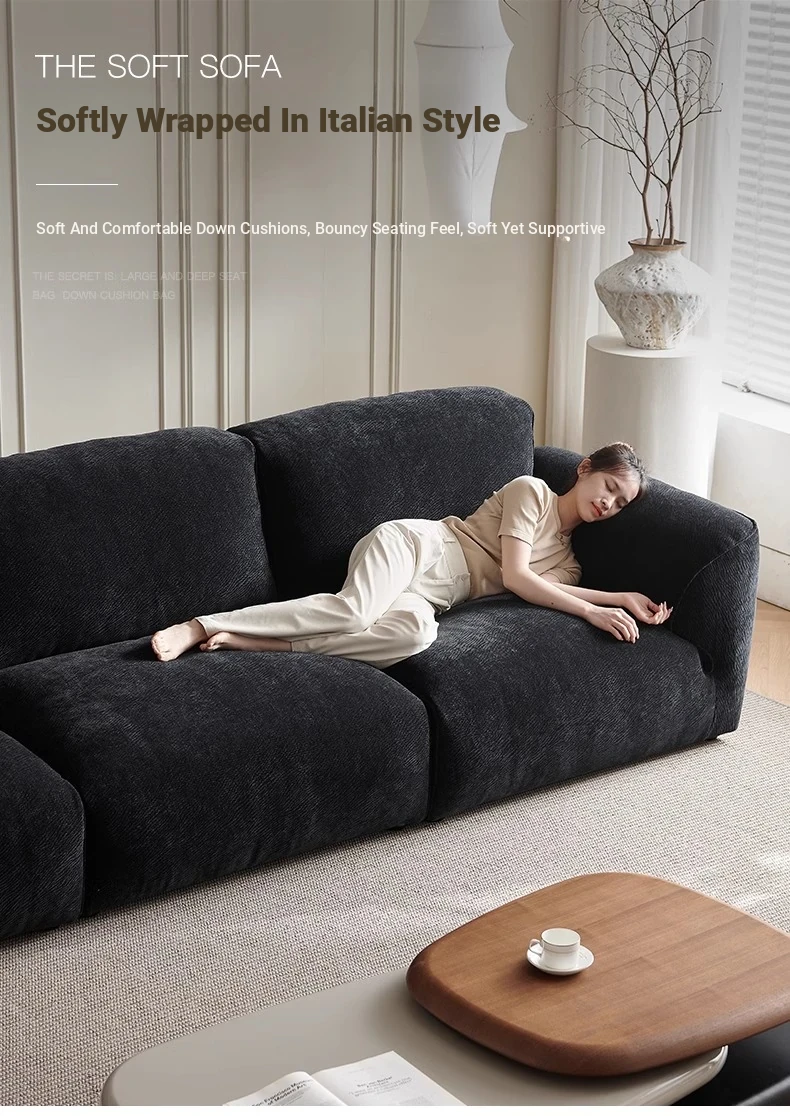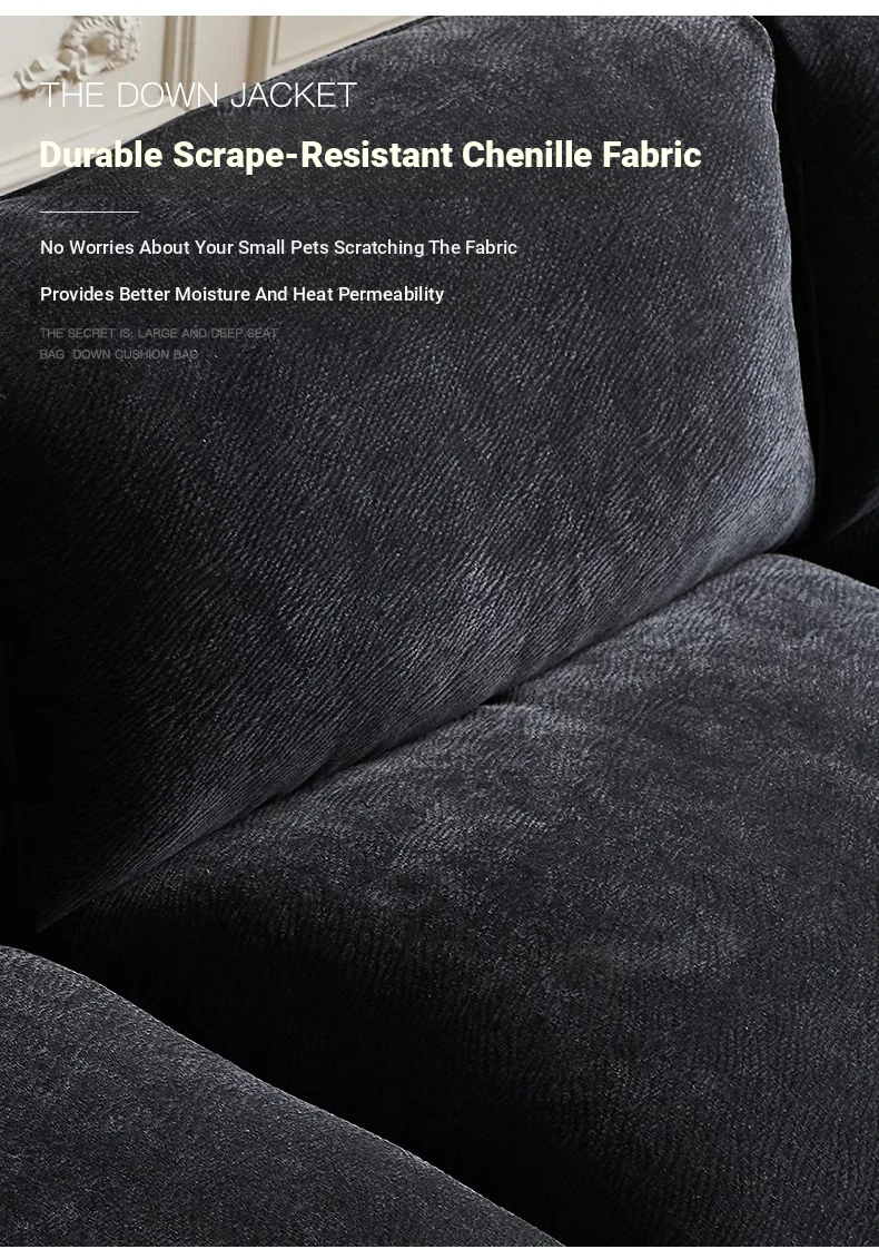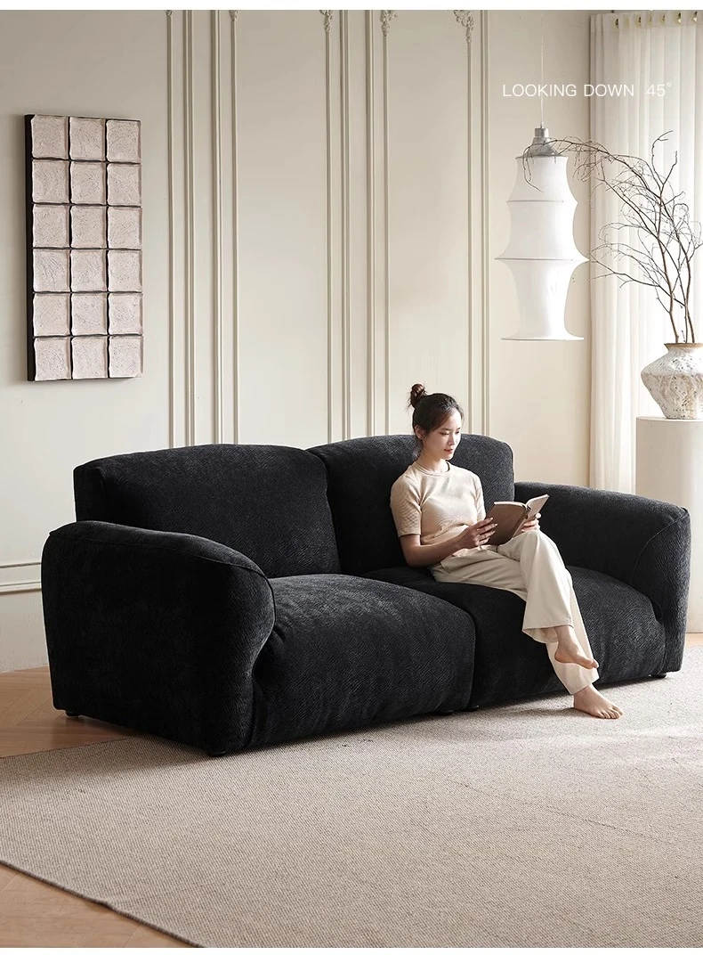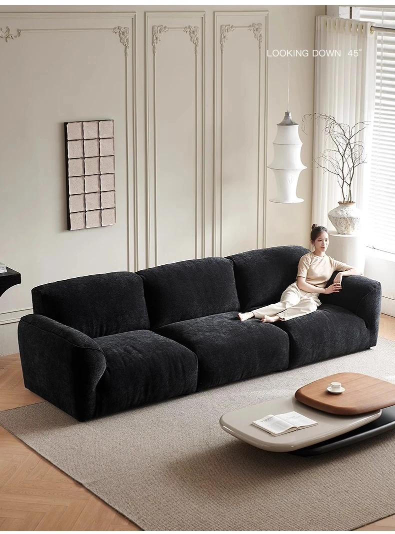 Nigel Edra Grande Sofa - Vintage Black Chenille Fabric Living Room Sofa, Straight Design, 2024 New Arrival