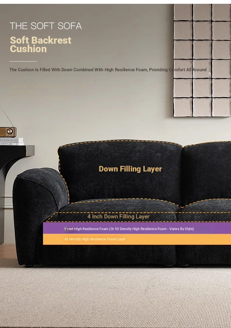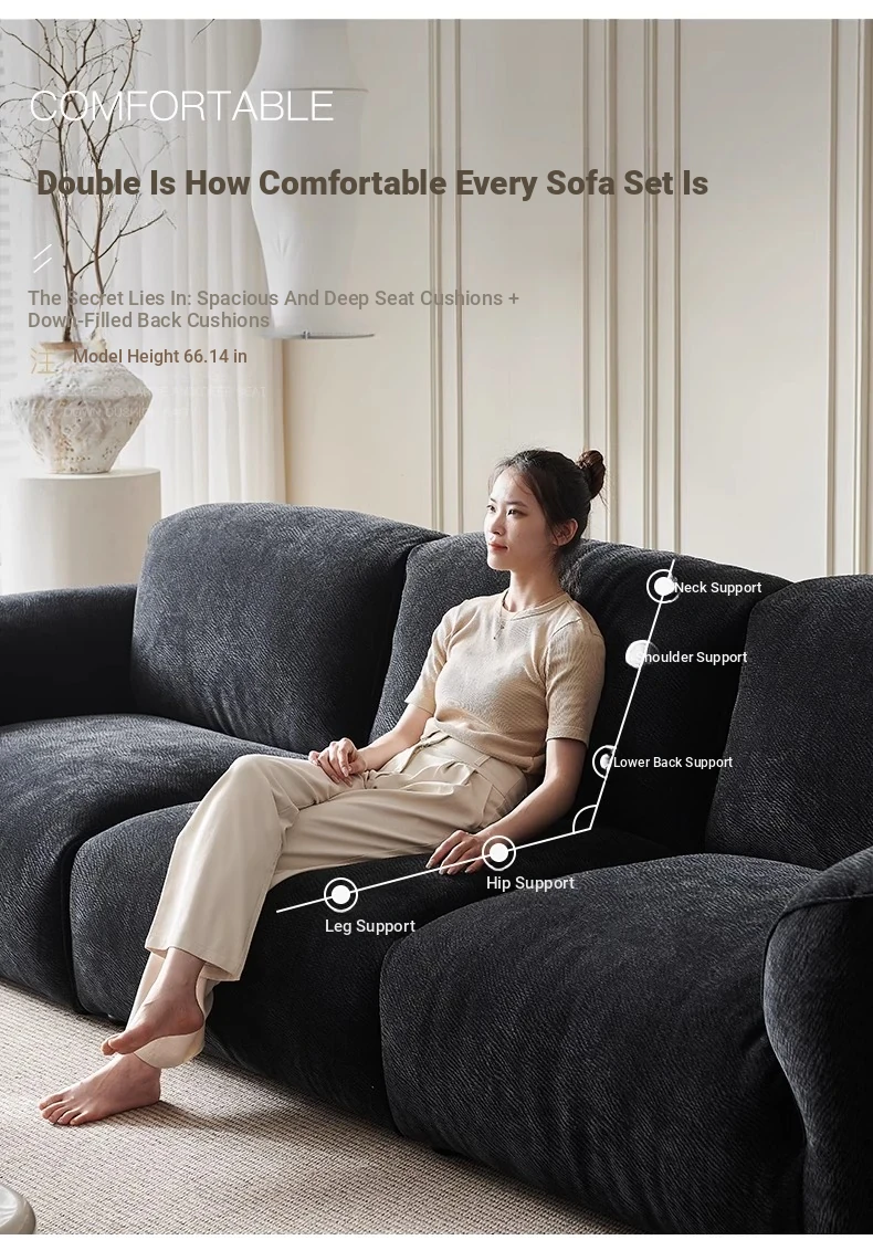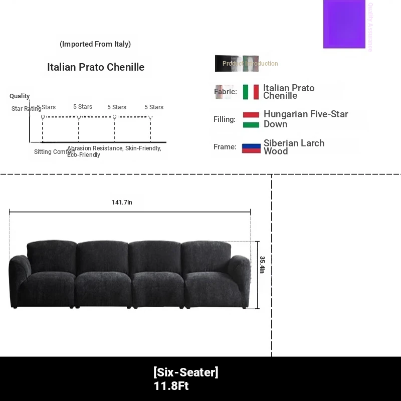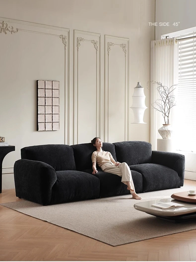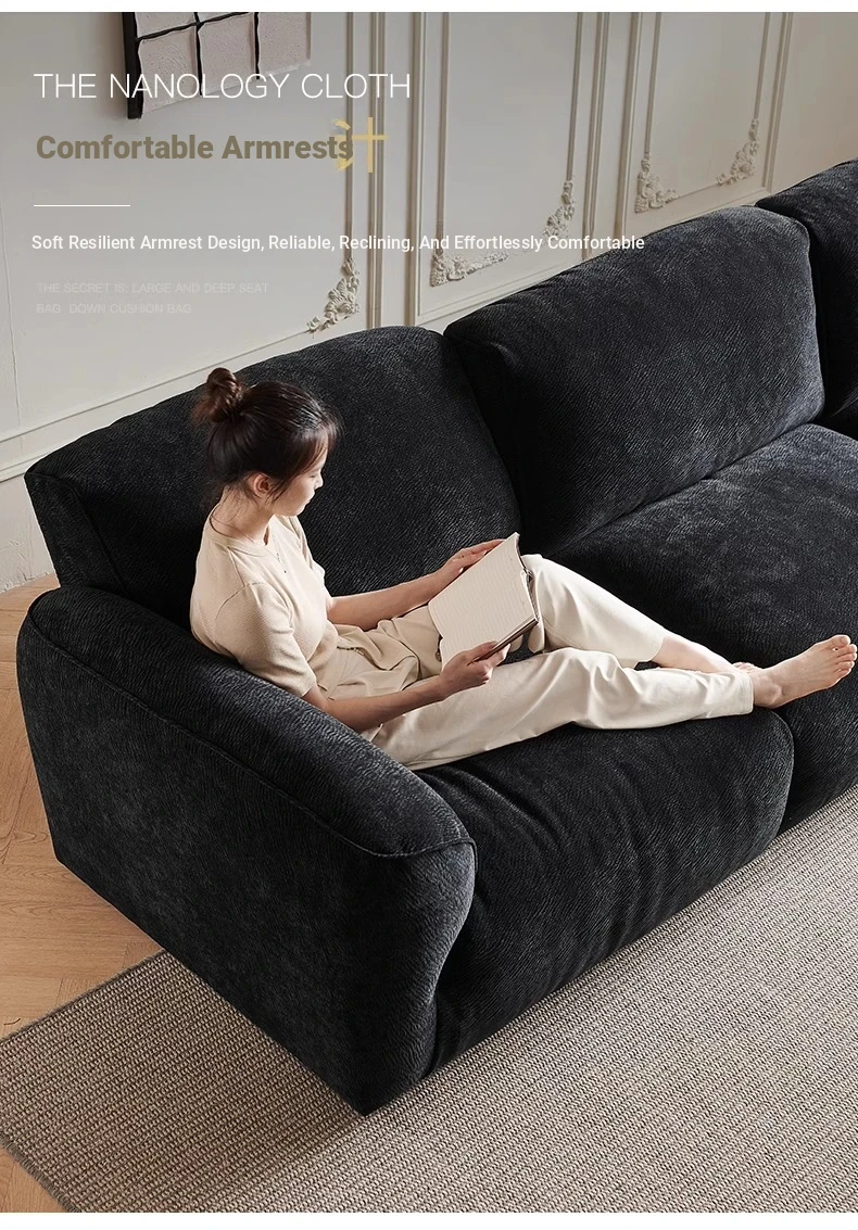 Nigel Edra Grande Sofa - Vintage Black Chenille Fabric Living Room Sofa, Straight Design, 2024 New Arrival