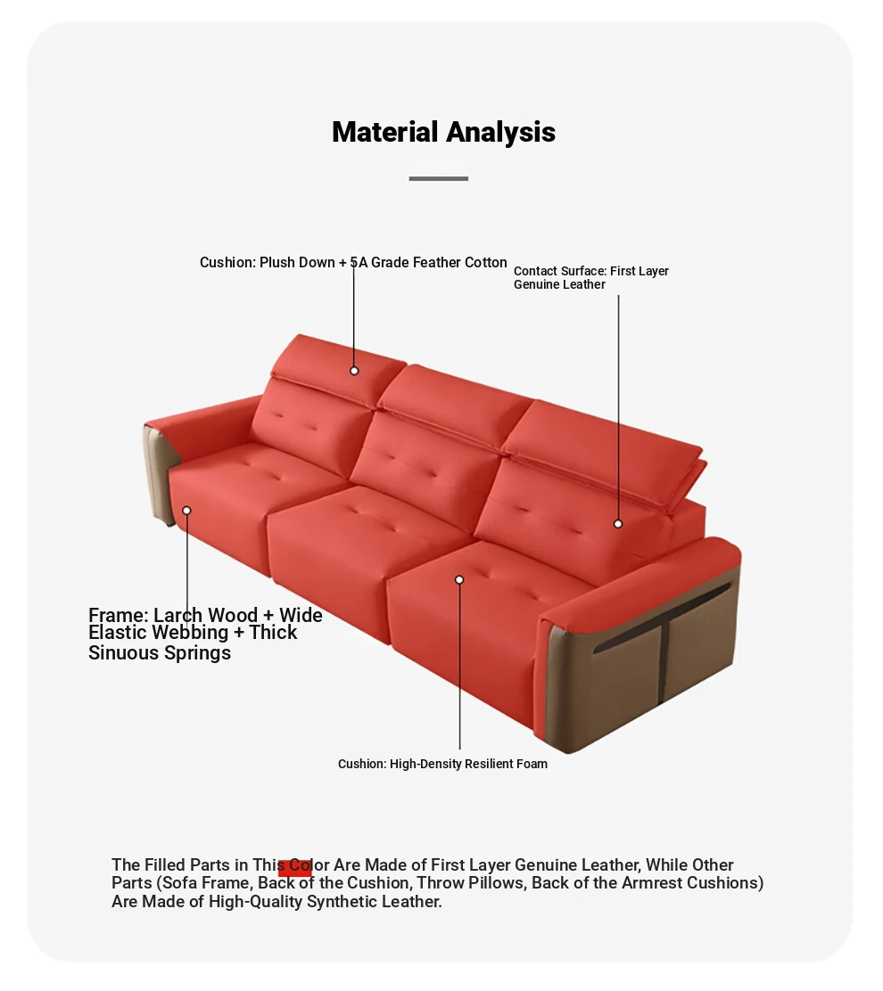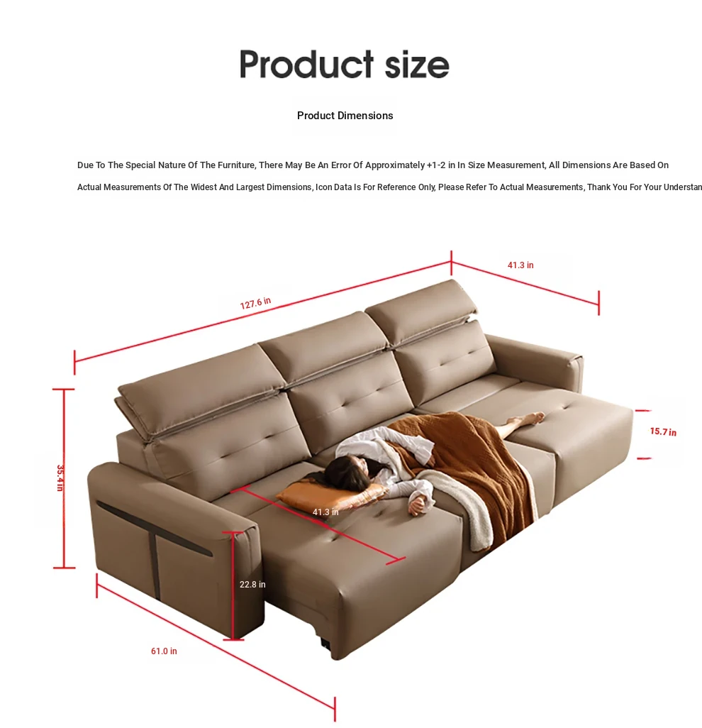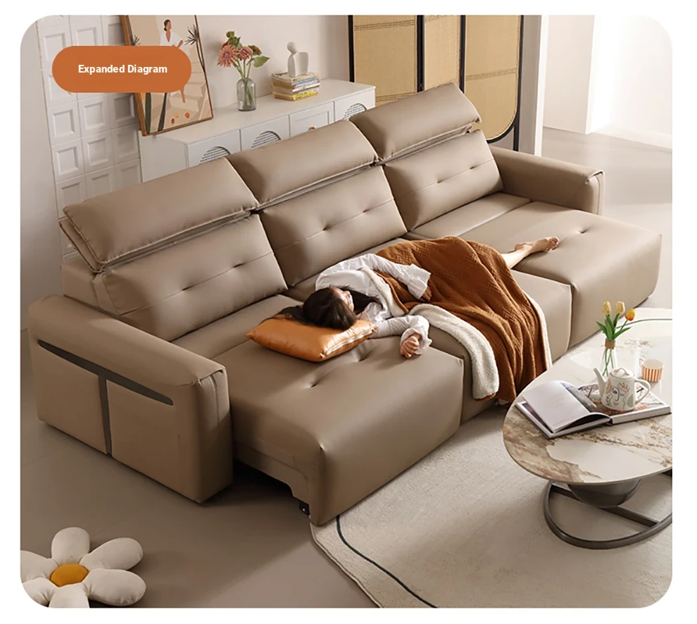 Nordic Palace Multifunctional Genuine Leather Sofa - Italian Minimalist Style, Adjustable Backrest, Perfect for Living Room and Home Use, Wall-Mountable, Sleeper Sofa for Ultimate Comfort and Style.