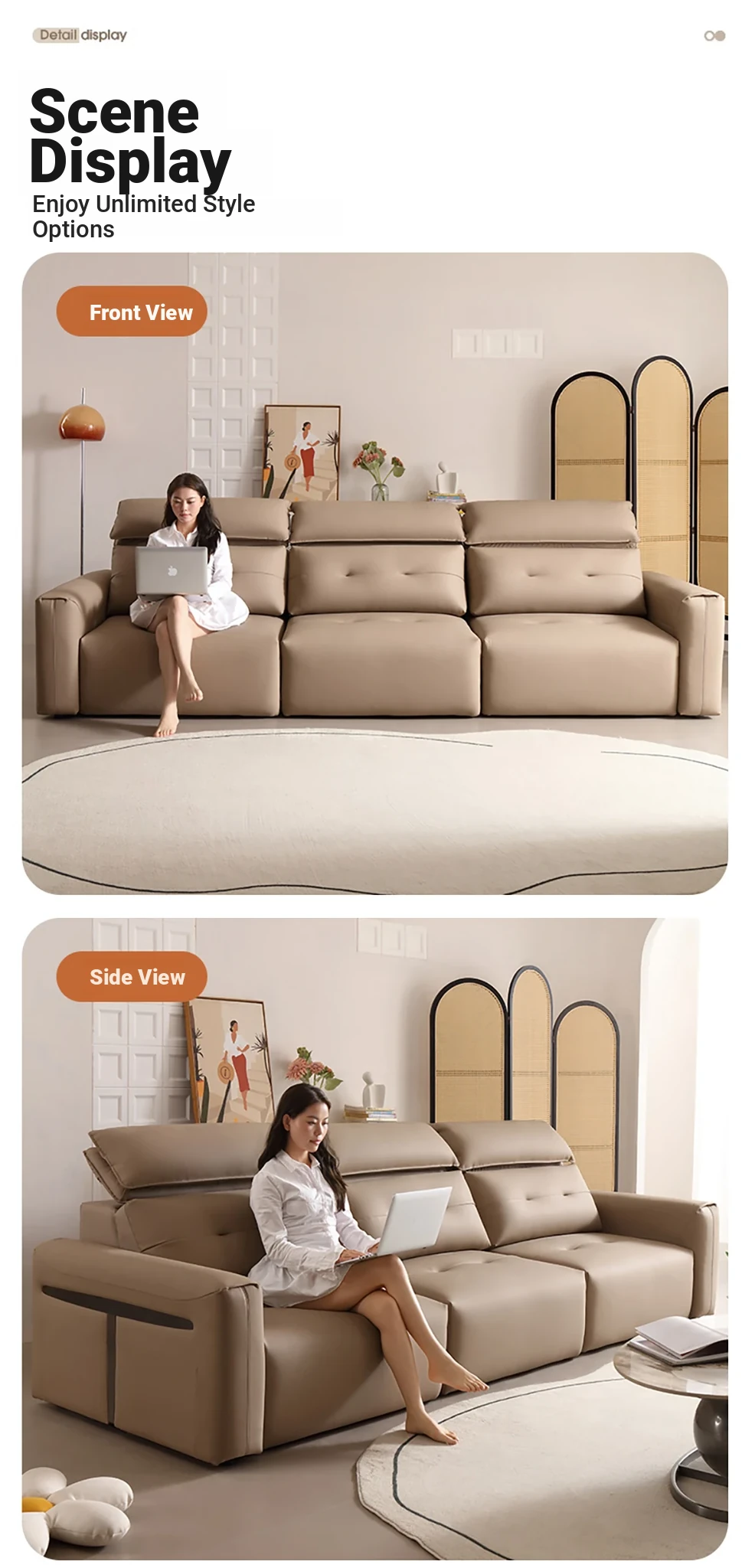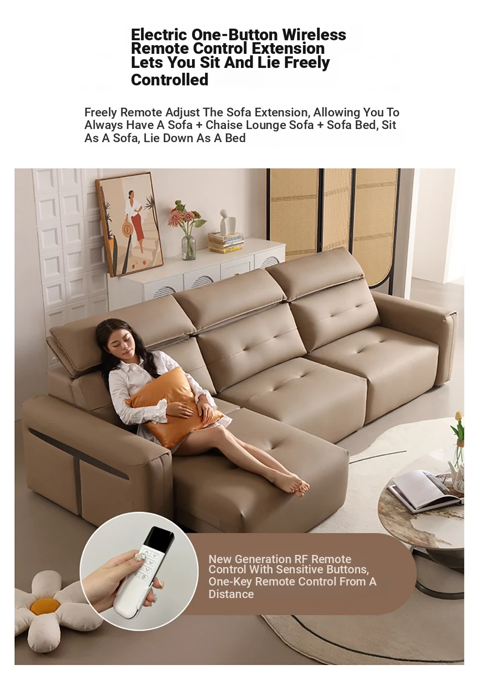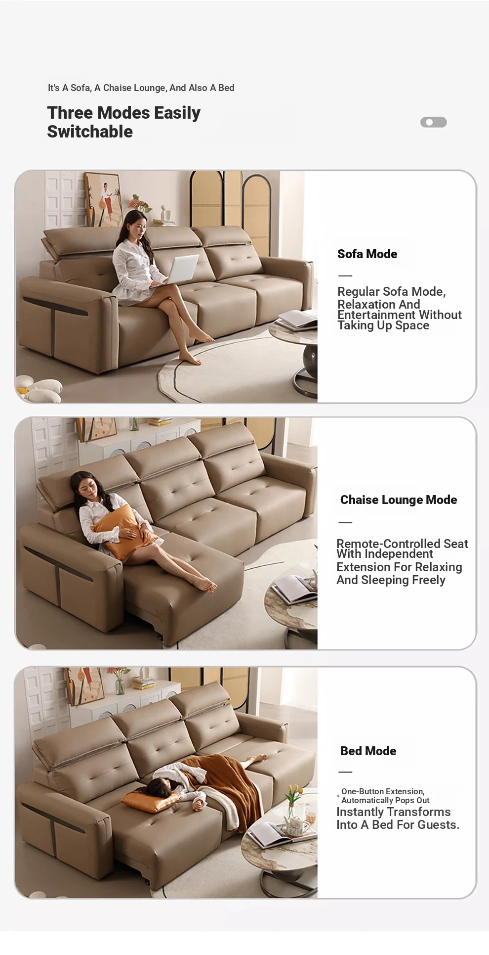 Nordic Palace Multifunctional Genuine Leather Sofa - Italian Minimalist Style, Adjustable Backrest, Perfect for Living Room and Home Use, Wall-Mountable, Sleeper Sofa for Ultimate Comfort and Style.