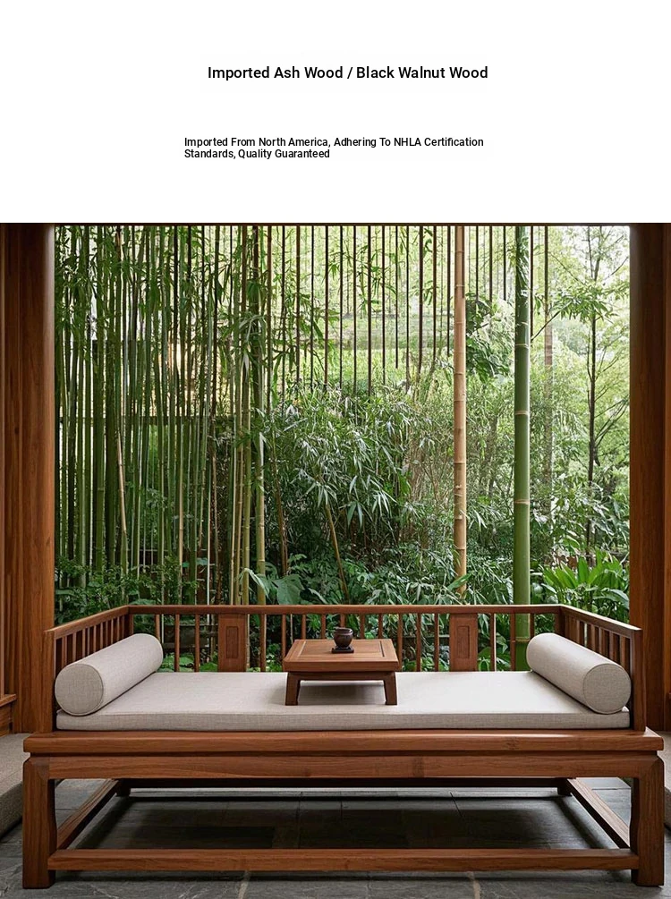 North American Black Walnut Futon Sofa Bed - Minimalist Solid Wood Chaise Lounge with Ash Wood for Living Room Tea Area
