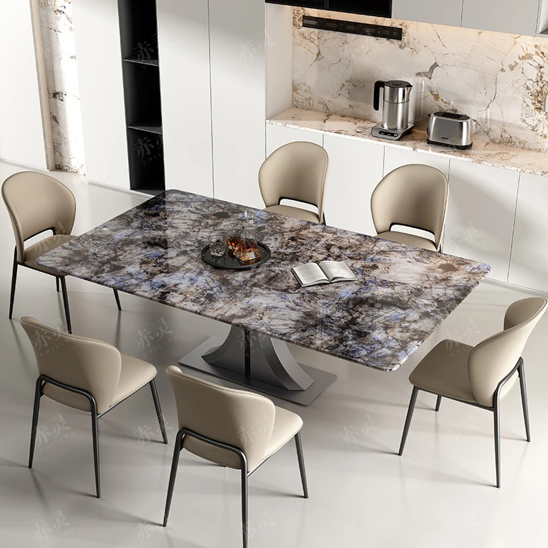 Dark Blue(Super crystal stone dining table +6 NH010# Tange chairs)