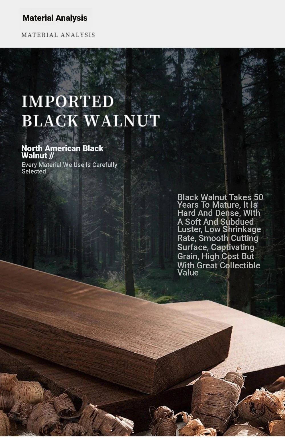 North American black walnut + genuine leather (black)