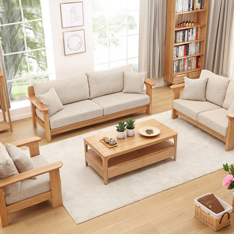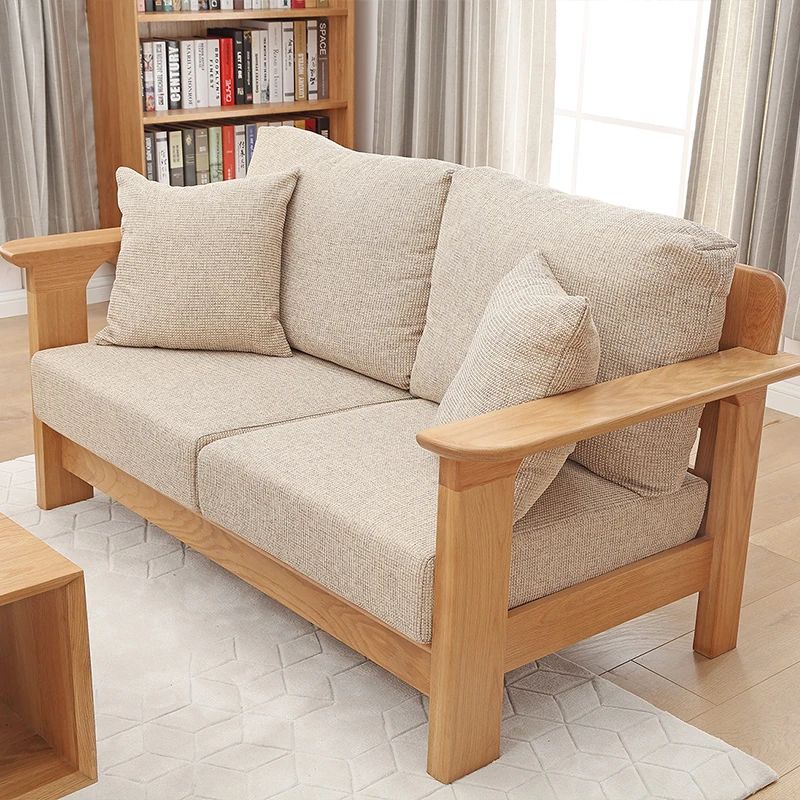 Solid Wood Sofa - White Oak Japanese Style Fabric Sofa for One to Three People, Modern Minimalist American Living Room Furniture