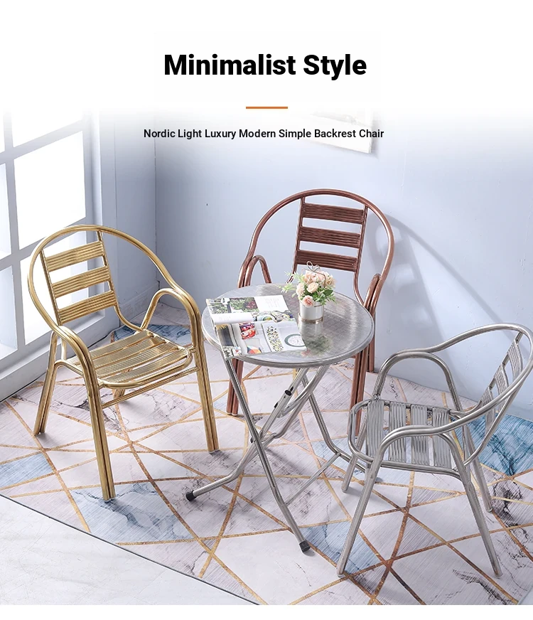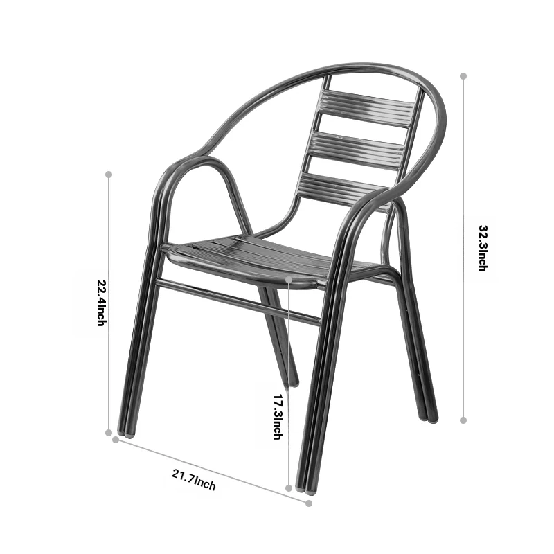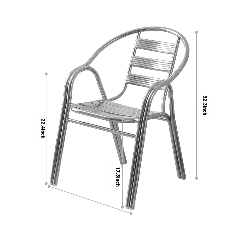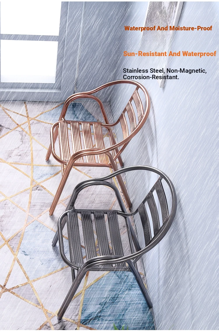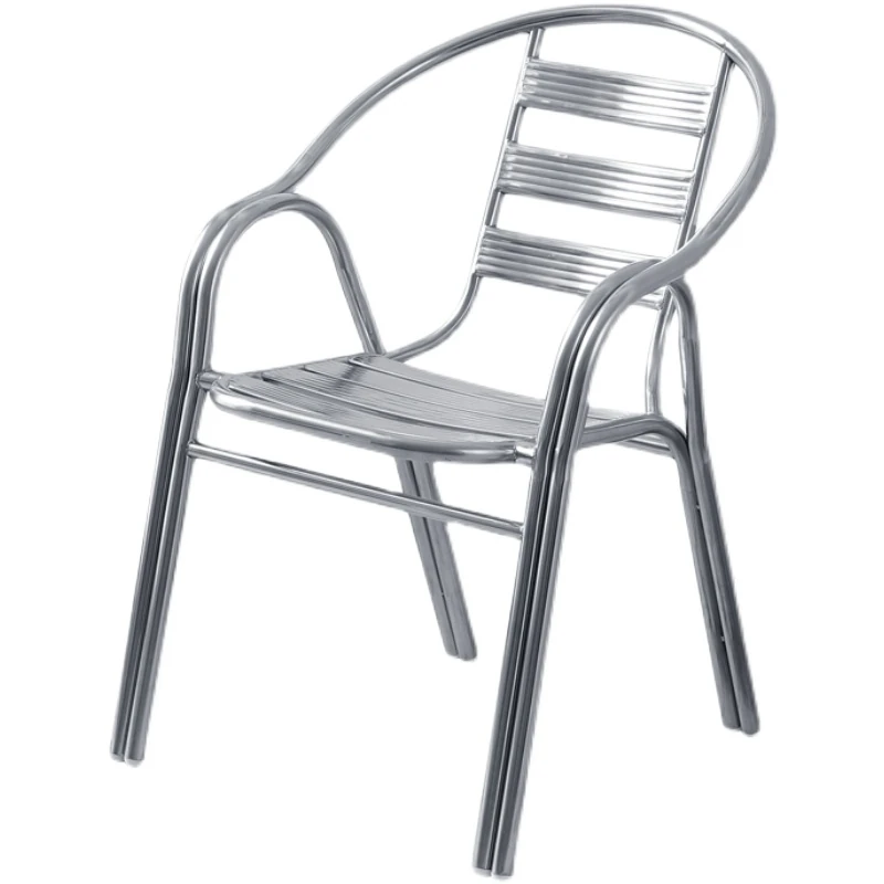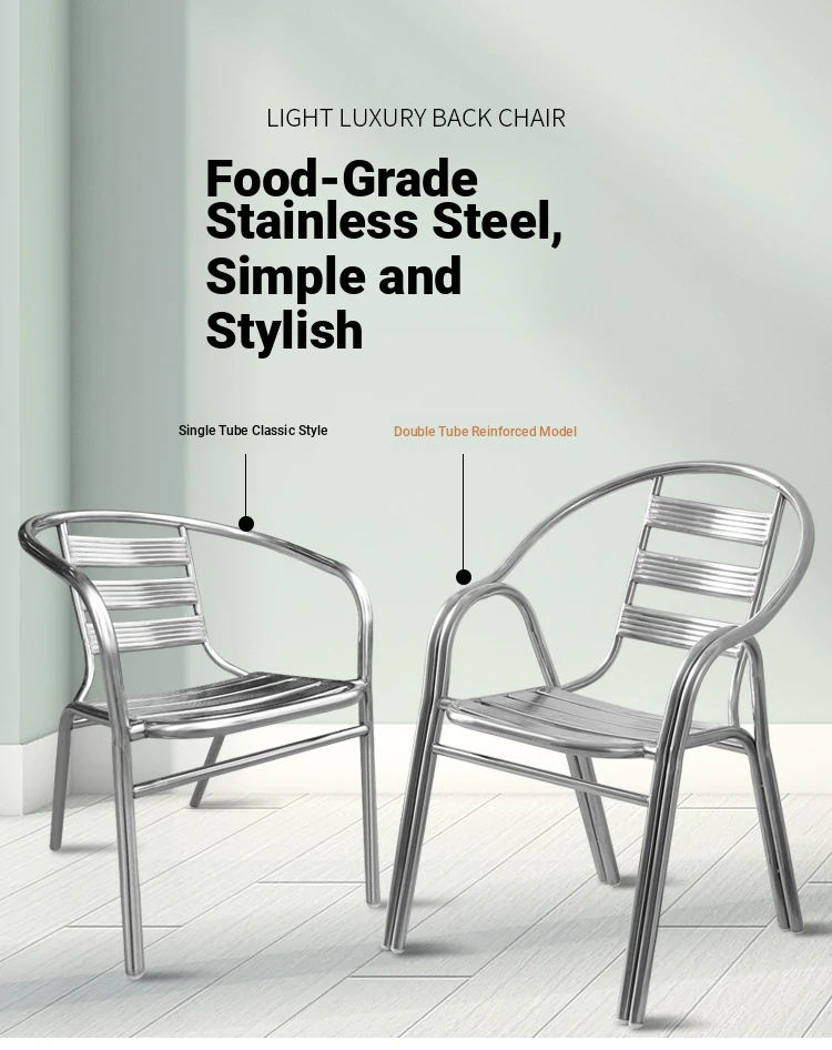 Stainless Steel Dining Chair with Armrests and Backrest - Outdoor Metal Balcony Chair for Home Use, Fully Assembled Single Seat Relaxation Furniture