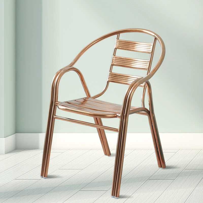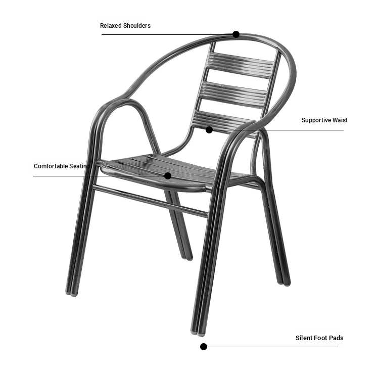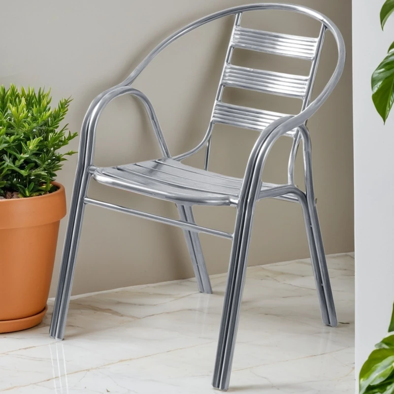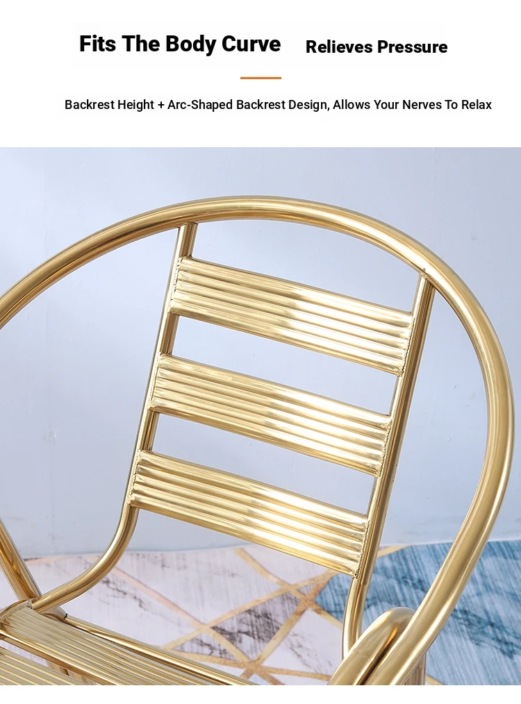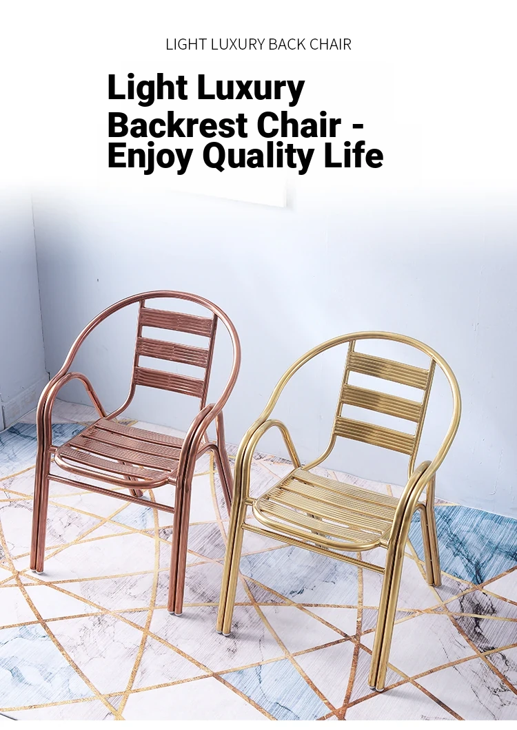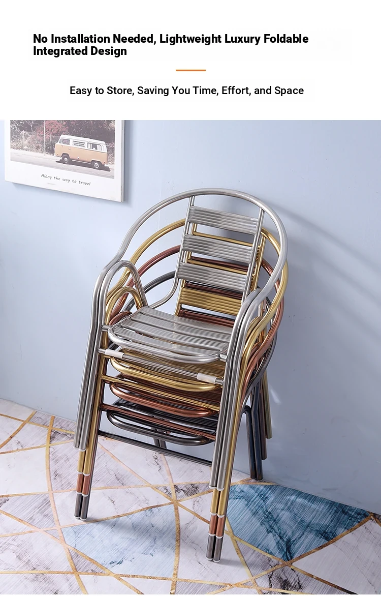 Stainless Steel Dining Chair with Armrests and Backrest - Outdoor Metal Balcony Chair for Home Use, Fully Assembled Single Seat Relaxation Furniture