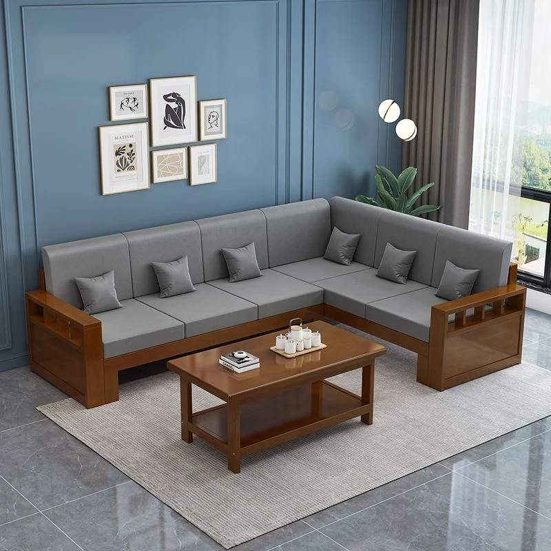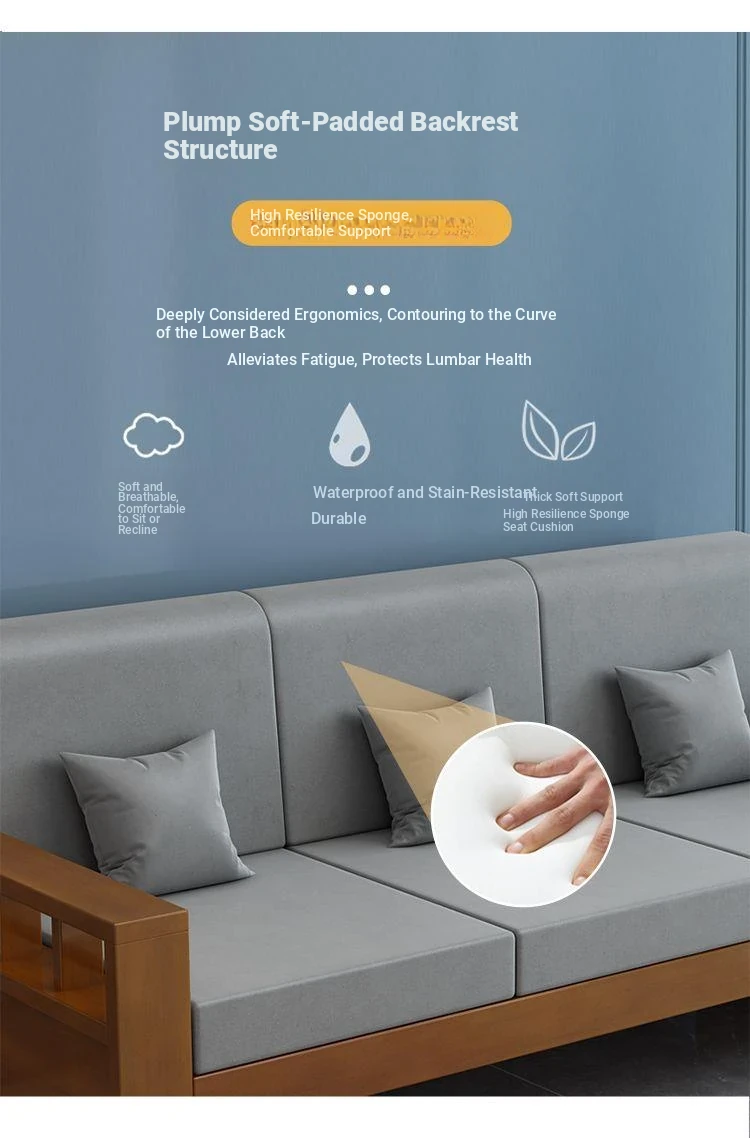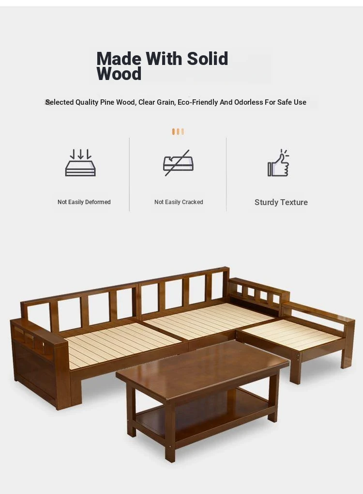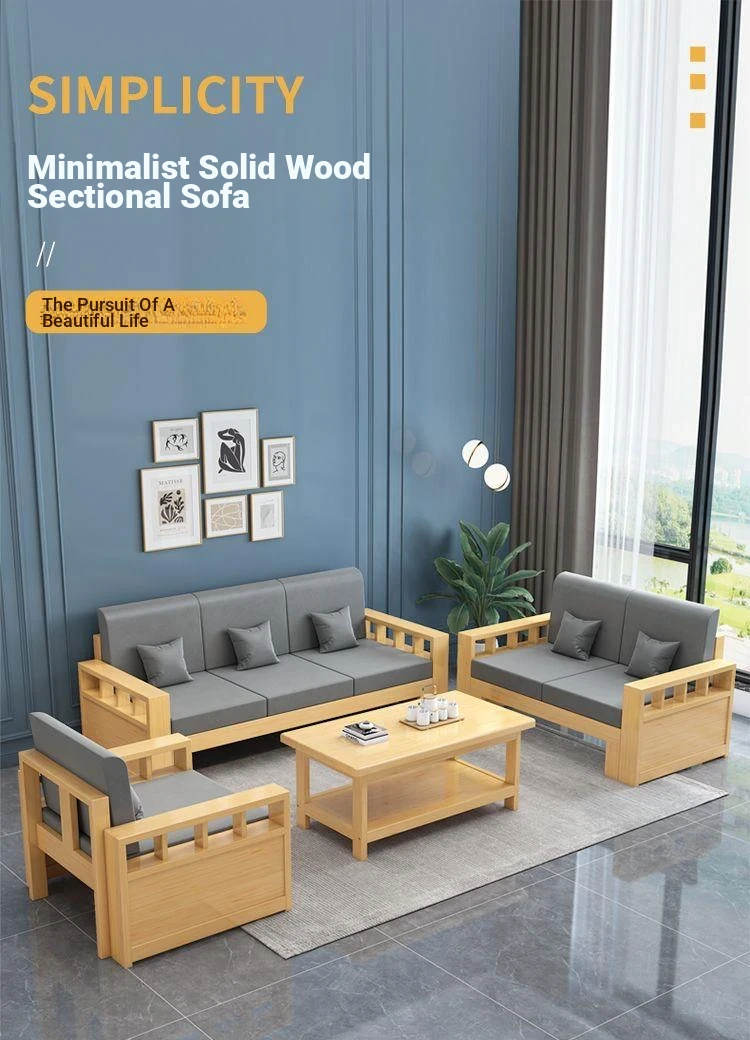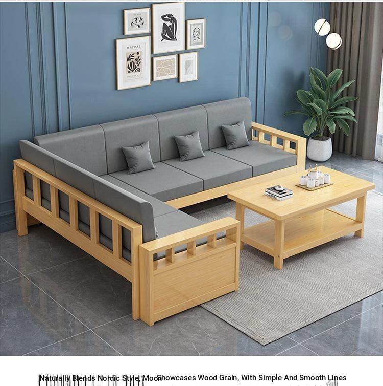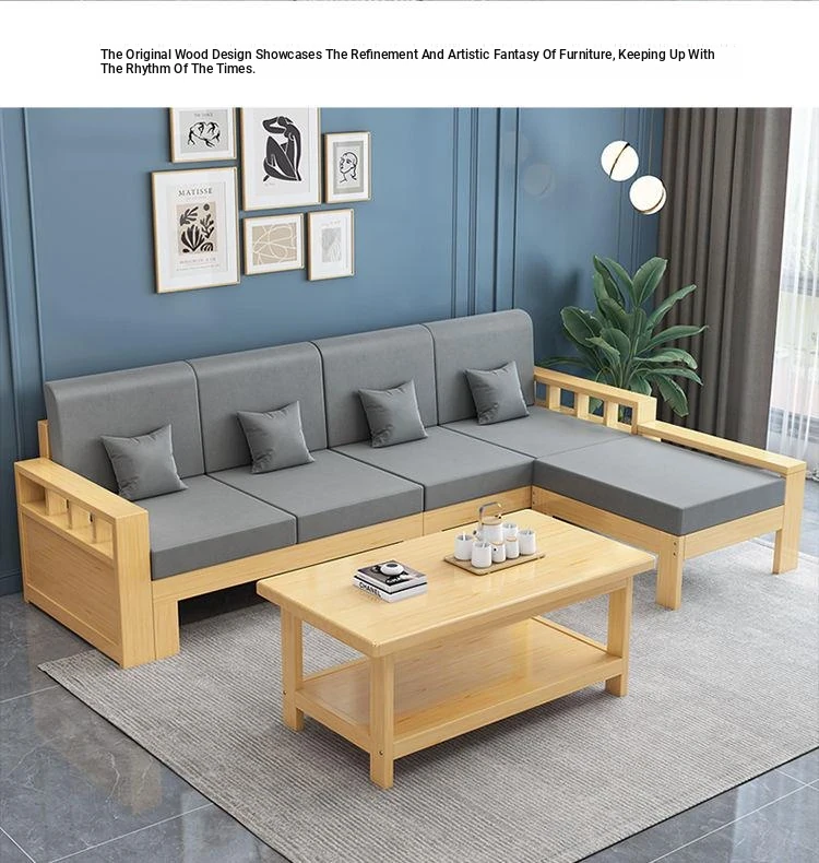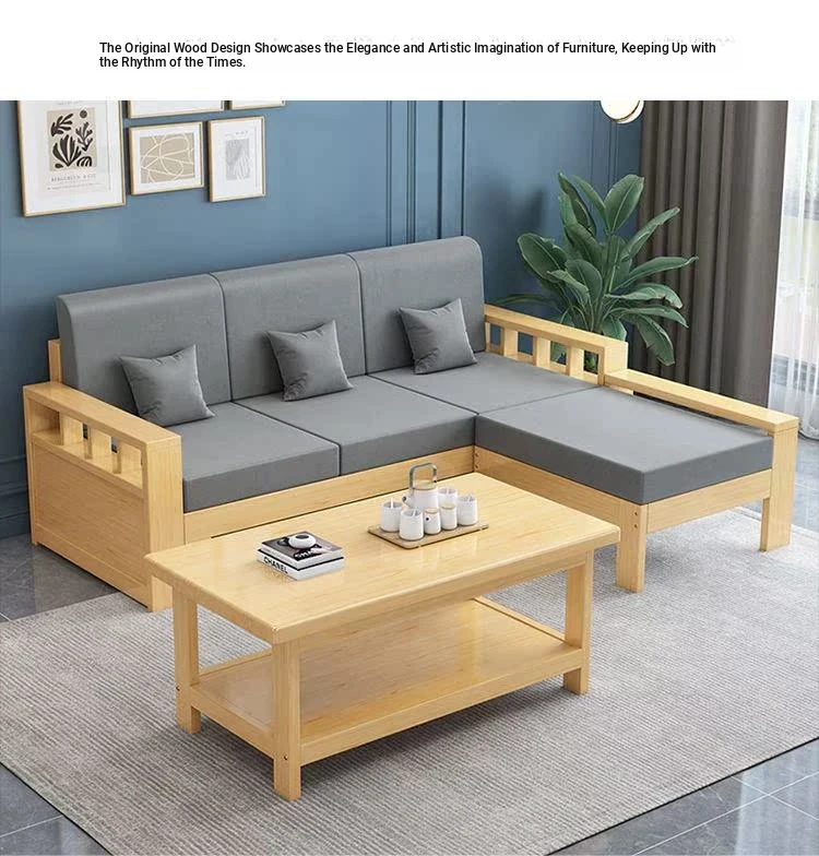 Stylish Modern Solid Wood Sofa Set for Small Living Rooms - Corner Design for Ultimate Comfort and Elegance