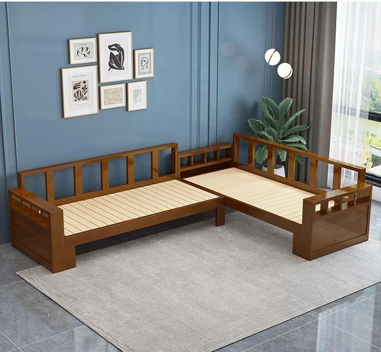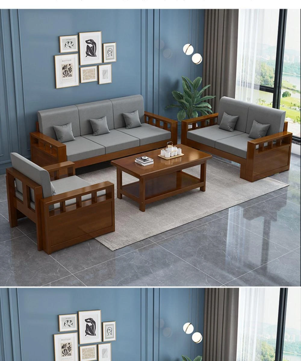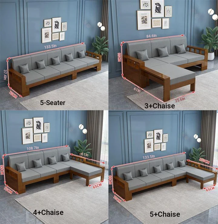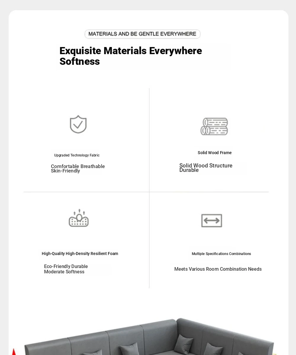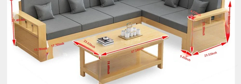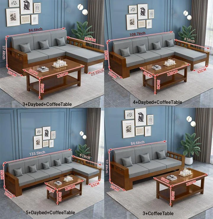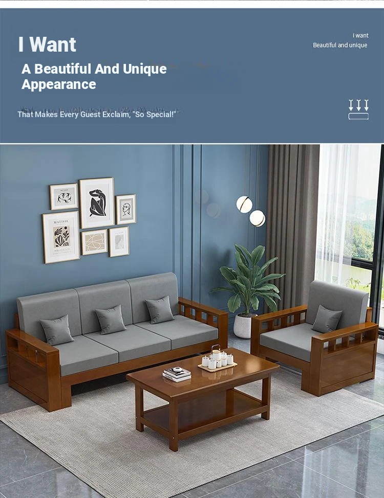 Stylish Modern Solid Wood Sofa Set for Small Living Rooms - Corner Design for Ultimate Comfort and Elegance