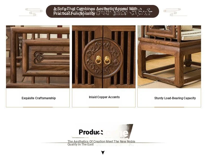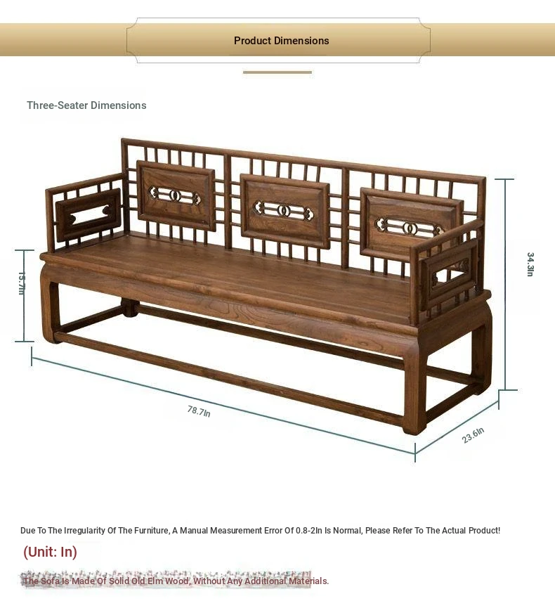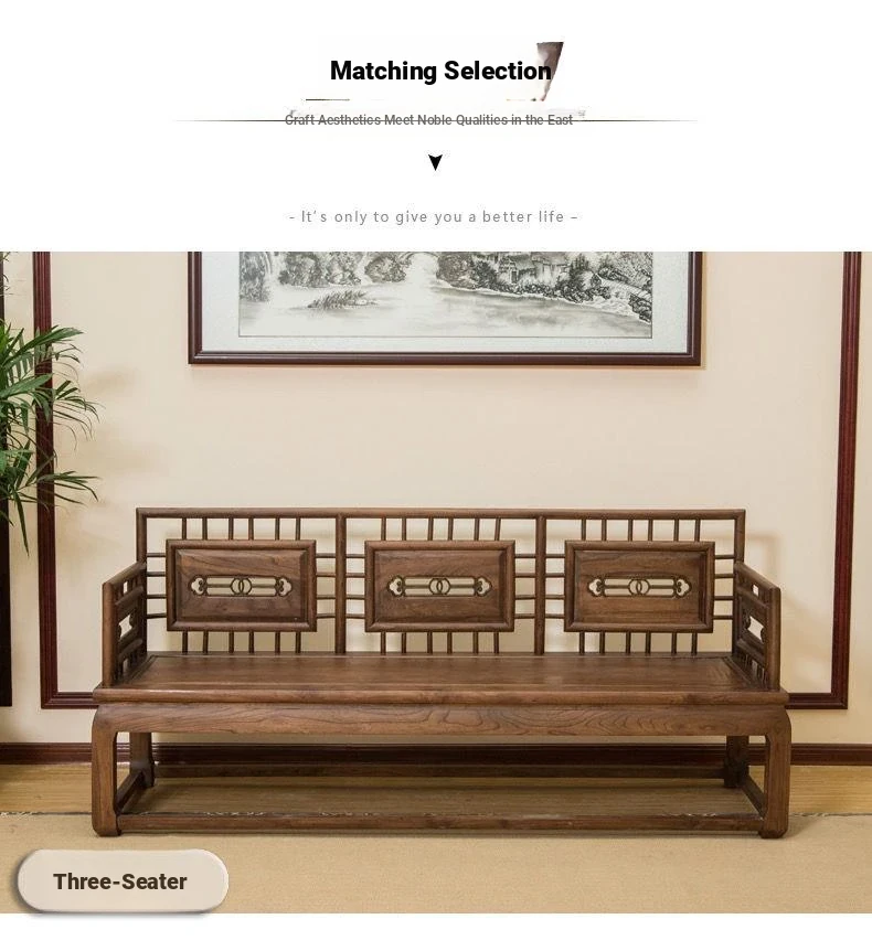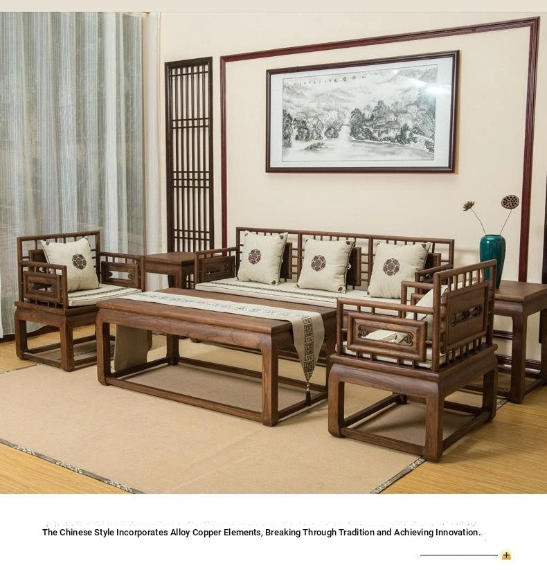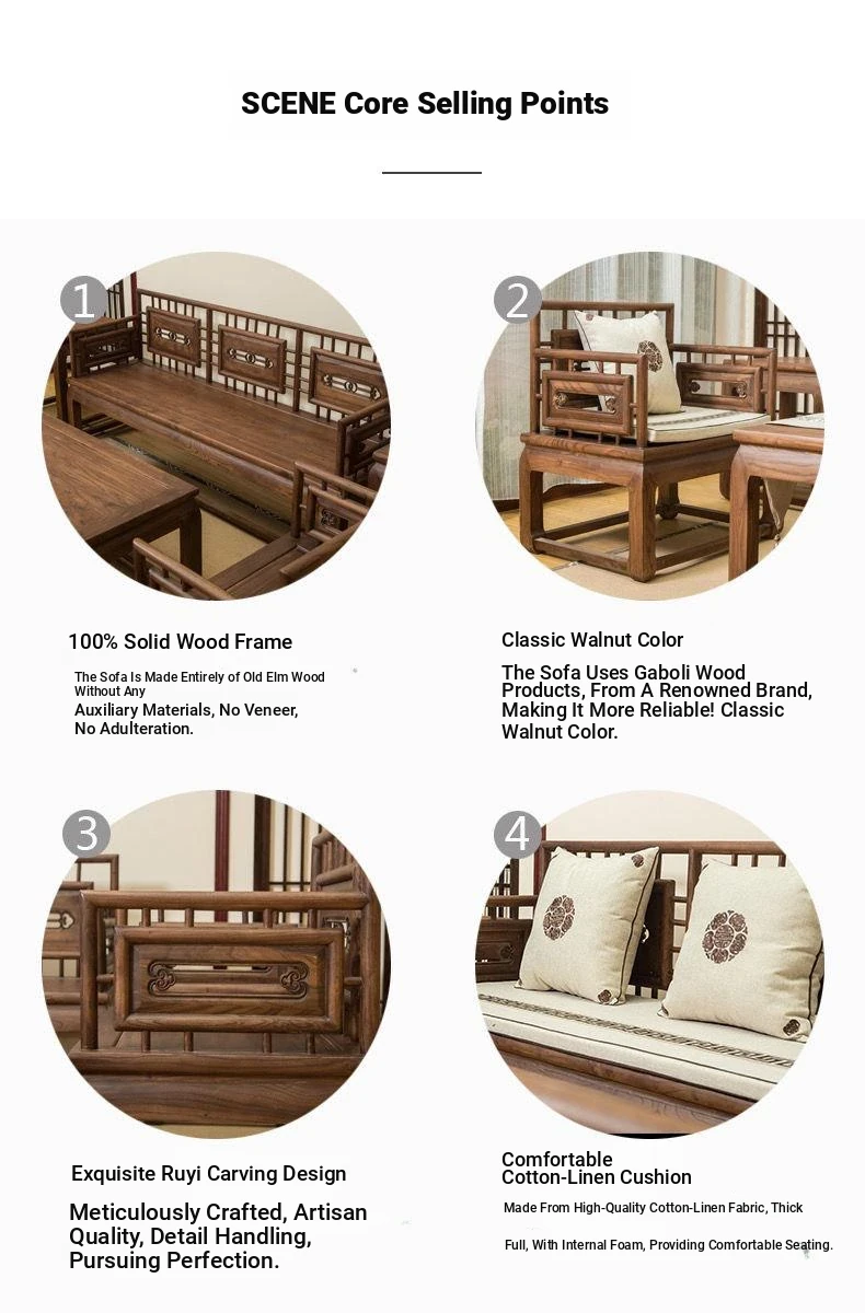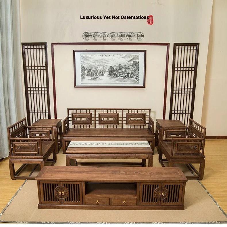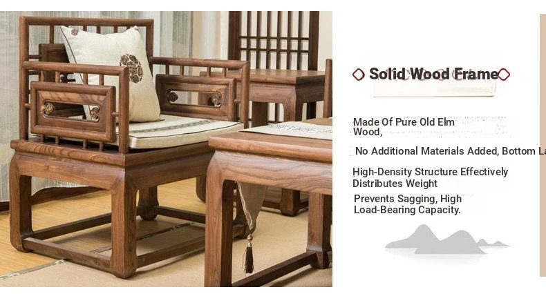 Stylish New Chinese-Style Solid Wood Sofa Set - Premium Old Elm Living Room Furniture for a Cozy Home - Perfect for Your Living Room Décor