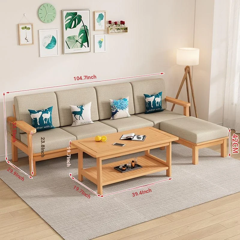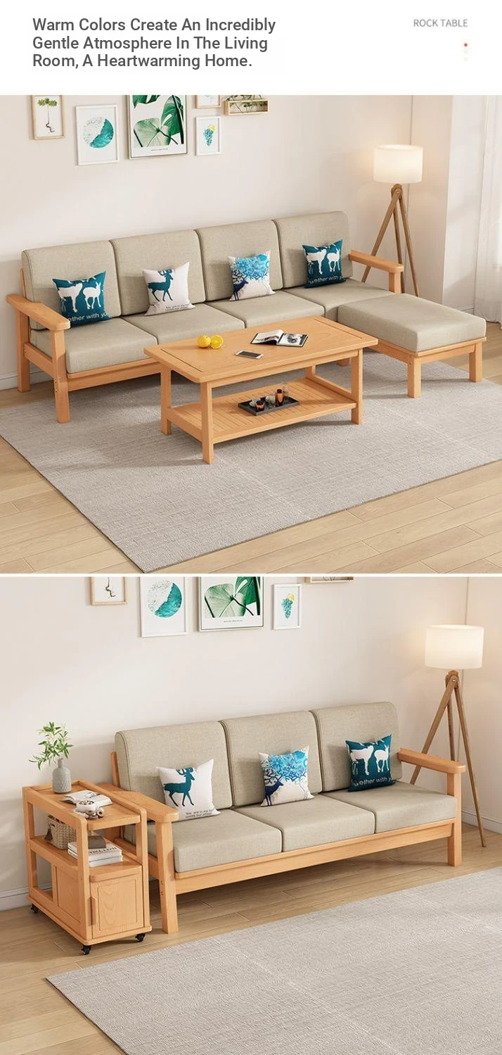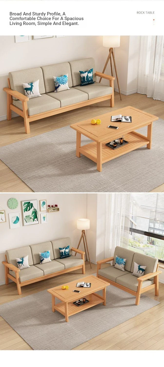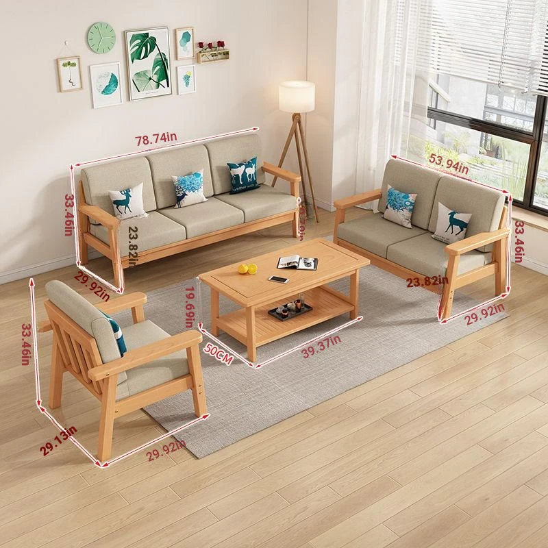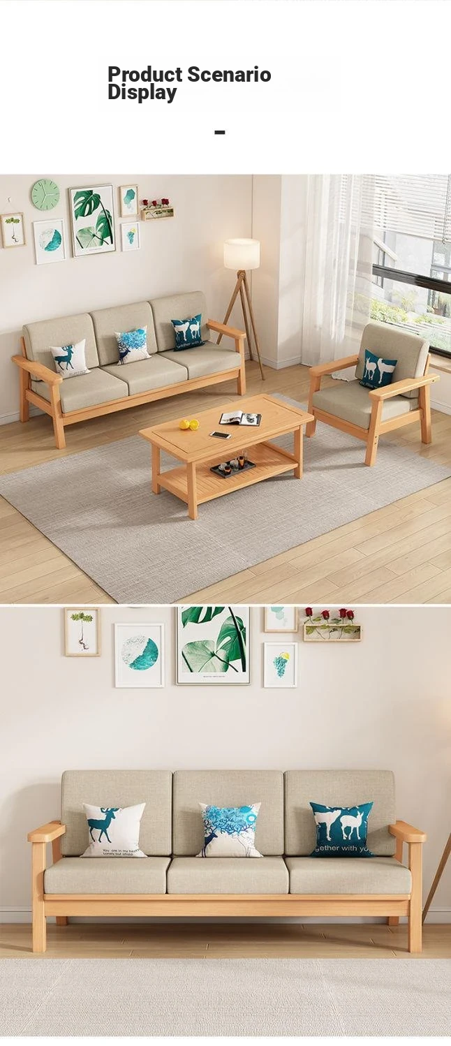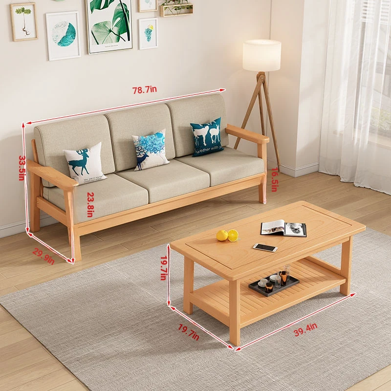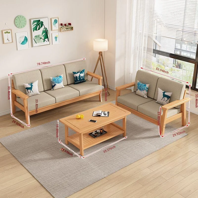 Stylish Nordic Solid Wood Sofa Set with Beech Wood, Modern Minimalist Design for Small Spaces - Includes Sofa and Coffee Table, Easy to Disassemble and Clean, Perfect for Contemporary Living Rooms!