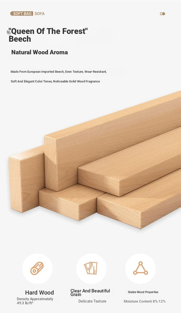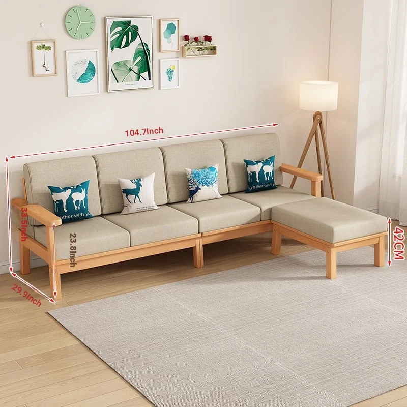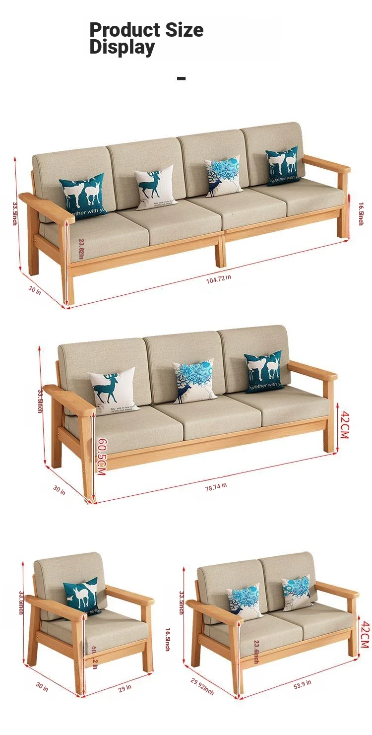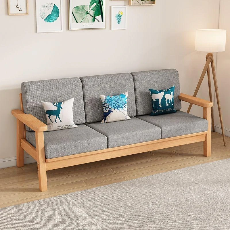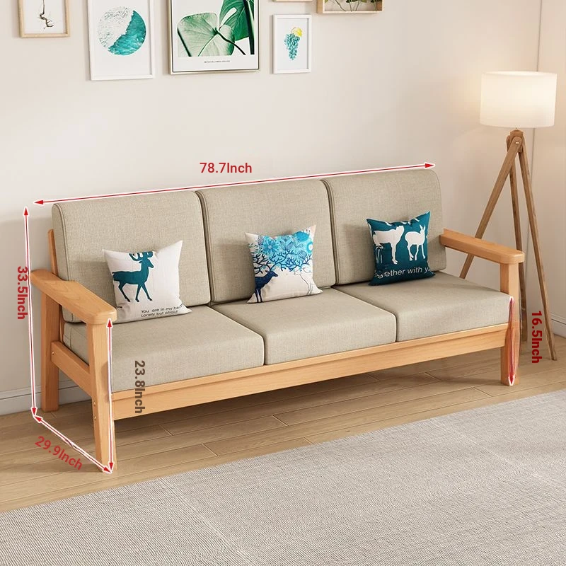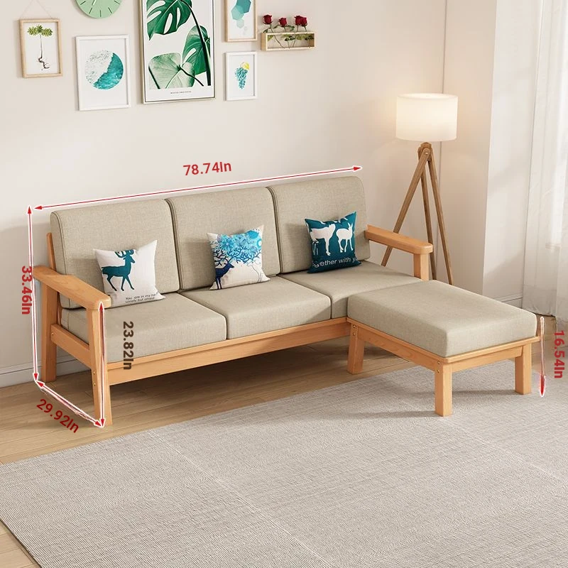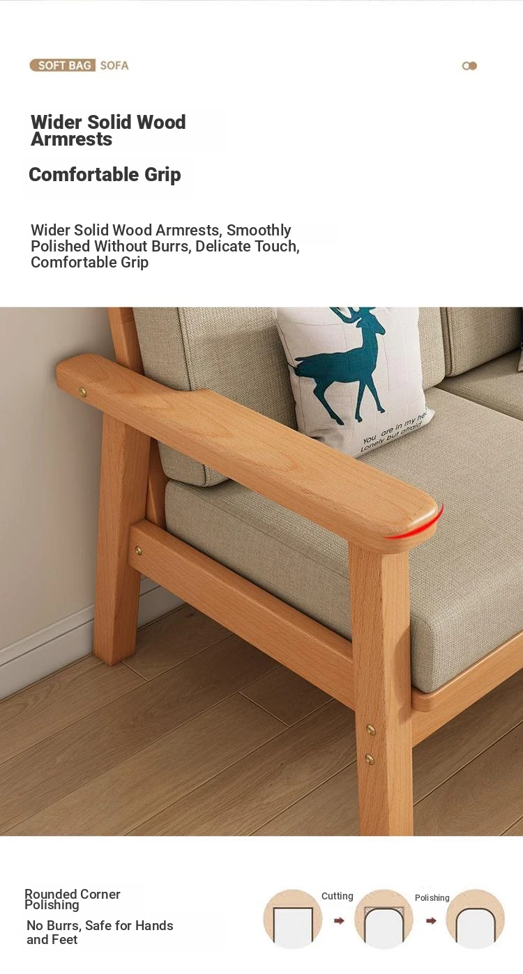 Stylish Nordic Solid Wood Sofa Set with Beech Wood, Modern Minimalist Design for Small Spaces - Includes Sofa and Coffee Table, Easy to Disassemble and Clean, Perfect for Contemporary Living Rooms!