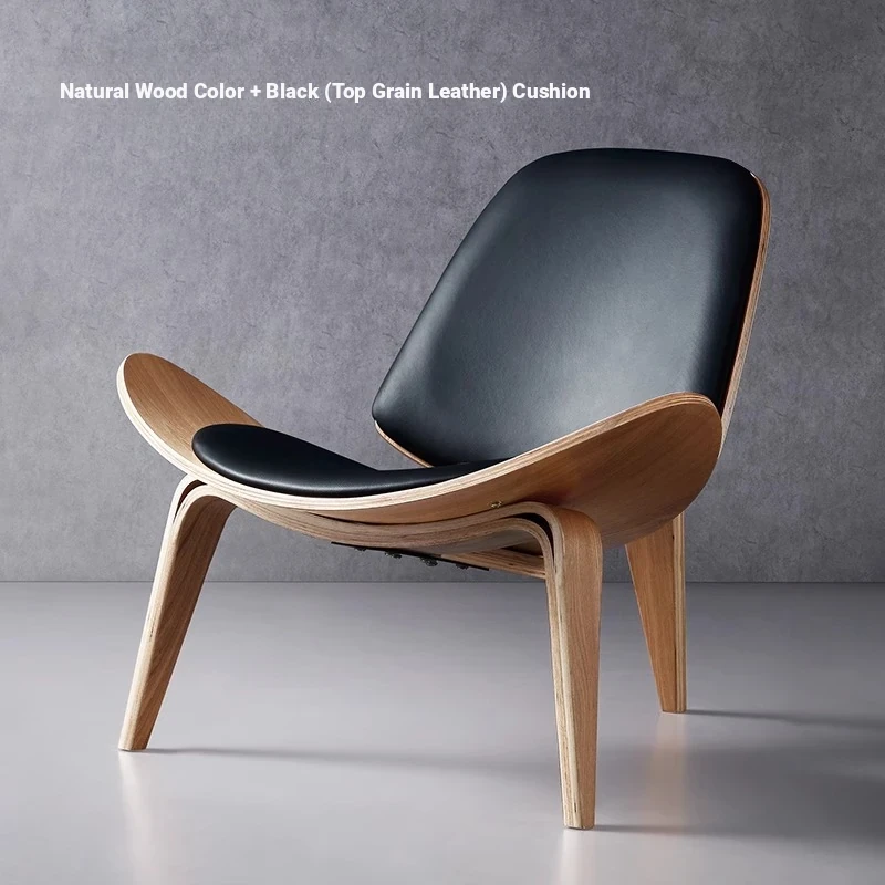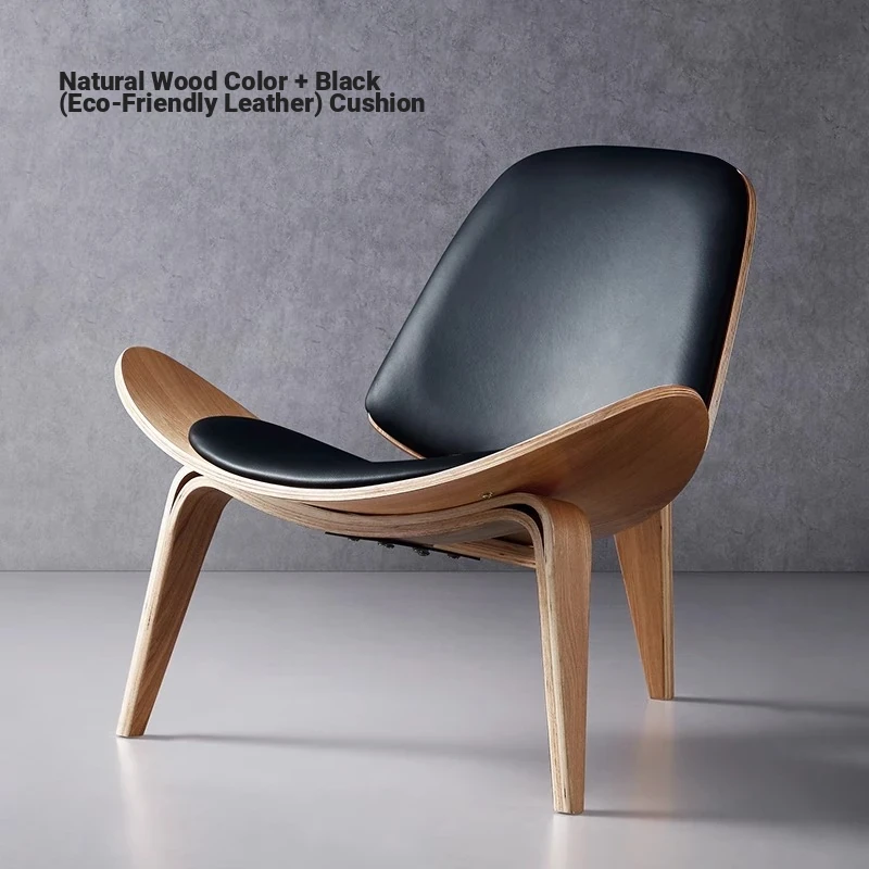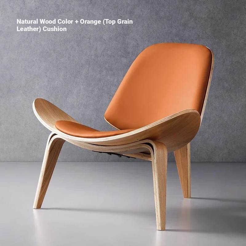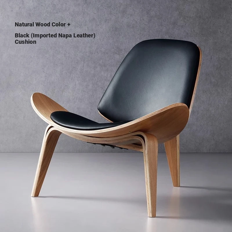 Sunshine Art Solid Wood Leisure Sofa Chair - Minimalist Designer Single Seat with Genuine Leather, Perfect for Balcony or Cozy Spaces, Trendy & Comfortable!