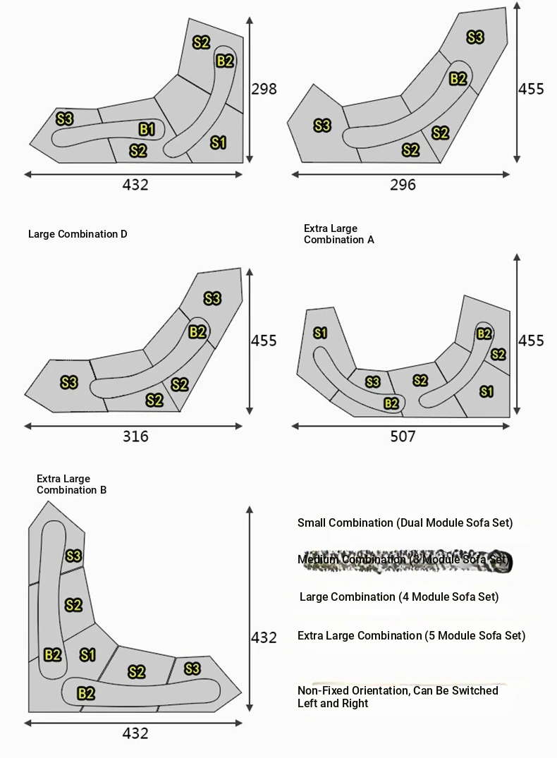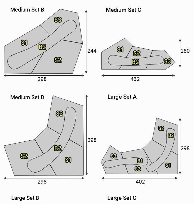 Chinese version combination D [s1 seat bag + s2 seat bag * 2 + b2 long worm] 117.32in*117.32in(Chinese version combination D [s1 seat bag + s2 seat bag * 2 + b2 long worm] 117.32in*117.32in)