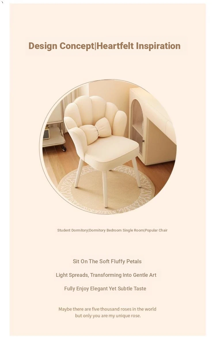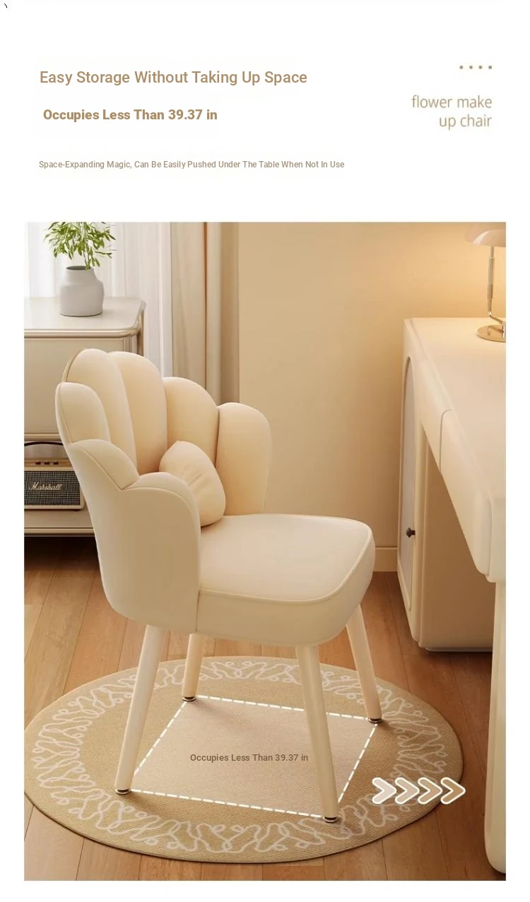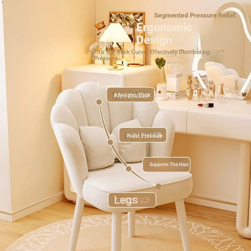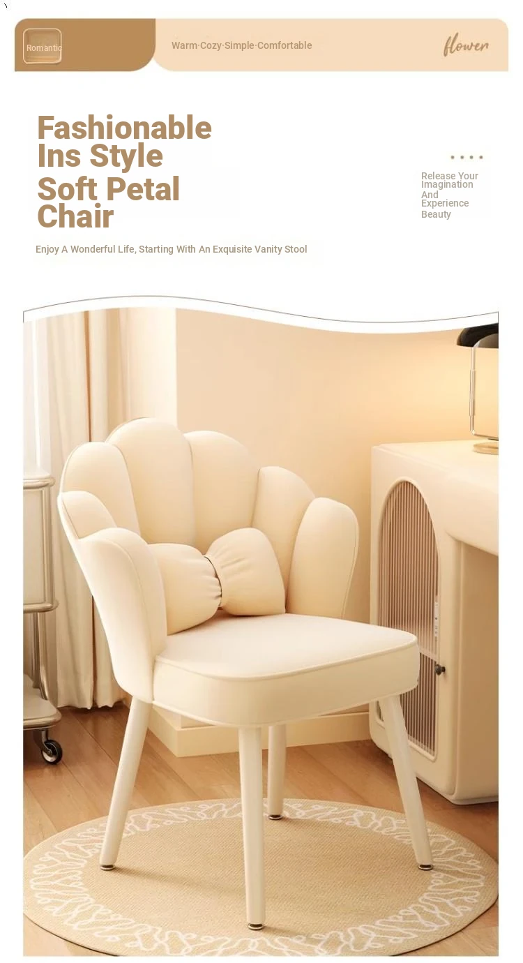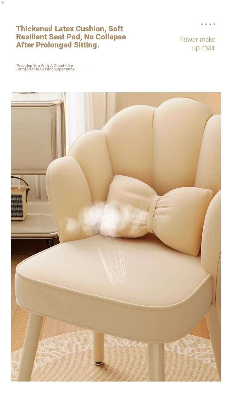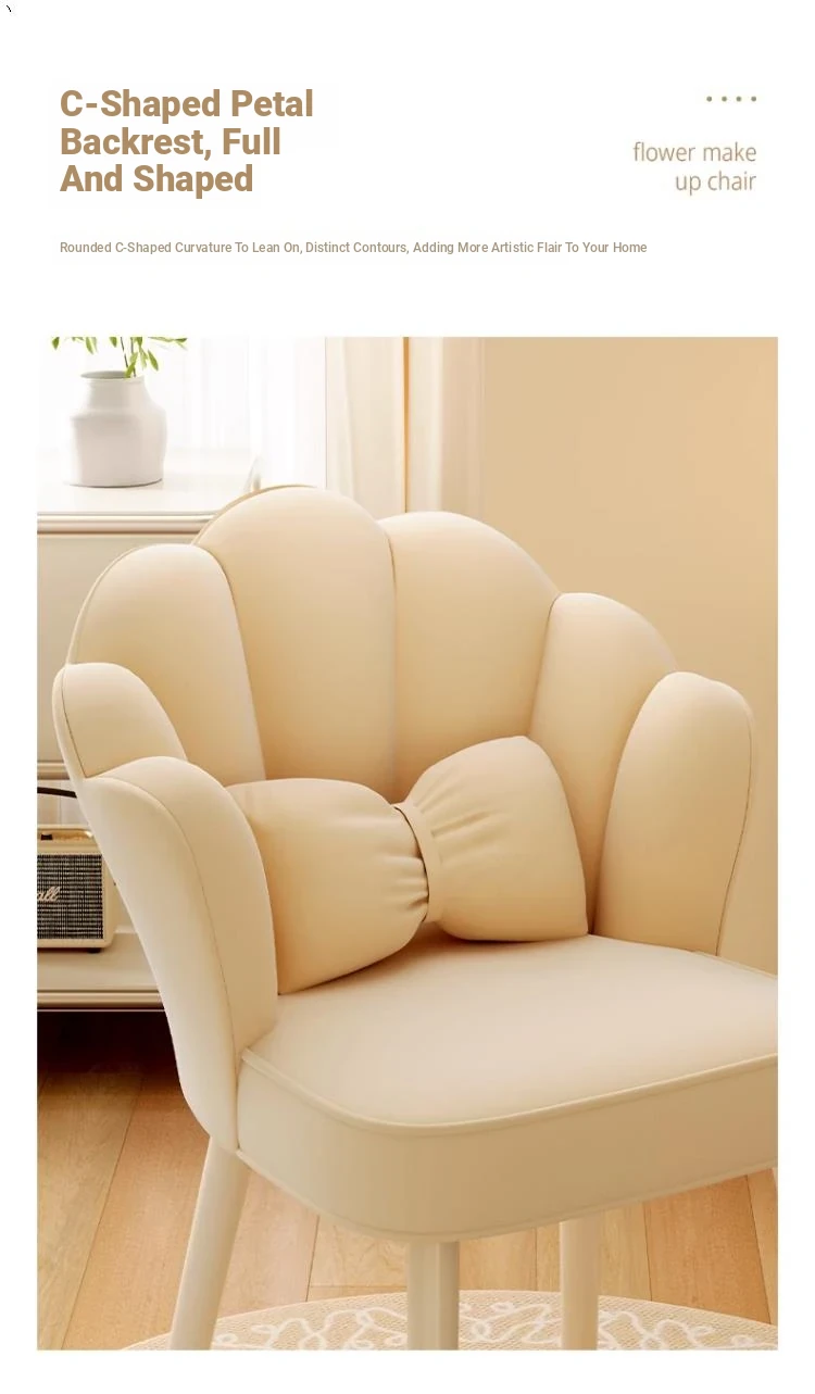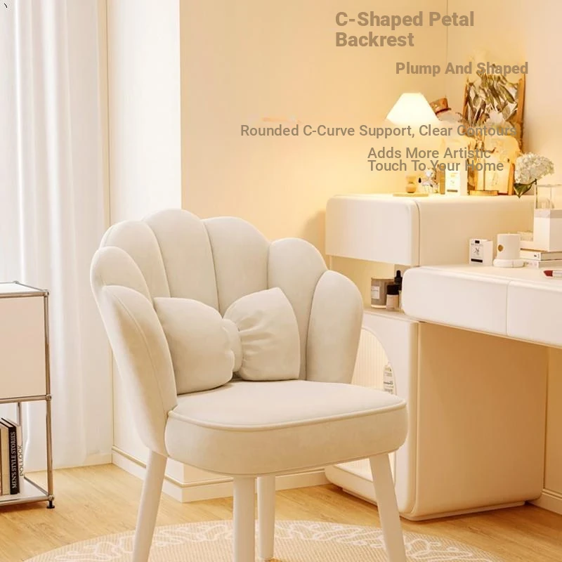 Trendy Petal Chair - Luxurious Makeup Stool for Bedroom, Ideal for Vanity Tables and Nail Art, Stylish Backrest for Women’s Master Bedroom