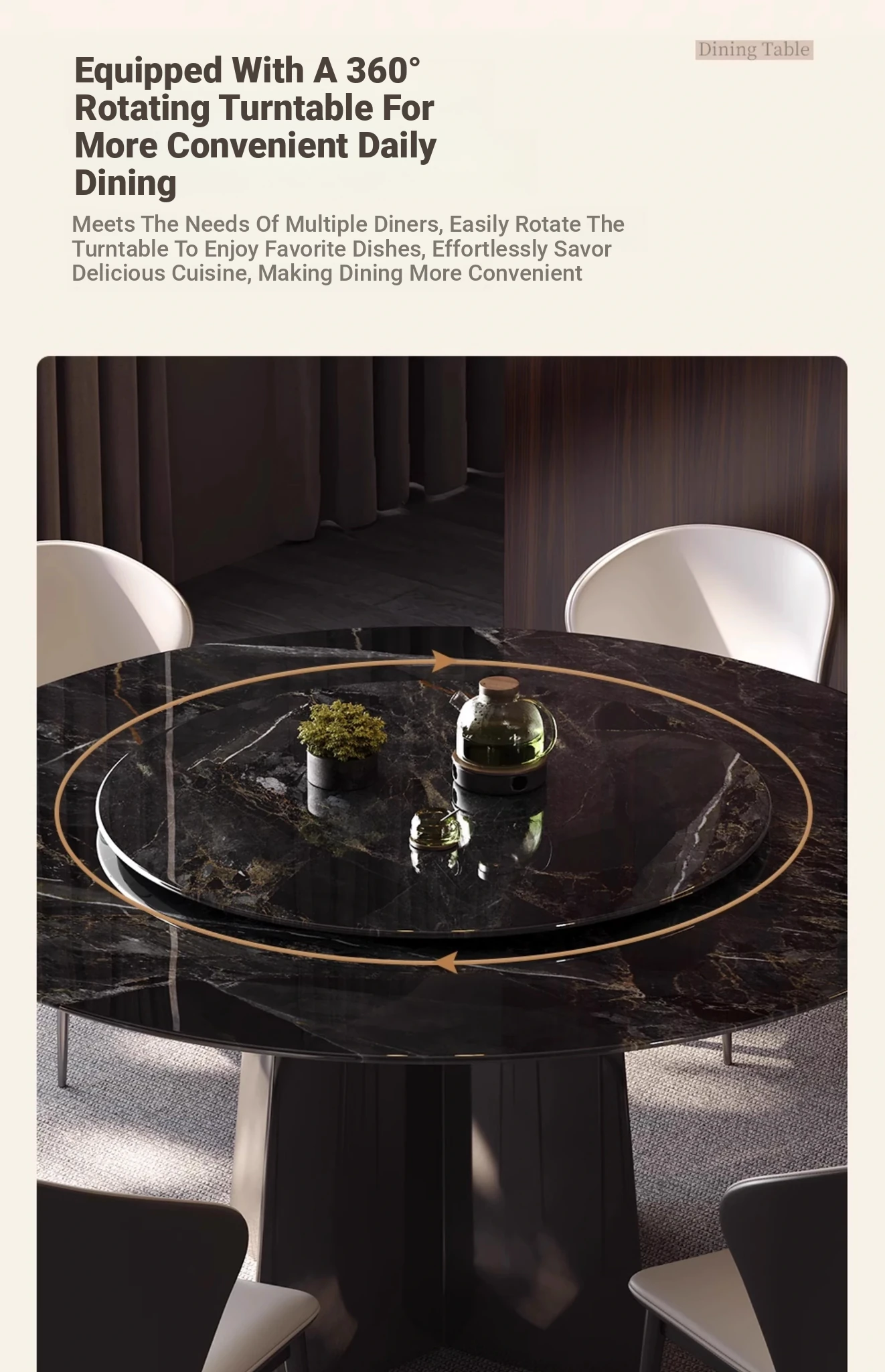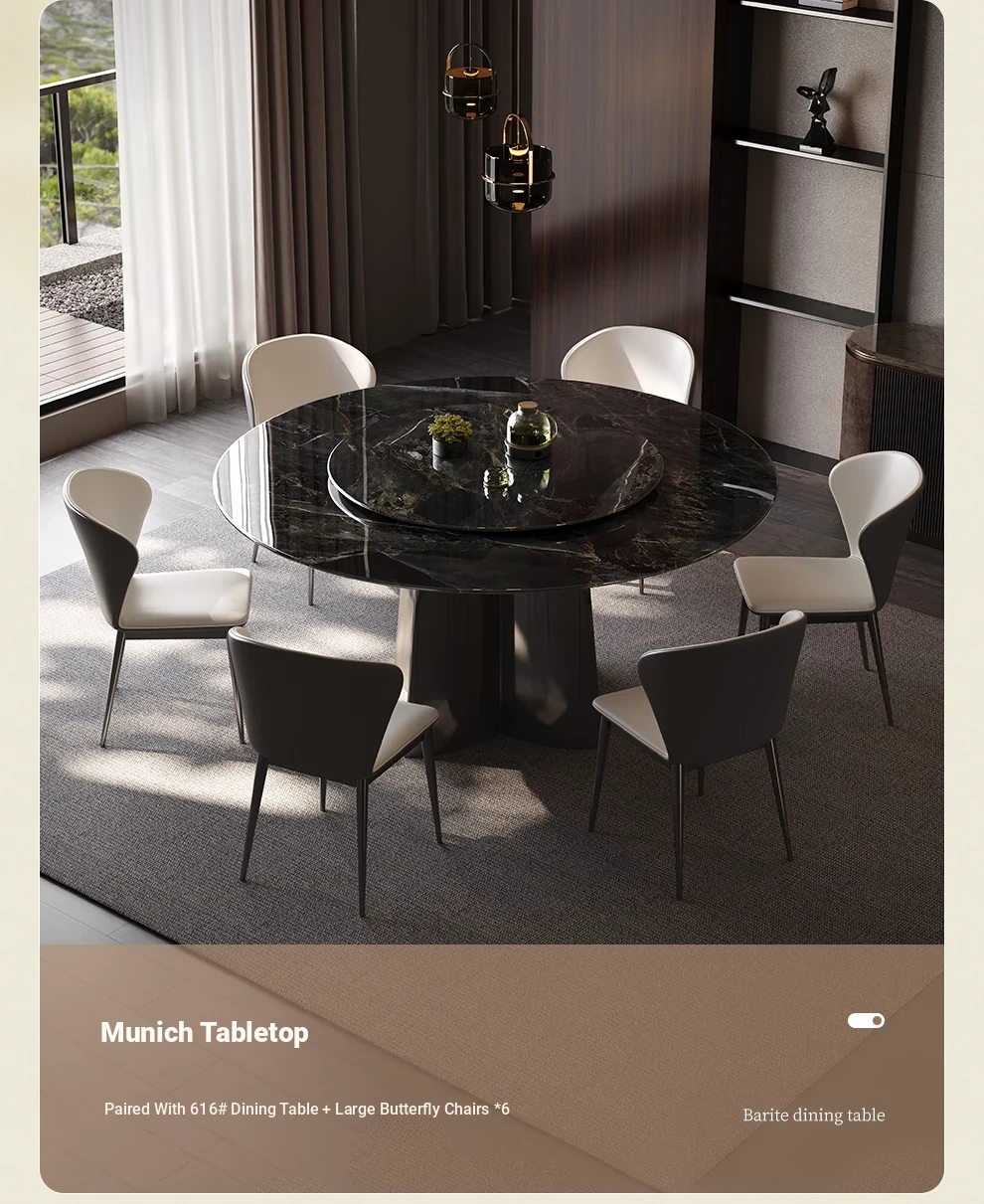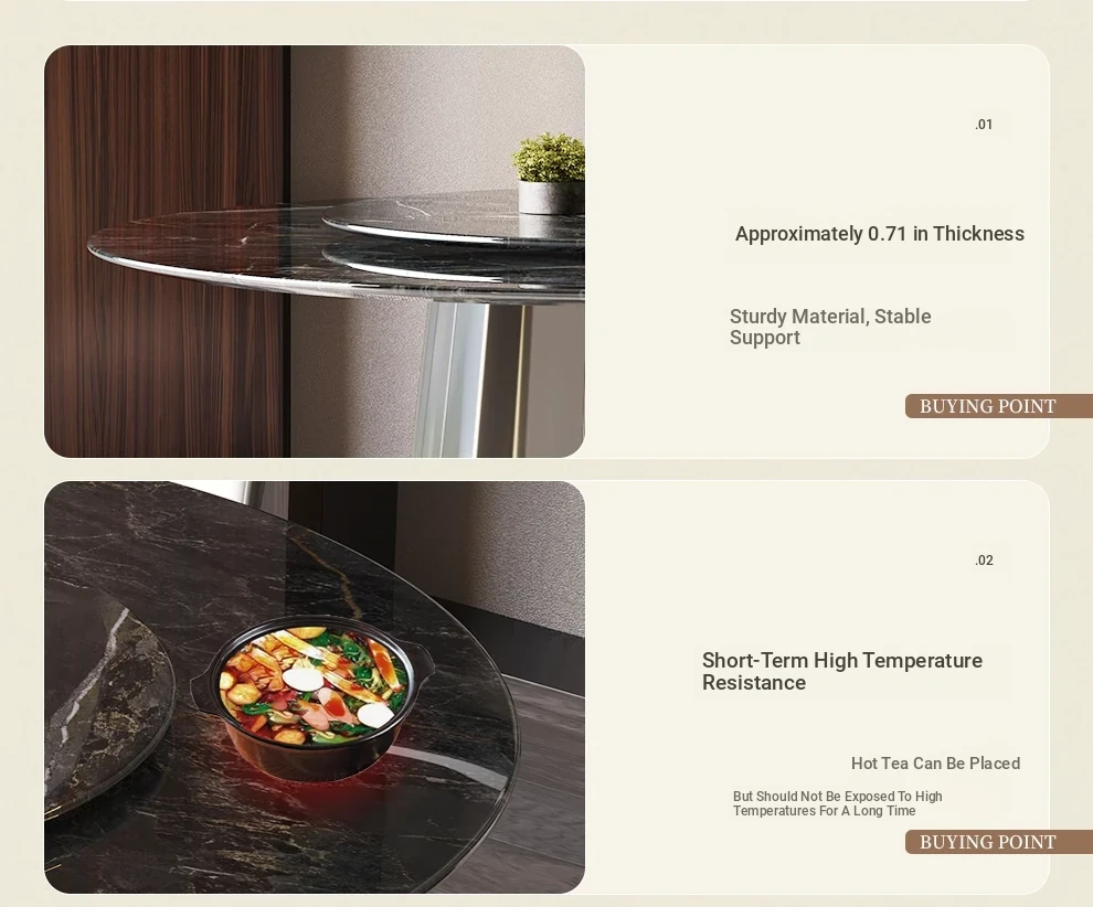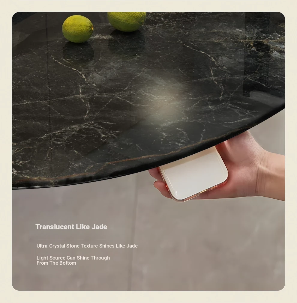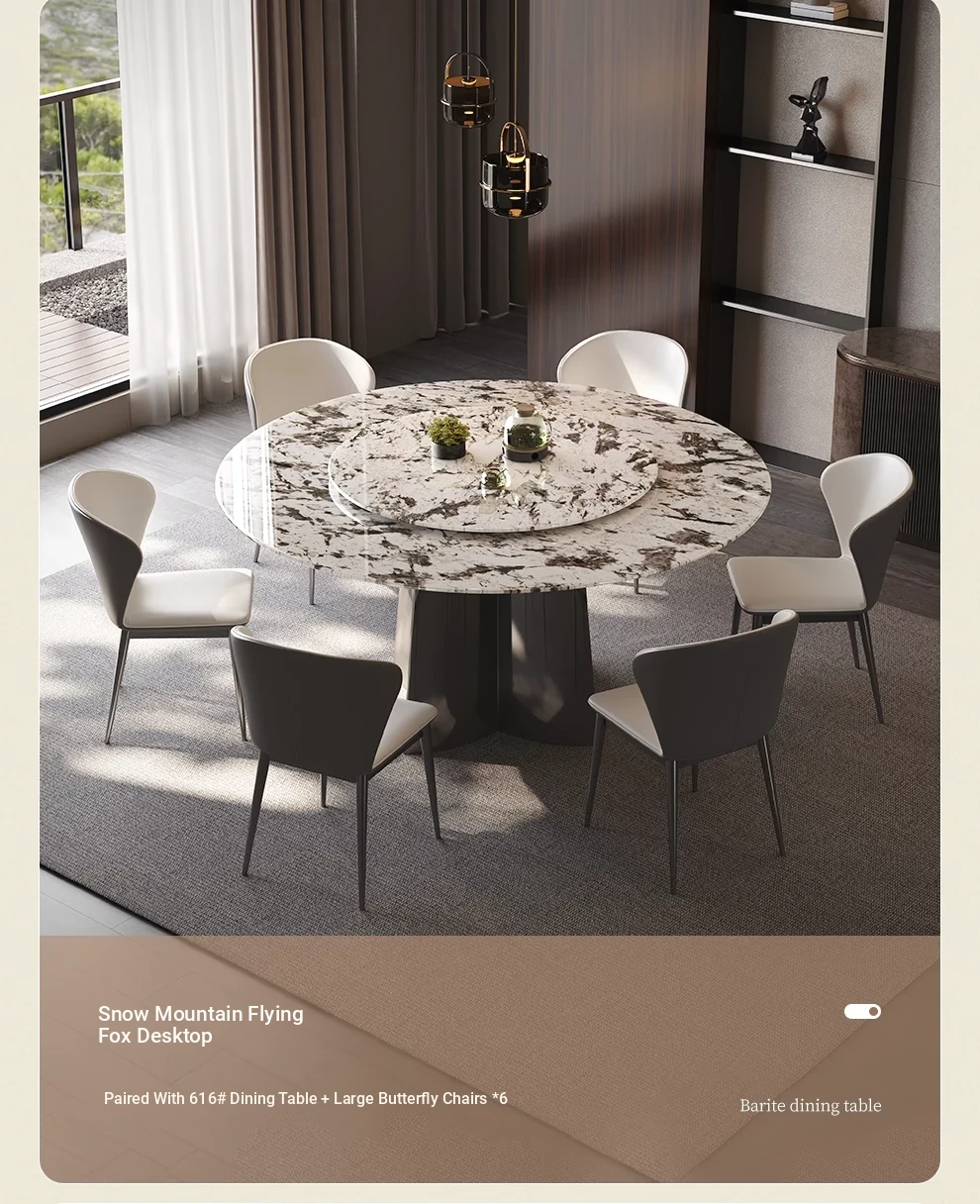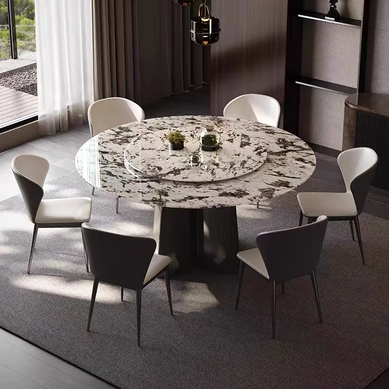 WenNuo Italian Luxury Ultra-Crystal Stone Dining Table - Elegant Round Marble Table with Rotating Tray for Home and Restaurant Use