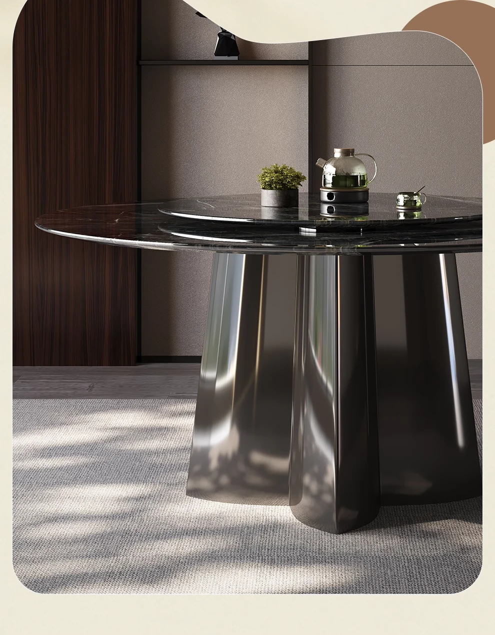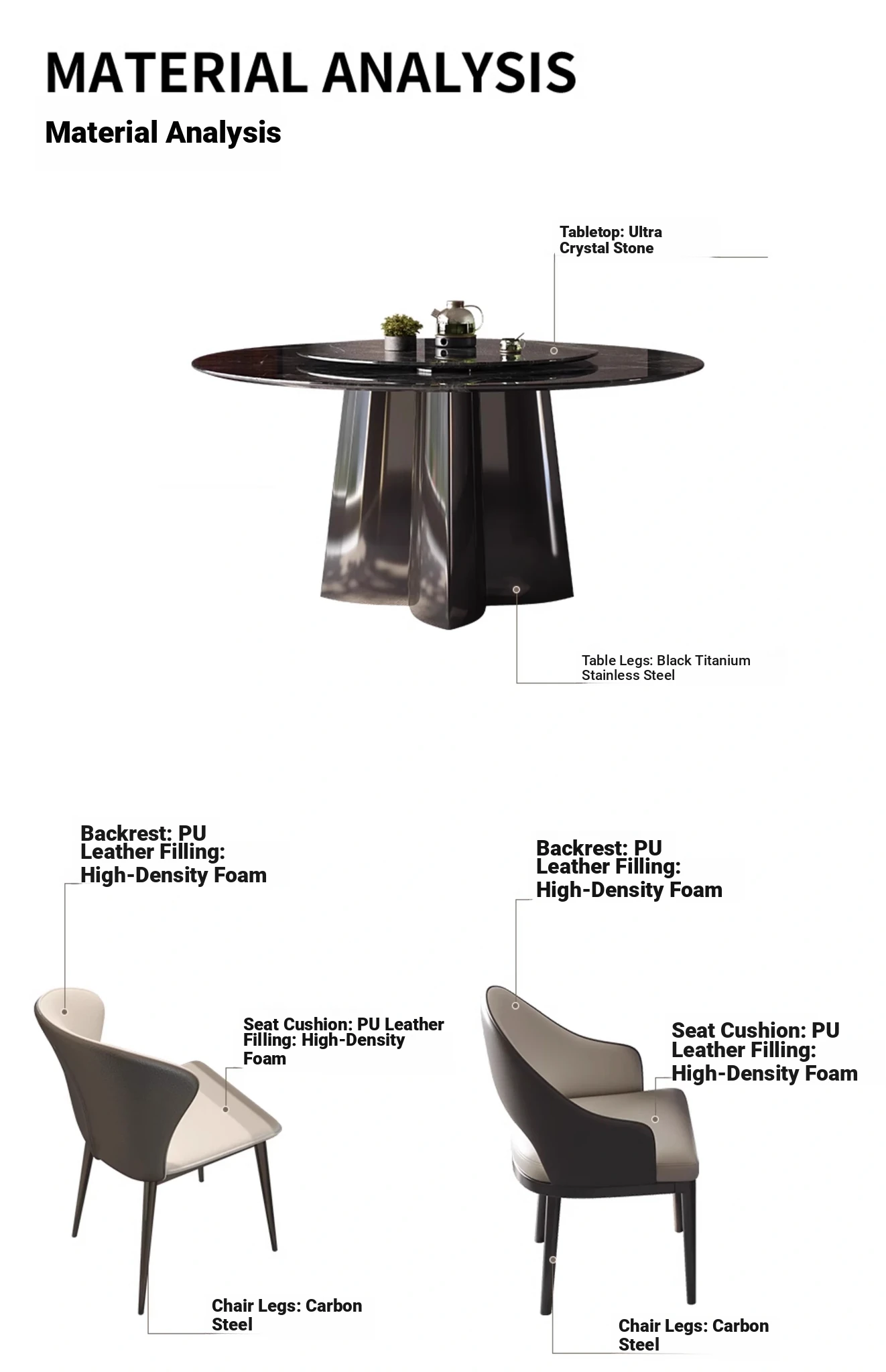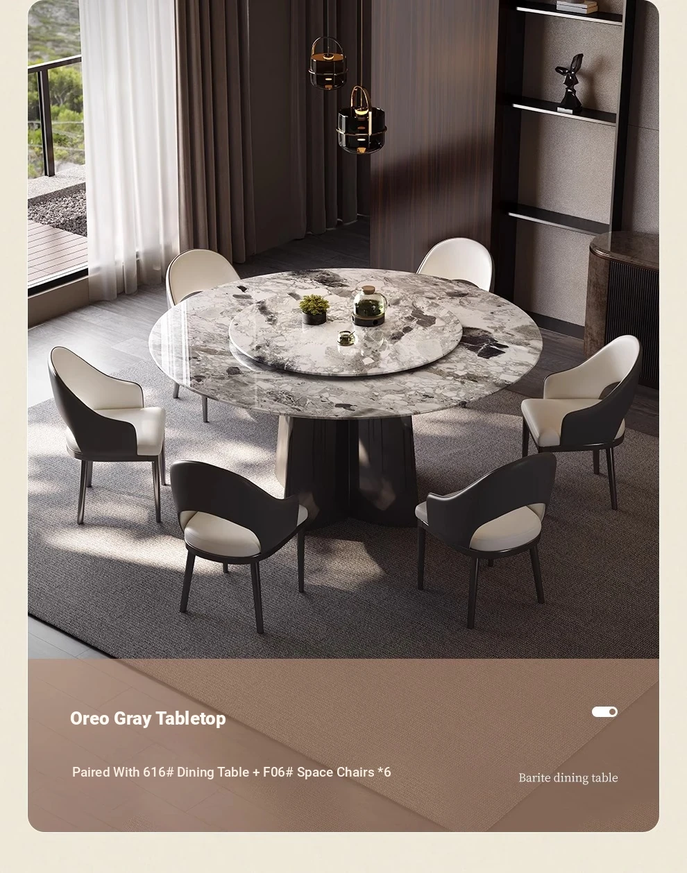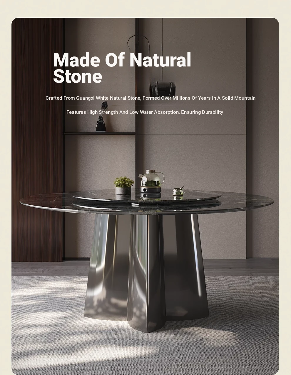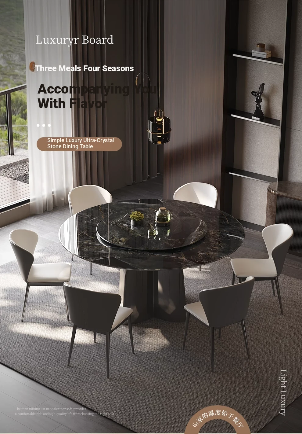 WenNuo Italian Luxury Ultra-Crystal Stone Dining Table - Elegant Round Marble Table with Rotating Tray for Home and Restaurant Use