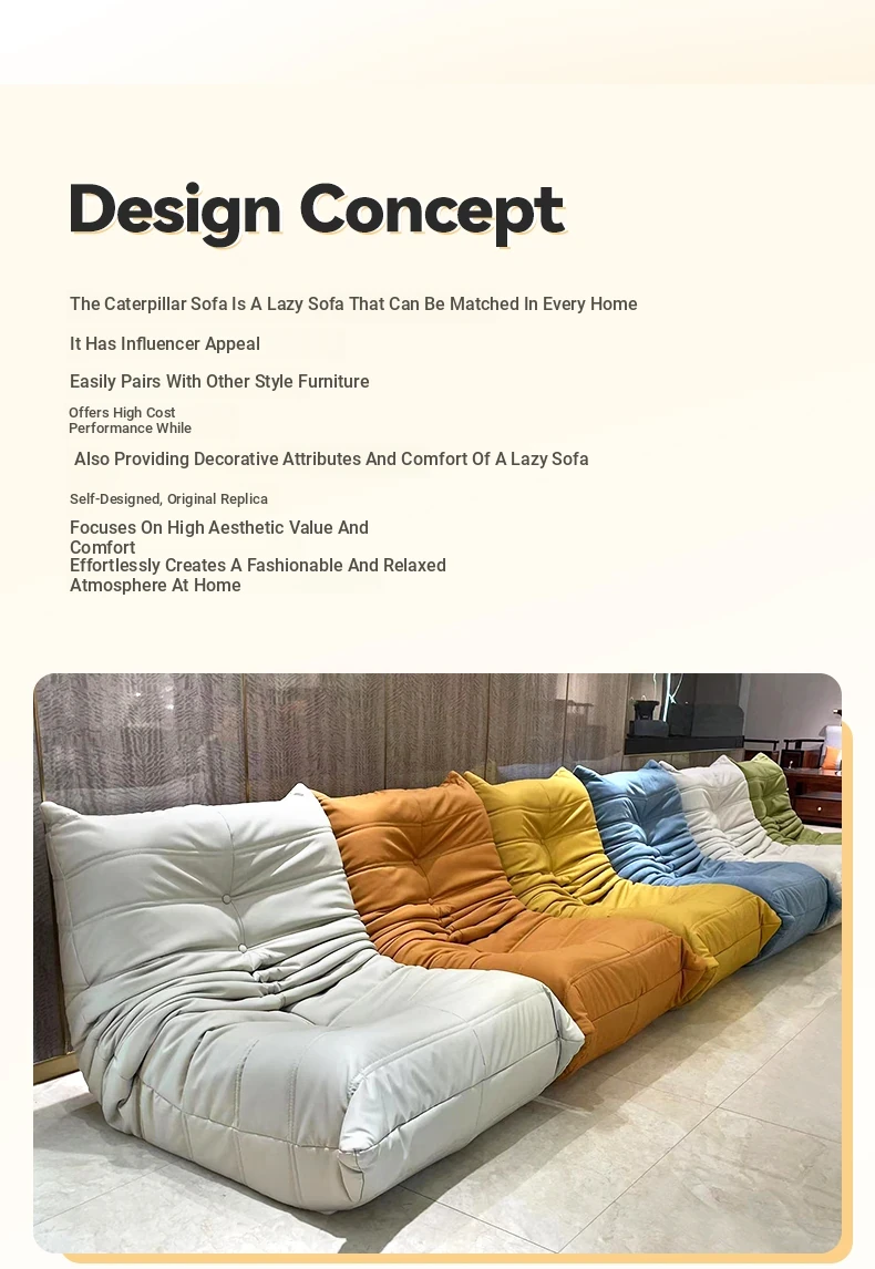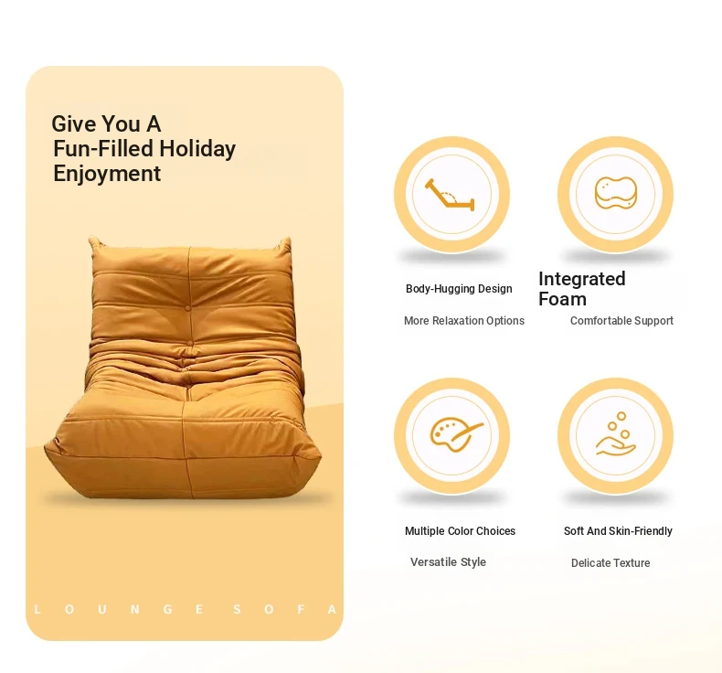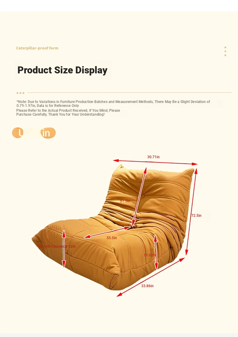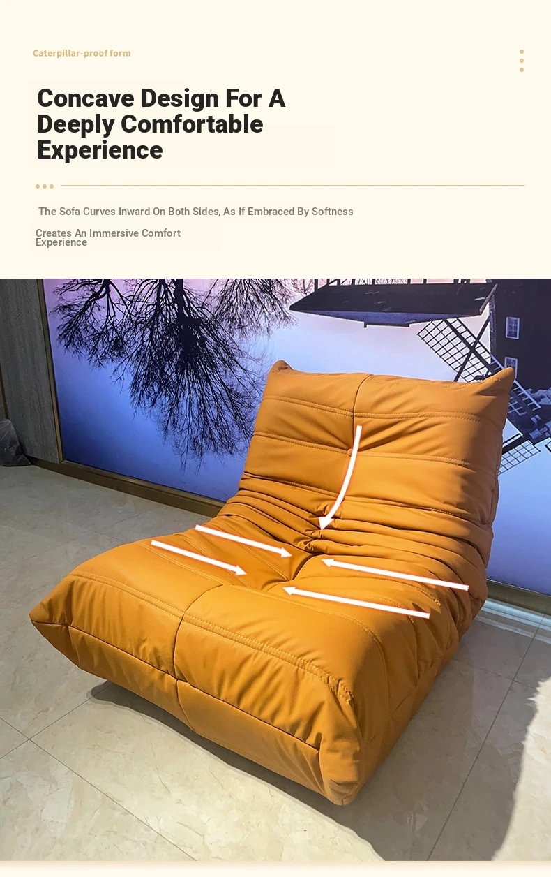 Yamajia Plush Caterpillar Lazy Sofa - Creamy Style, Perfect for Bedroom or Living Room, Convertible for Relaxation and Sleep, Ideal for Balcony or Single Seating.