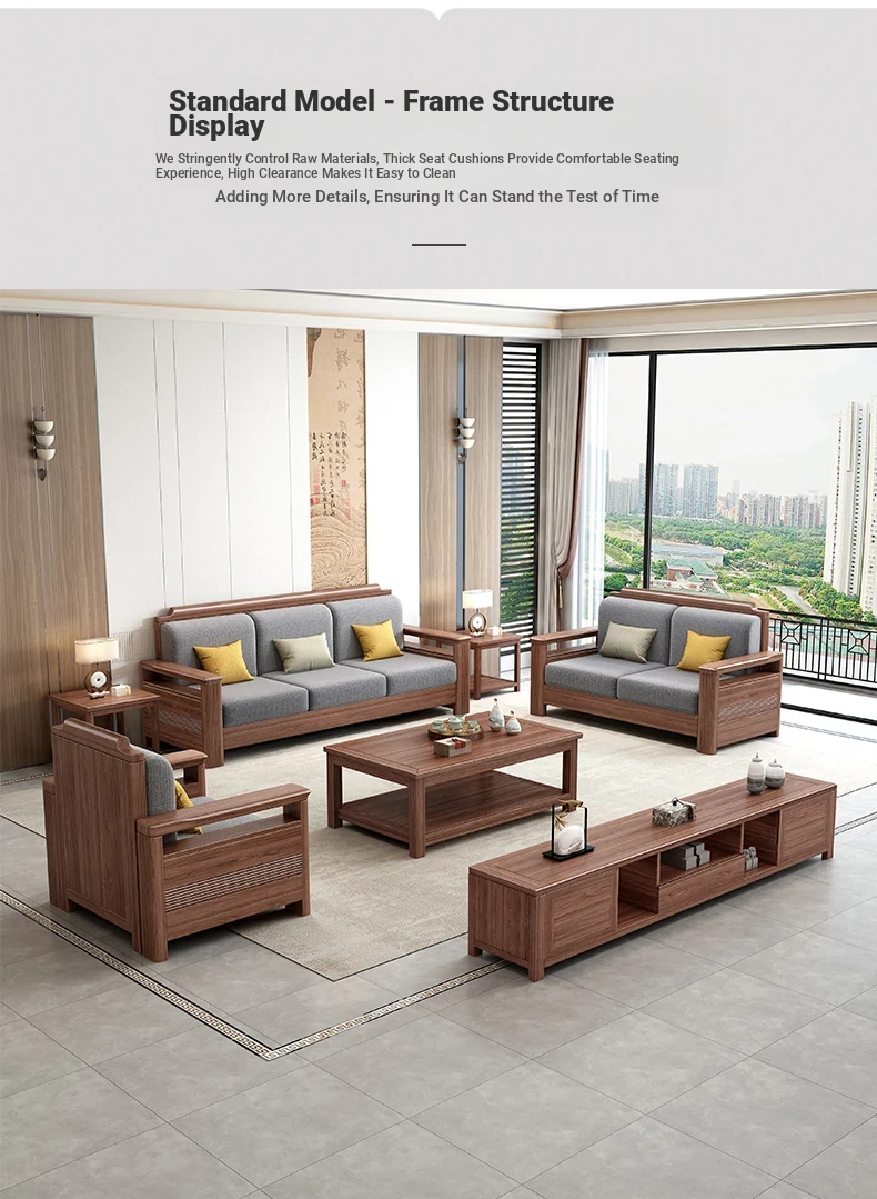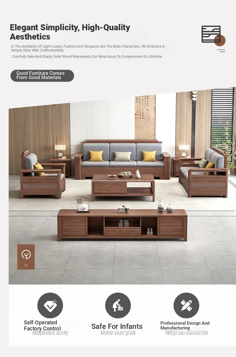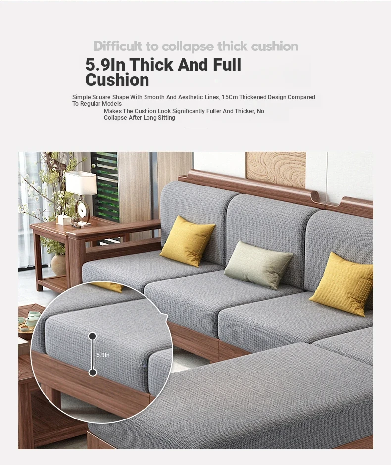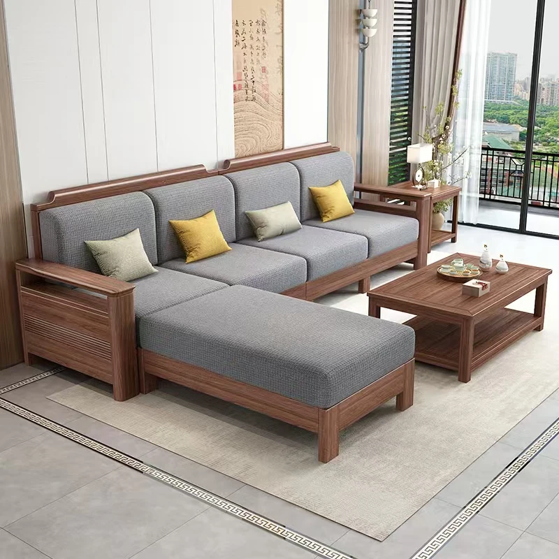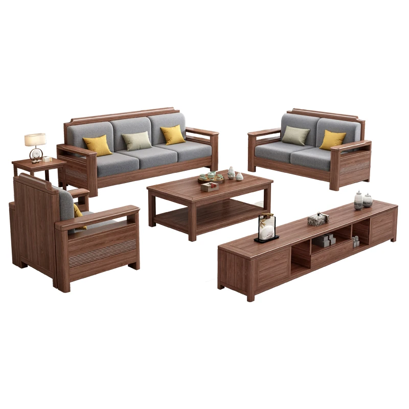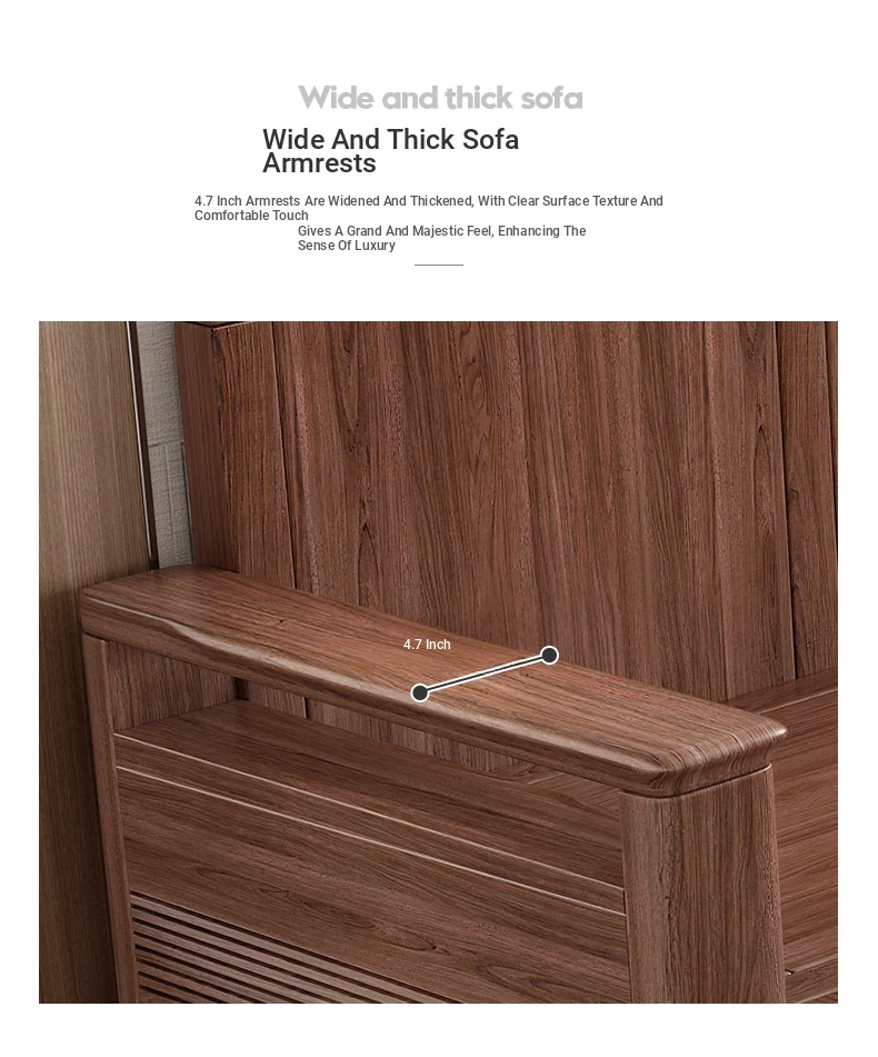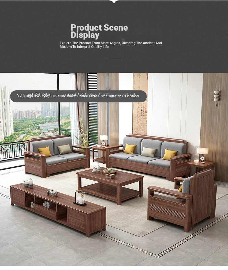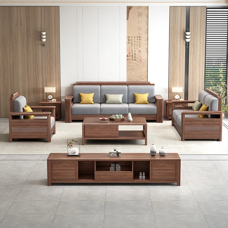 Yamakaja Walnut Solid Wood Sofa Set - New Chinese Style Living Room Combination for Small Spaces, Versatile Winter & Summer Use, with Storage and Fabric Upholstery