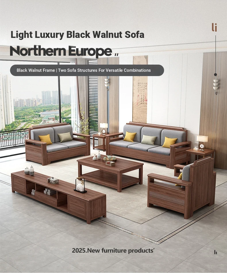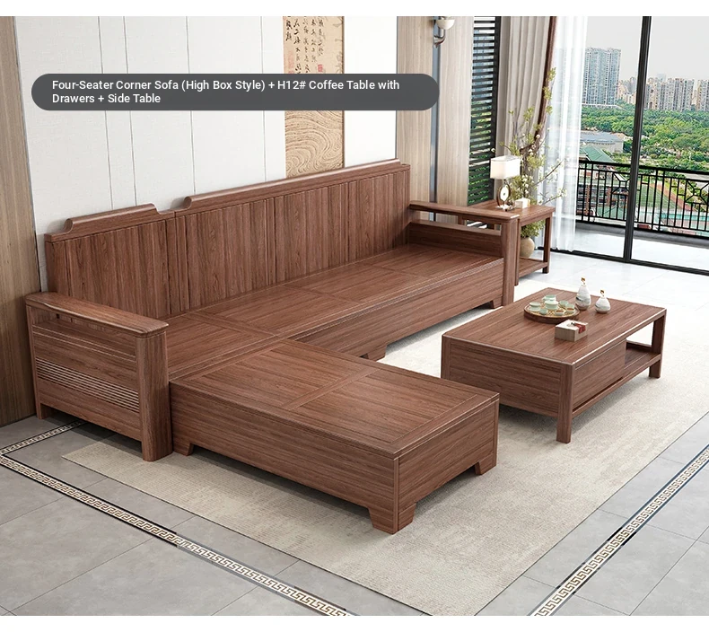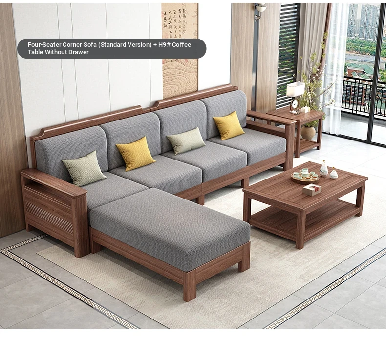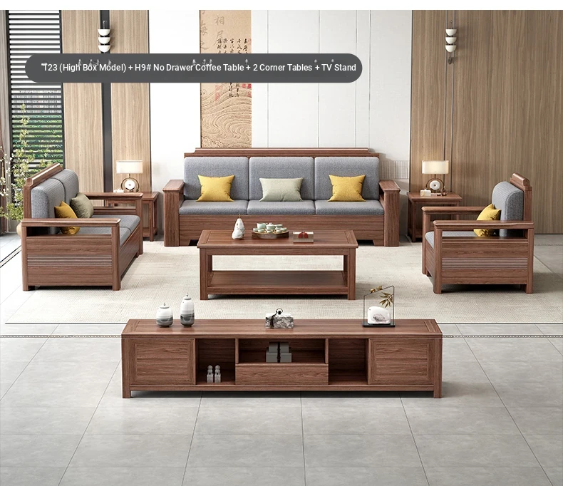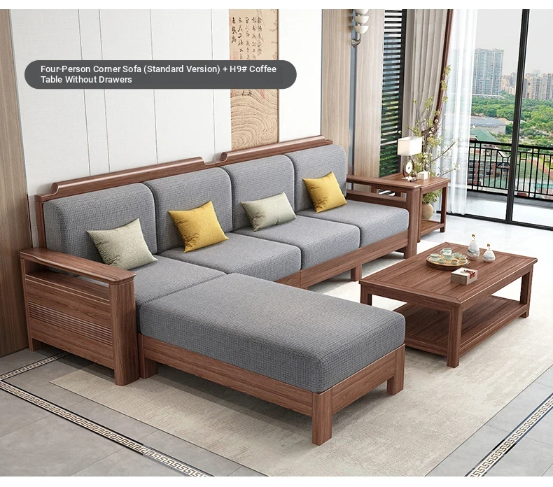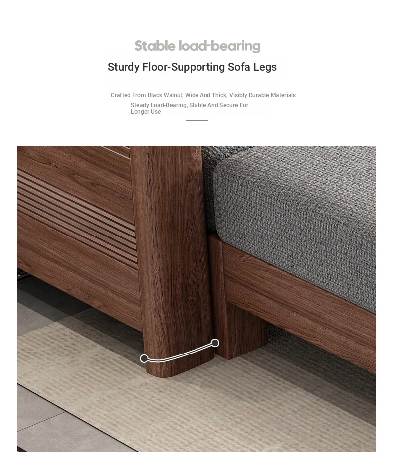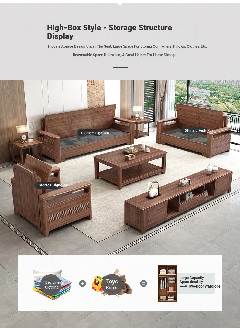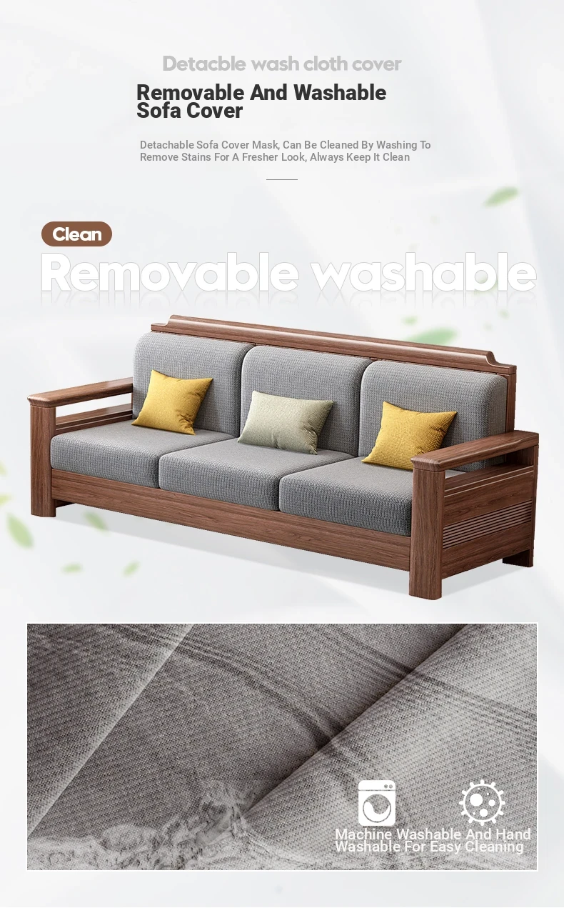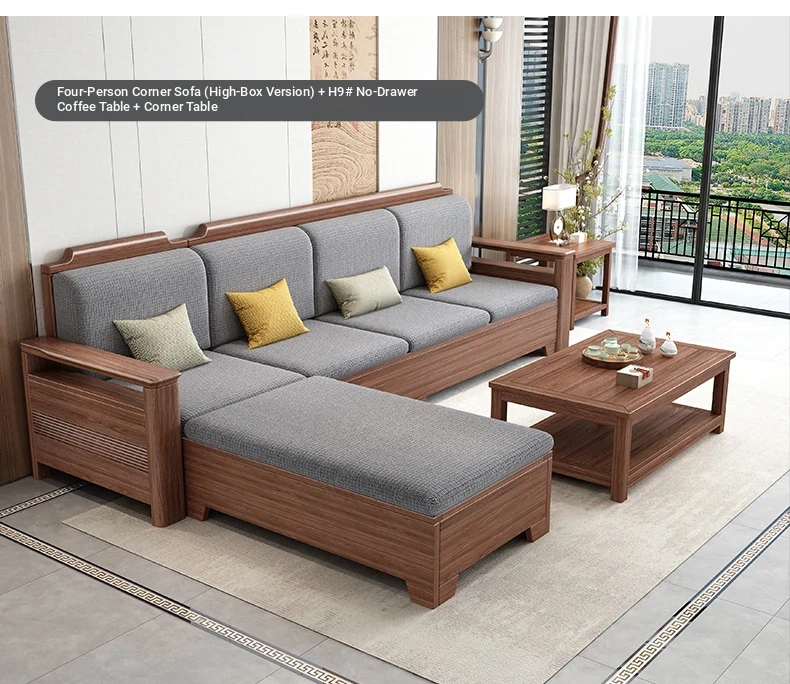 Yamakaja Walnut Solid Wood Sofa Set - New Chinese Style Living Room Combination for Small Spaces, Versatile Winter & Summer Use, with Storage and Fabric Upholstery