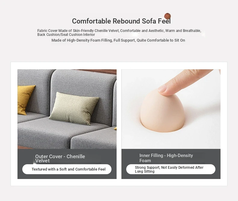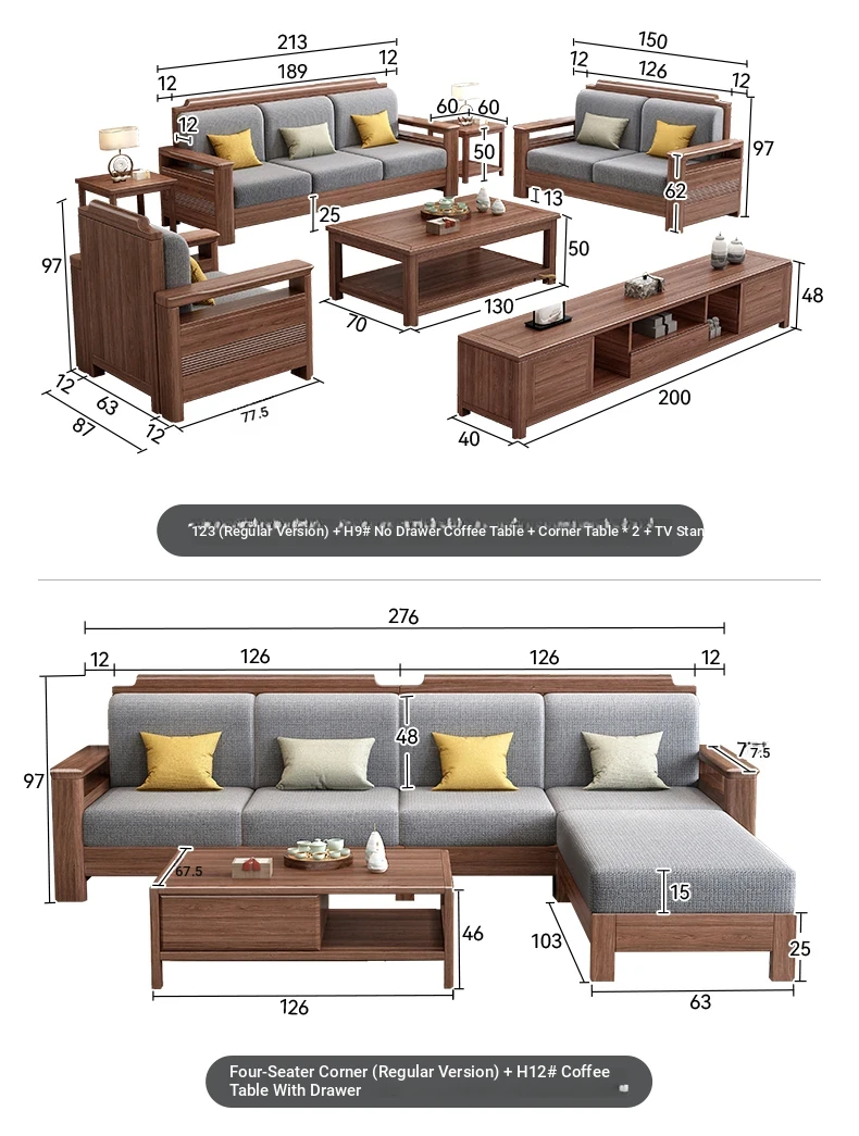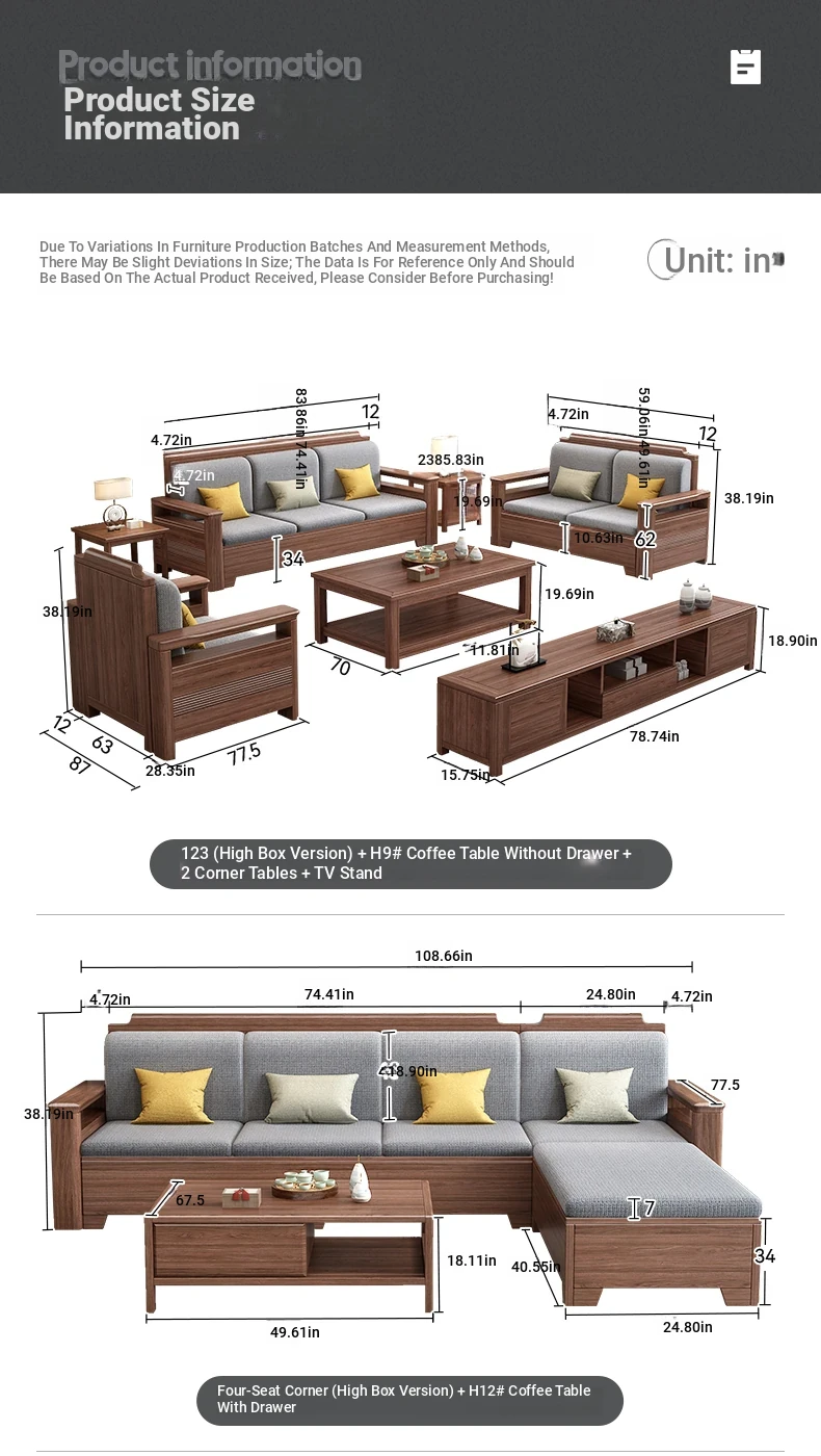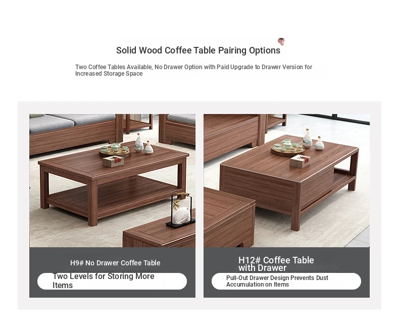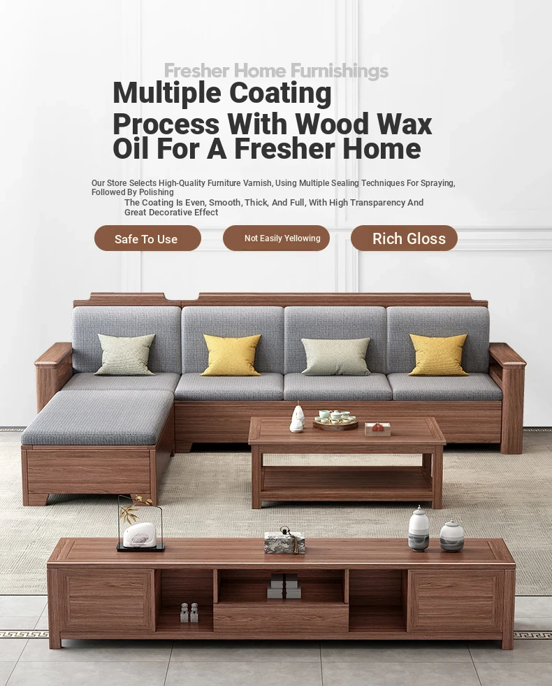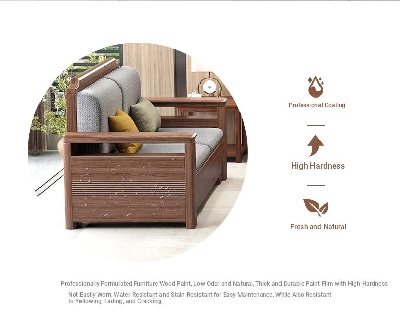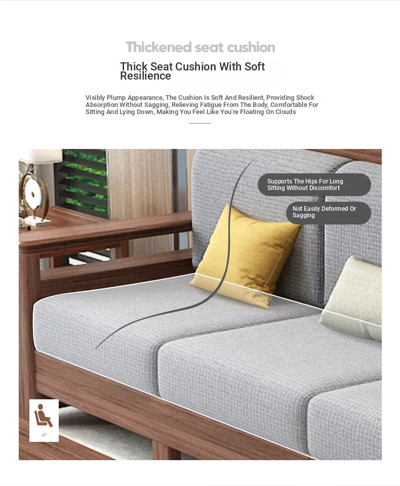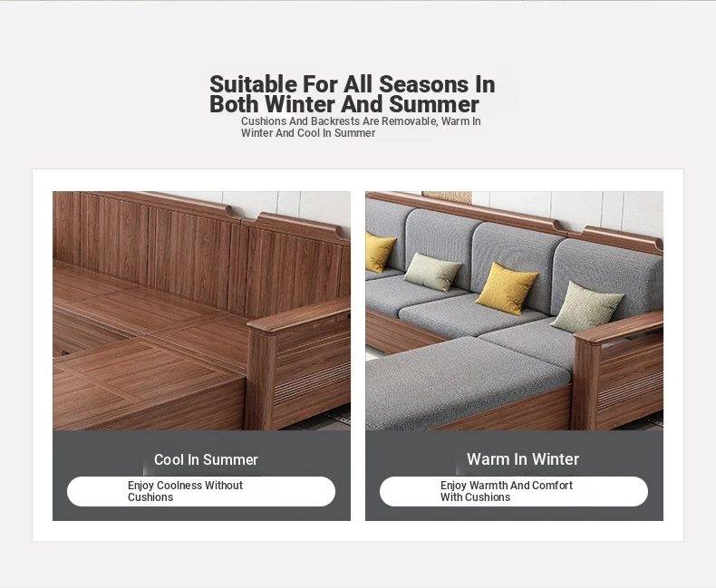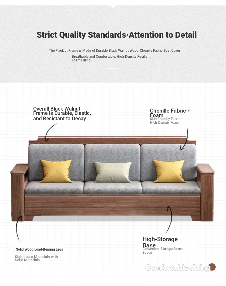 Yamakaja Walnut Solid Wood Sofa Set - New Chinese Style Living Room Combination for Small Spaces, Versatile Winter & Summer Use, with Storage and Fabric Upholstery