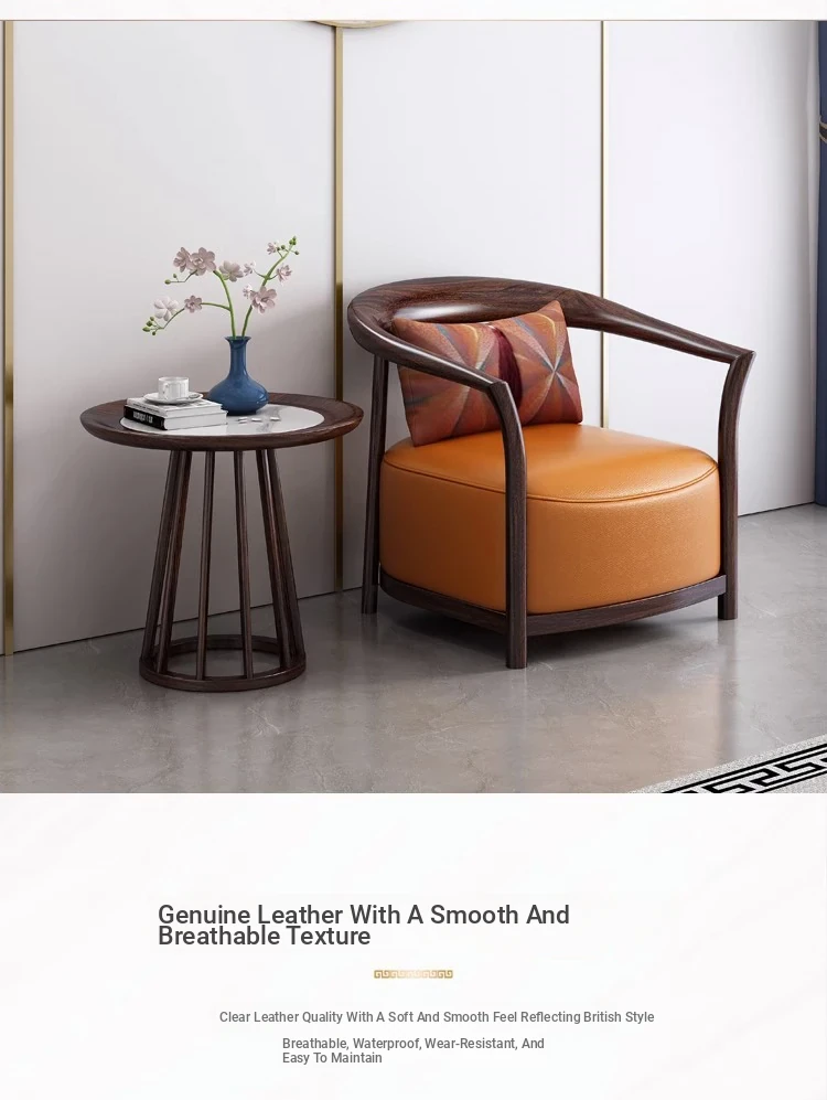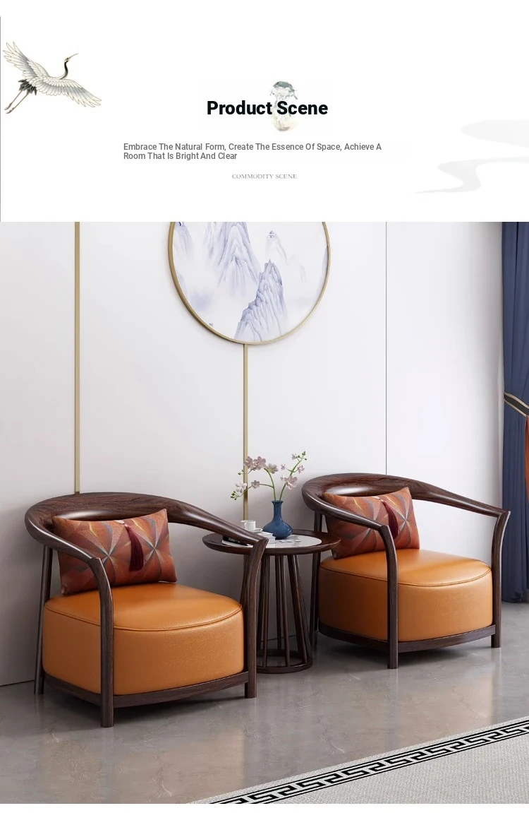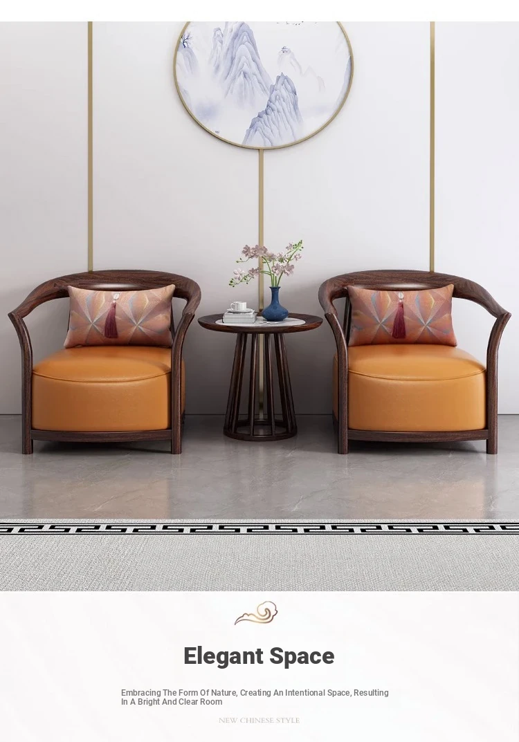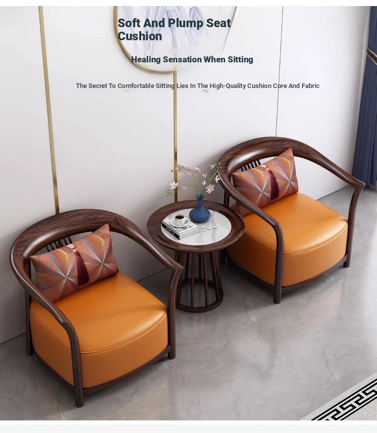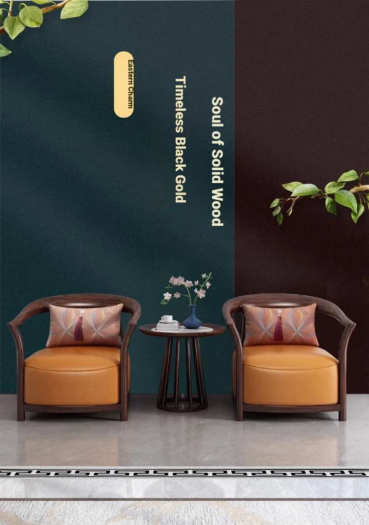 Yue Mi Premium New Chinese Style Black Gold Wood Leisure Chair Set - 3-Piece Home Living Room Solid Wood Tea Table and Sofa Chairs