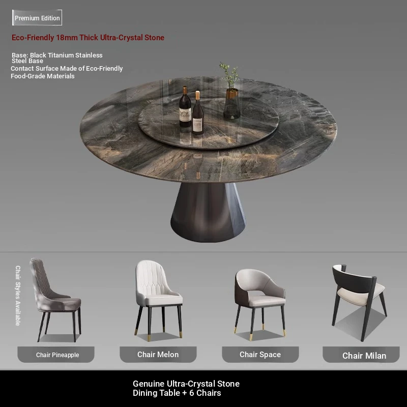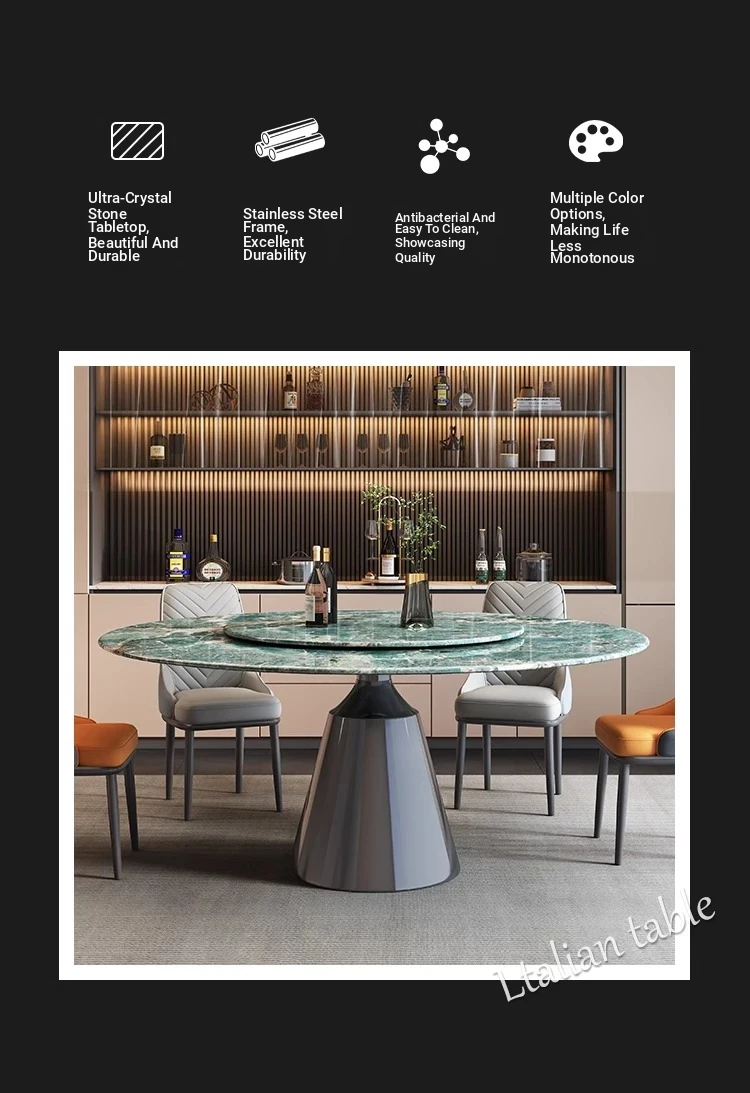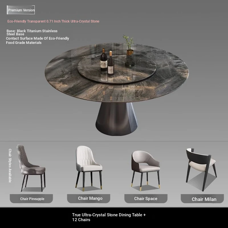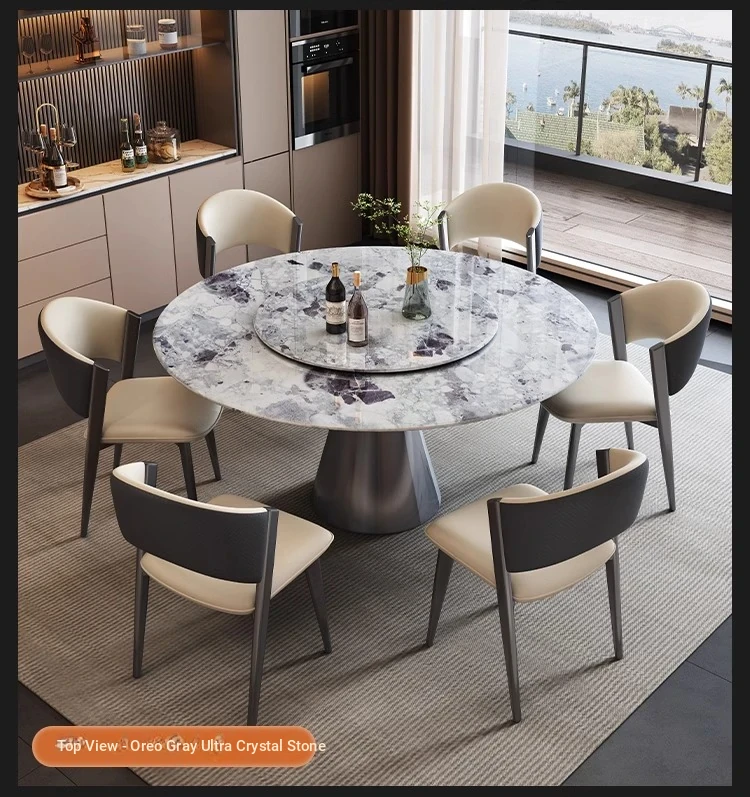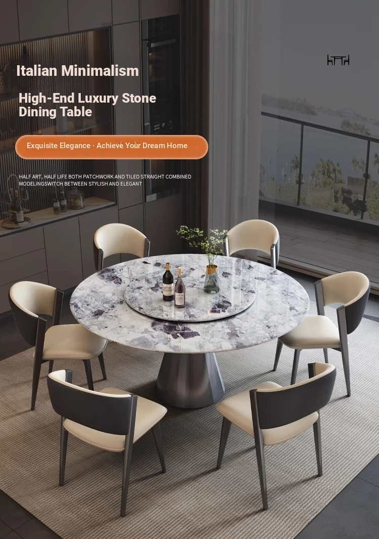 Yufei Italian Luxury Ultra-Crystal Stone Round Dining Table - Natural Marble Villa Style Simple Modern Home Dining Table