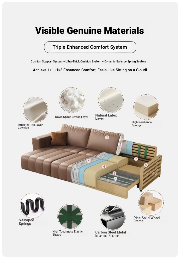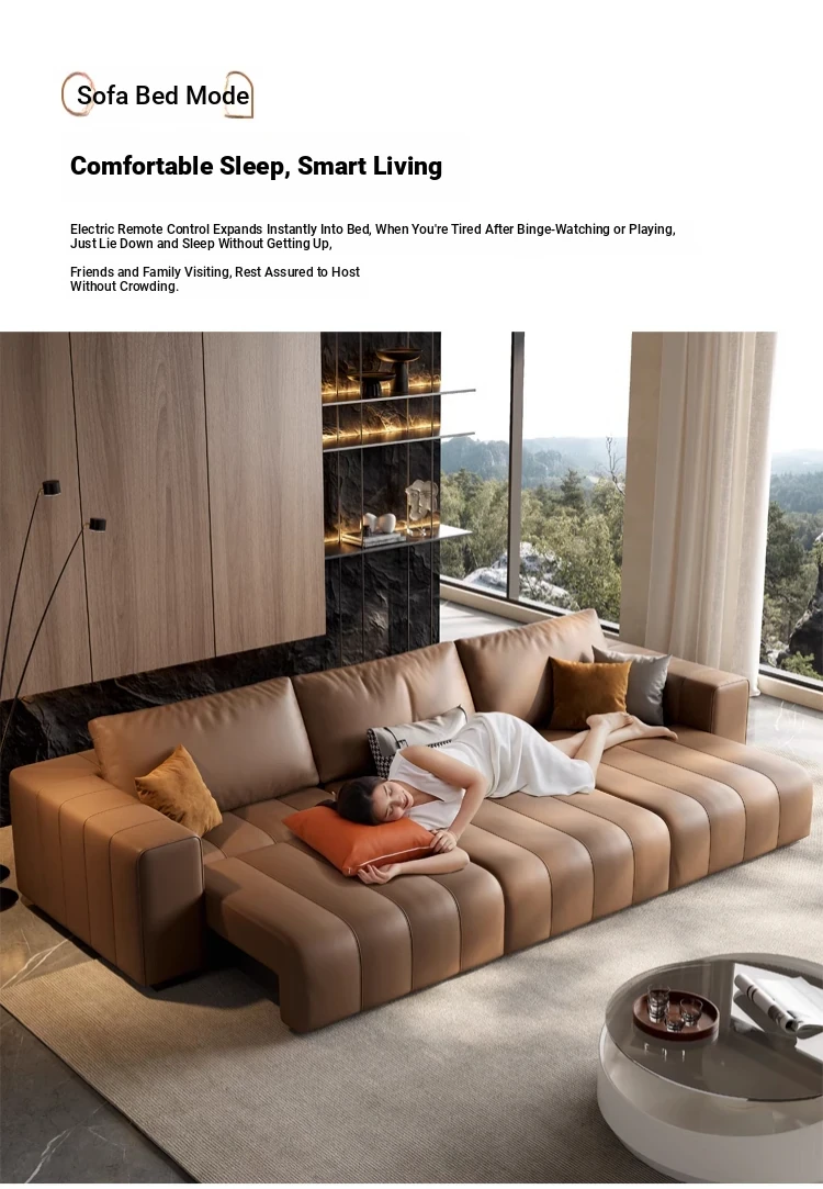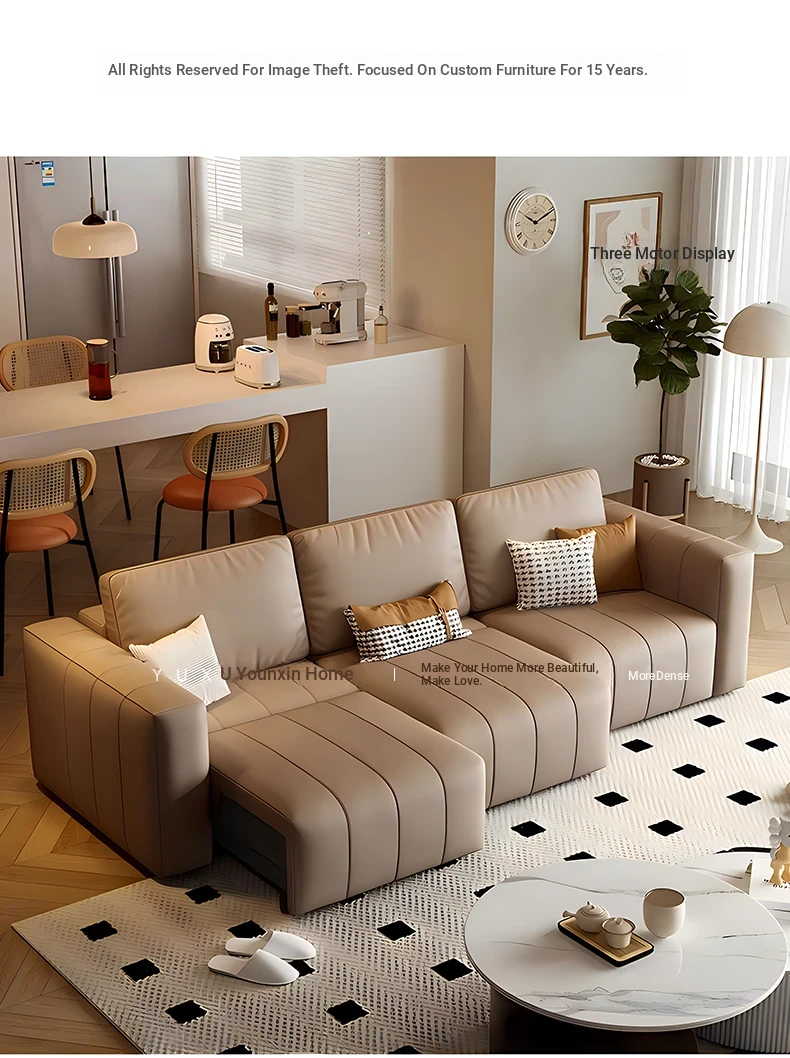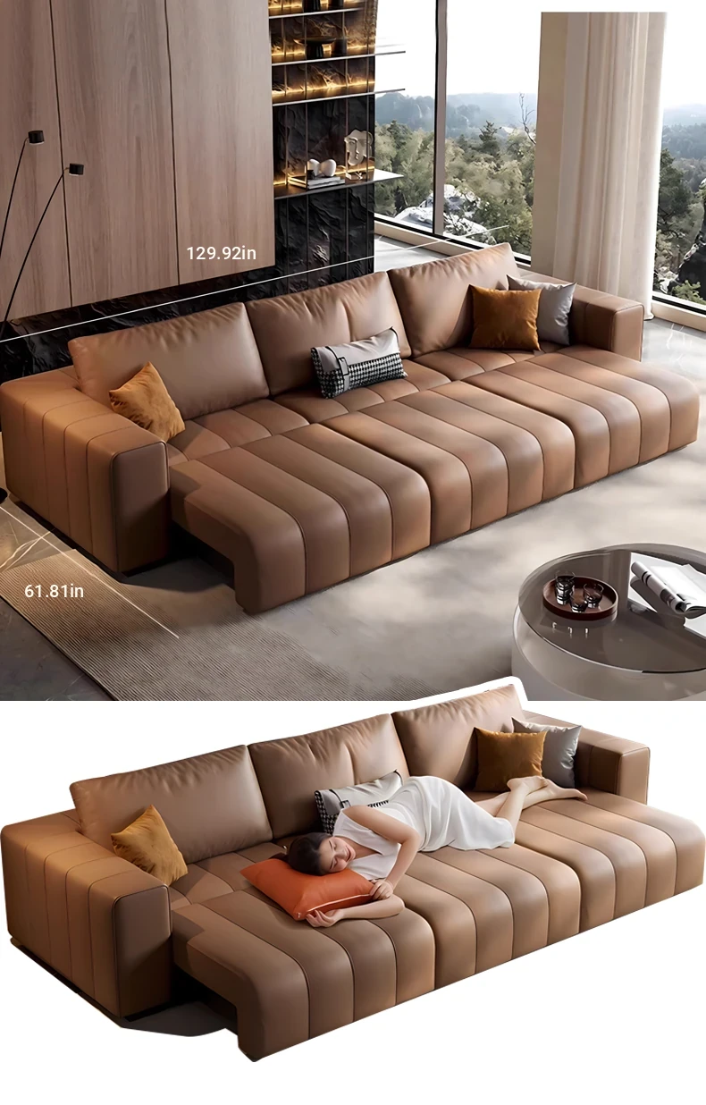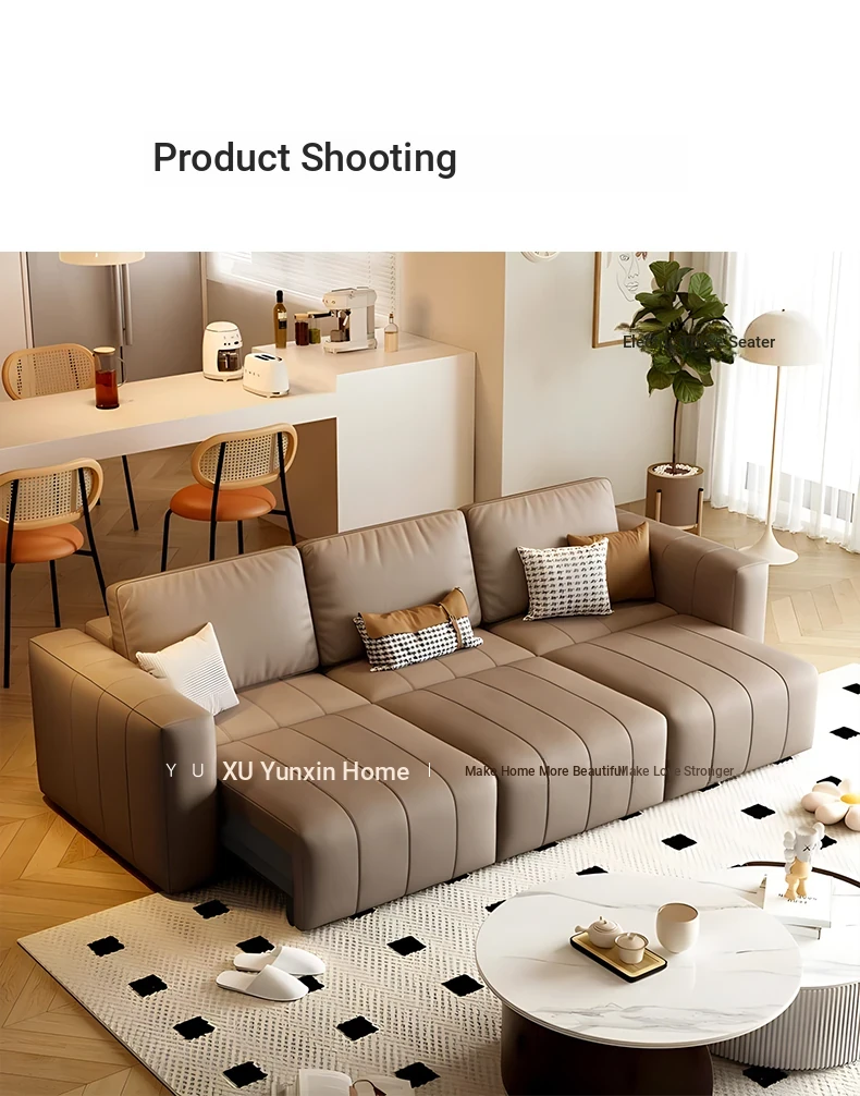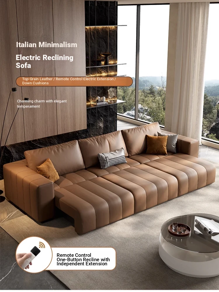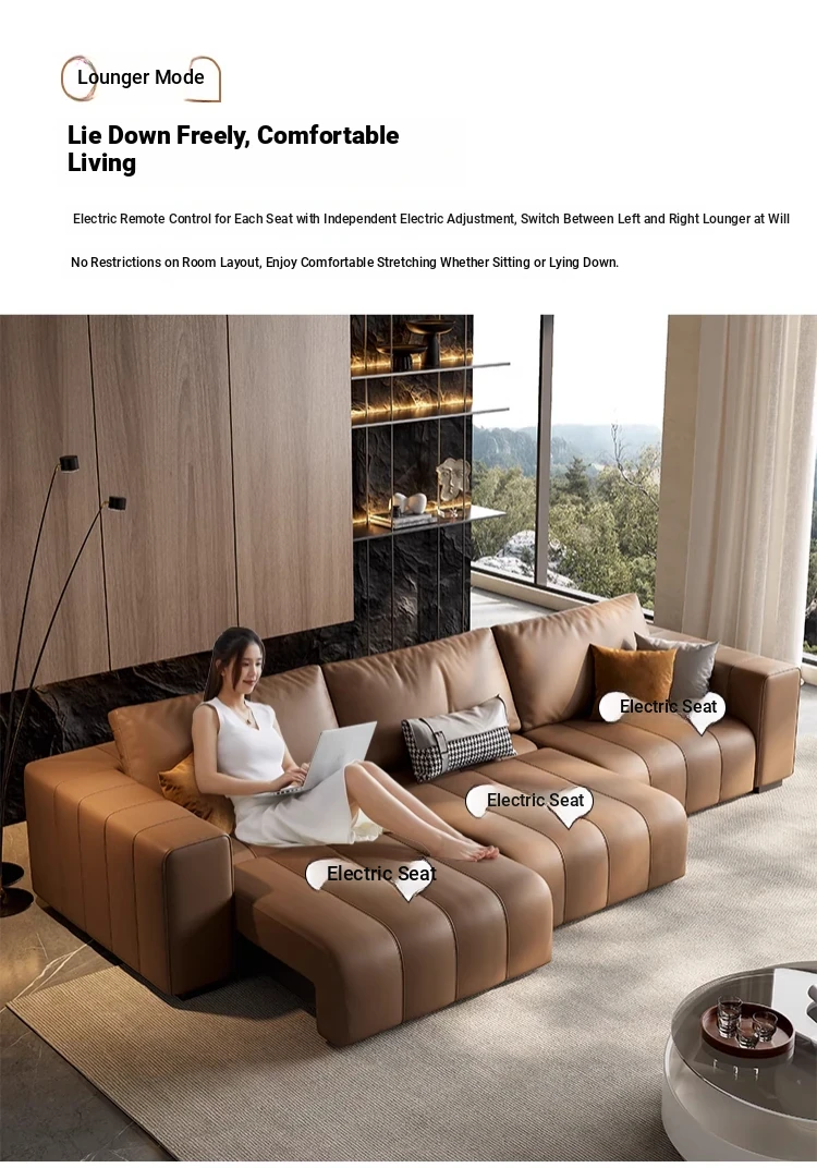 123.62 in Comfortable Three-Position [Full Leather-Fine Triined thickened Yellow Cowhide] Three-Motor