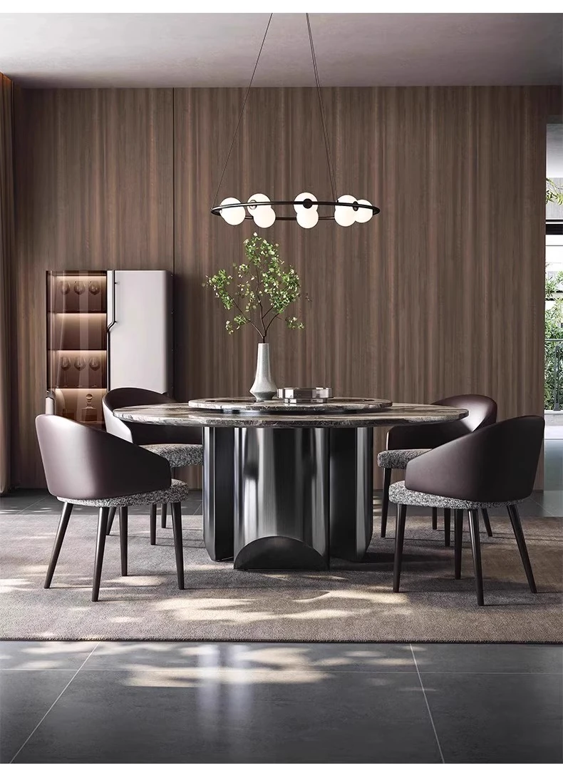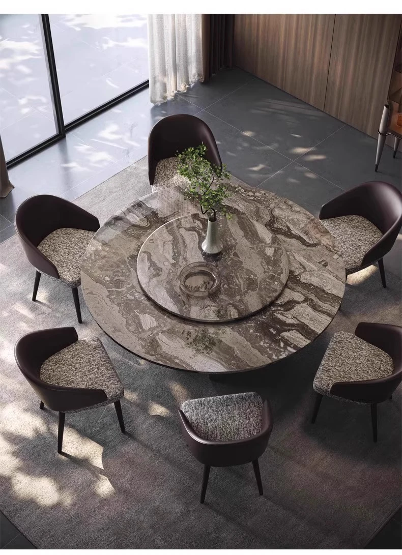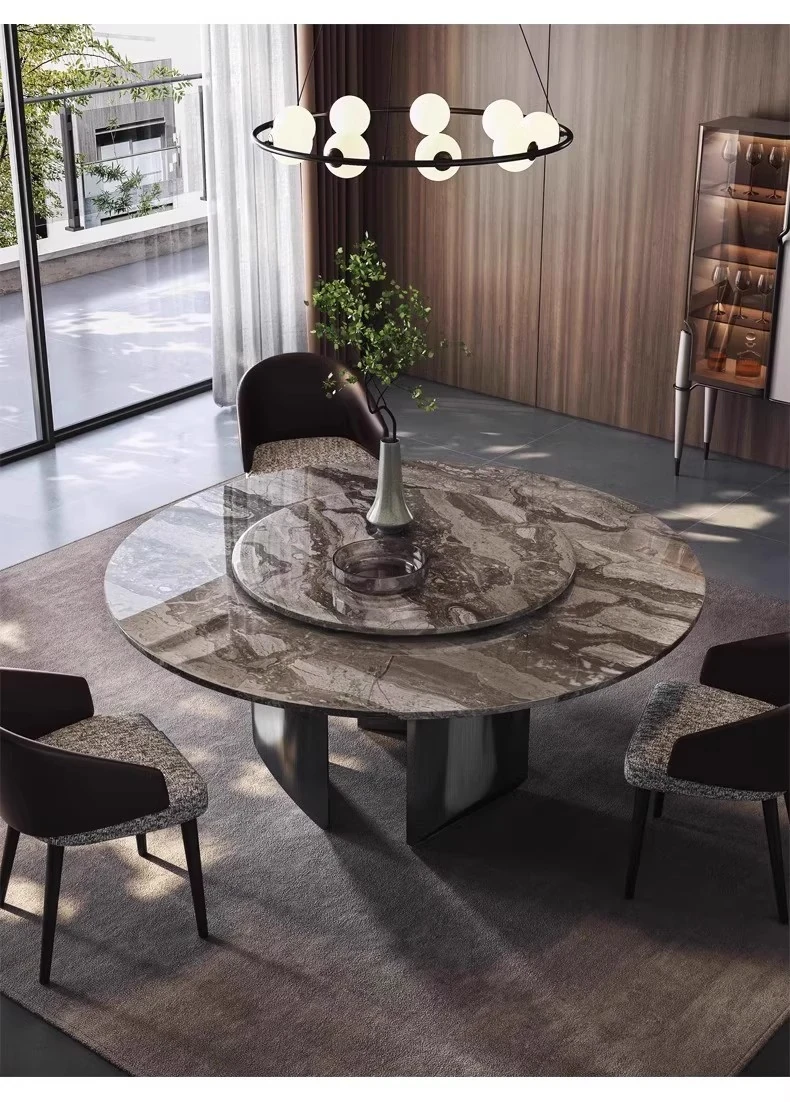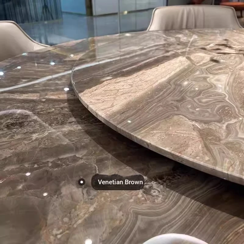 Yunxin Italian Imported Luxury Marble Dining Table - Venetian Brown Round Table for Modern Villas - Elegant Round Dining Table with Sophisticated Design