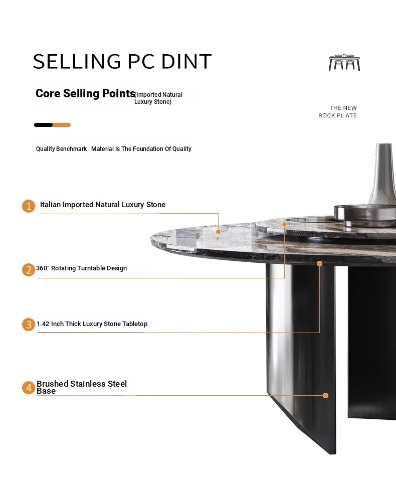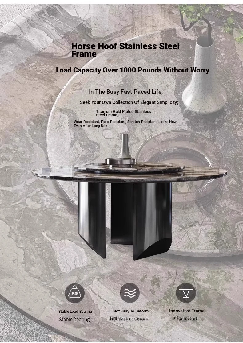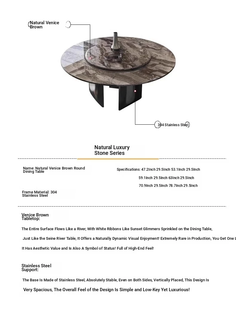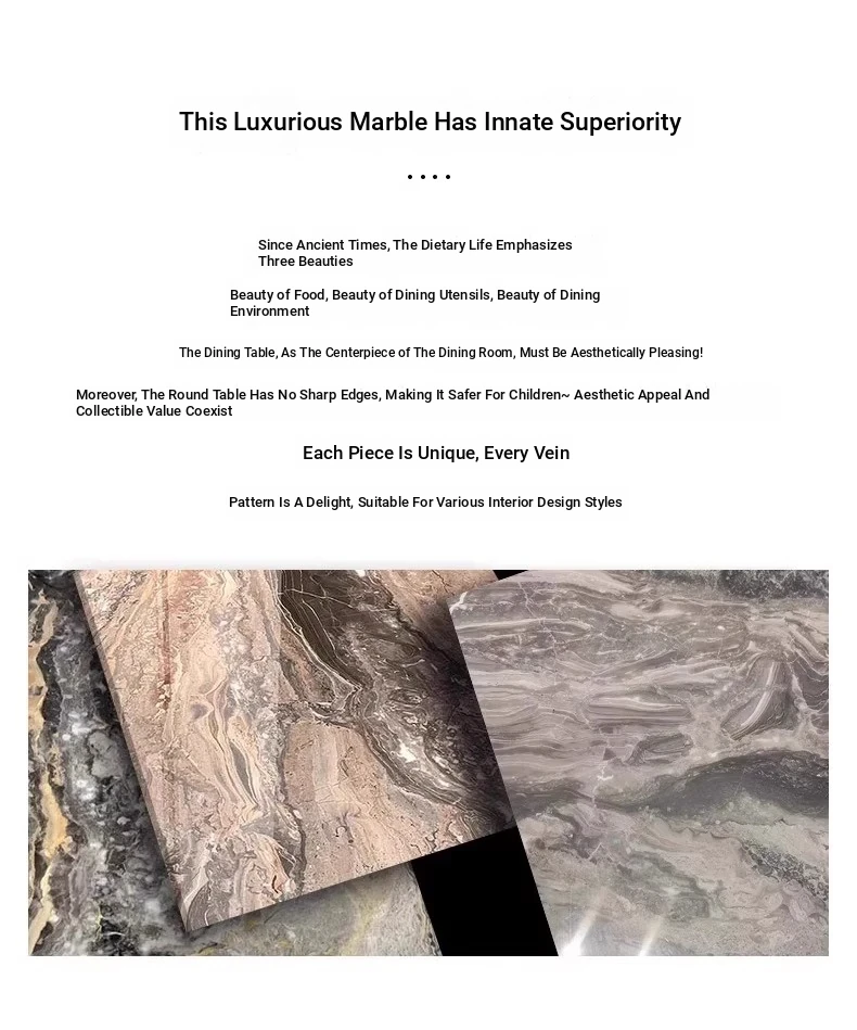 Yunxin Italian Imported Luxury Marble Dining Table - Venetian Brown Round Table for Modern Villas - Elegant Round Dining Table with Sophisticated Design