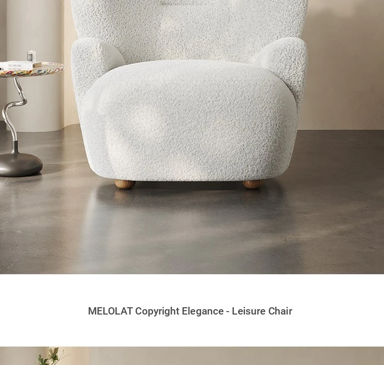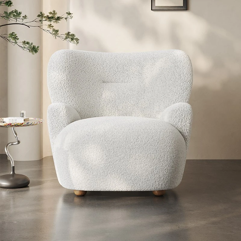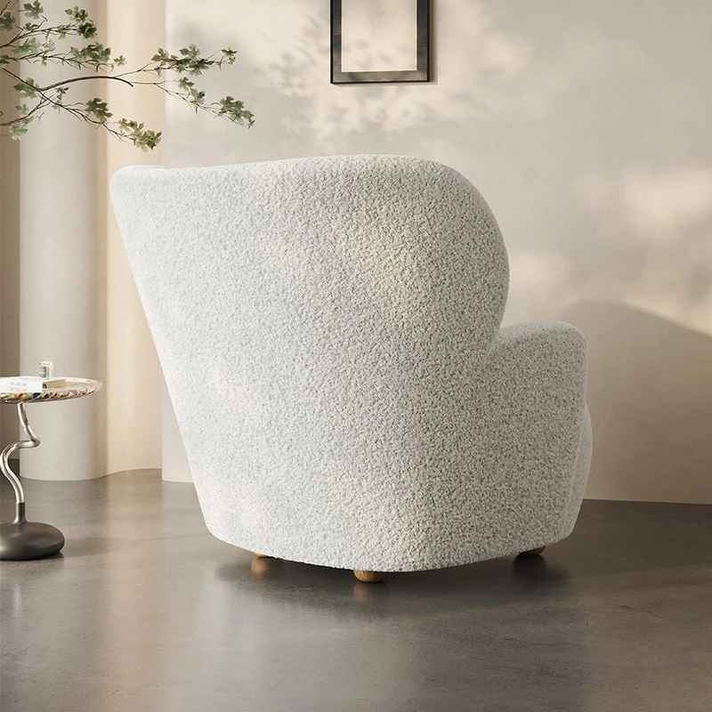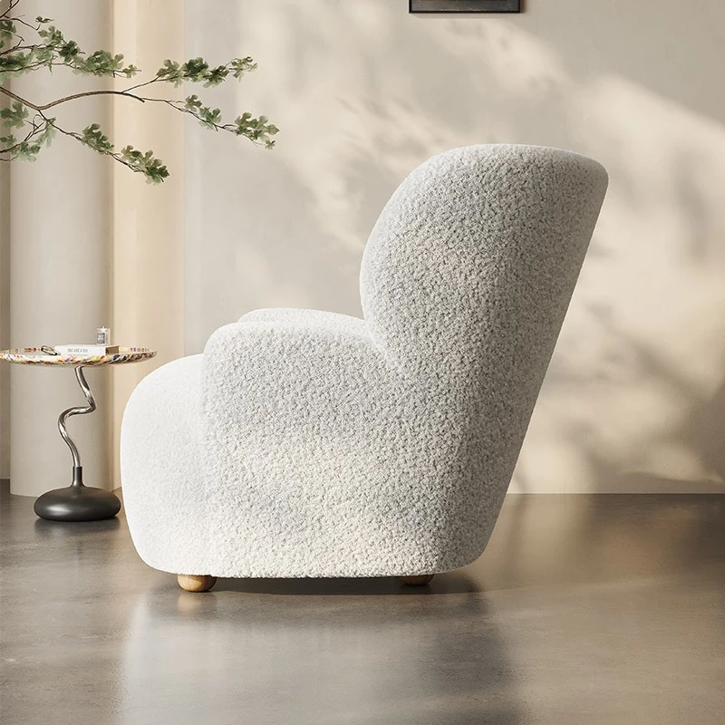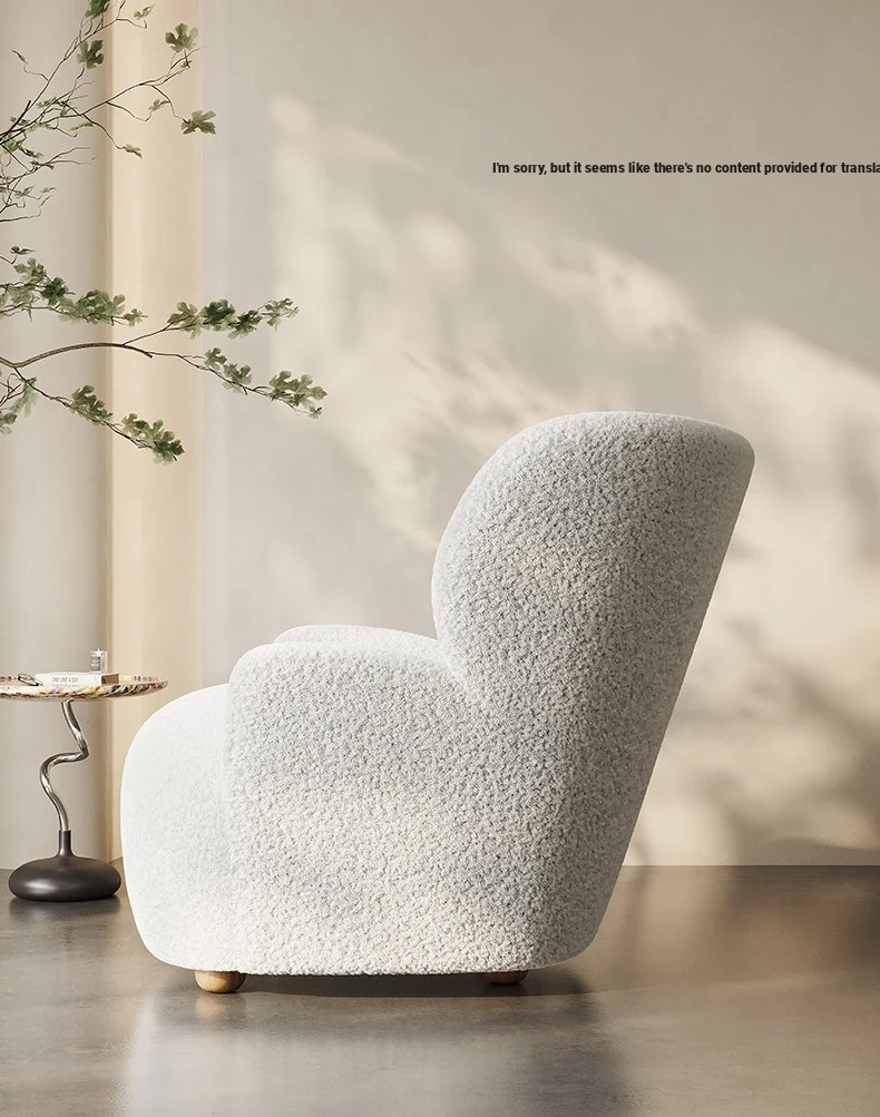 Yunxin Nordic LOLL Lamb Fleece Single White Sofa – French Designer Vintage Cream Style Armchair and Recliner