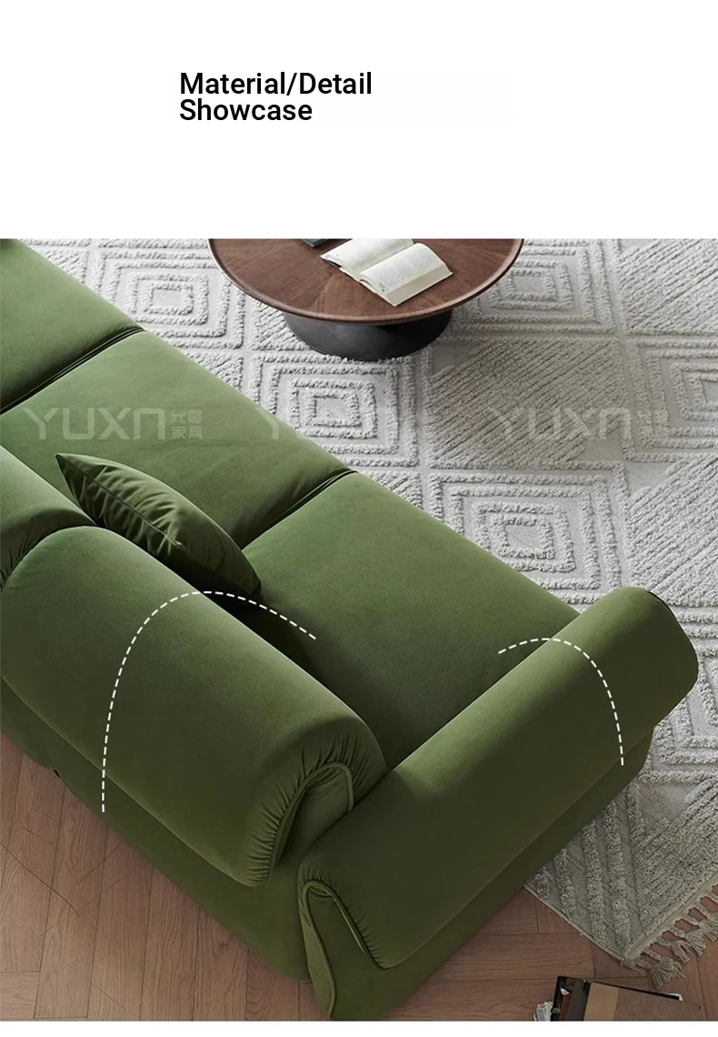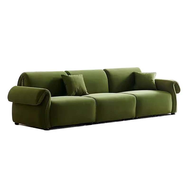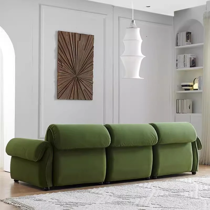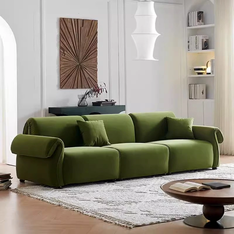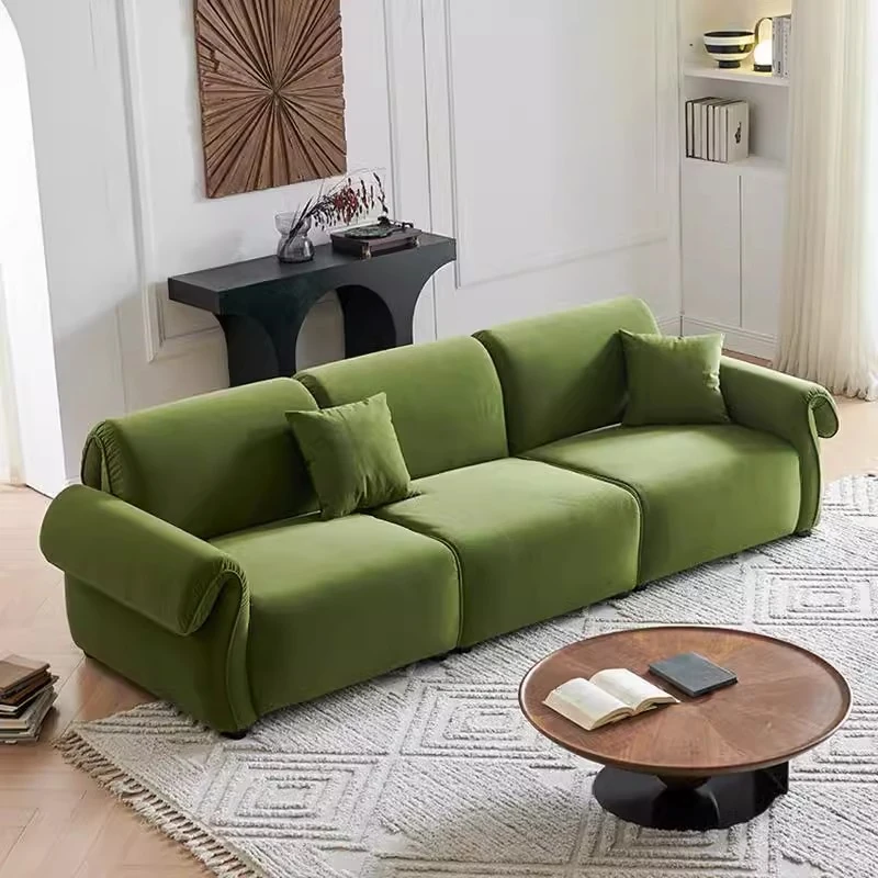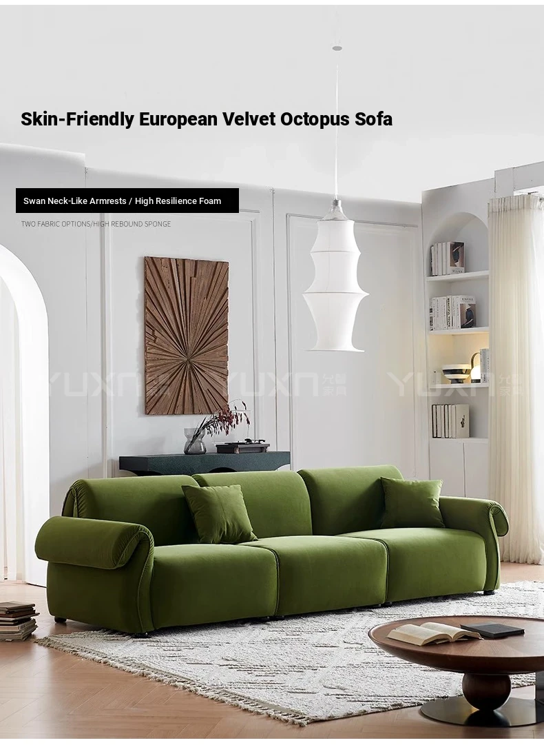 Yunxin Retro French Style Velvet Octopus Sofa - Green Designer Three-Seat Couch for Living Room, Cream Aesthetic, Straight-Line Design
