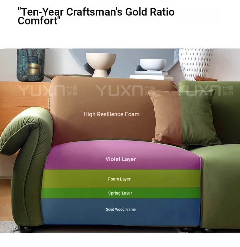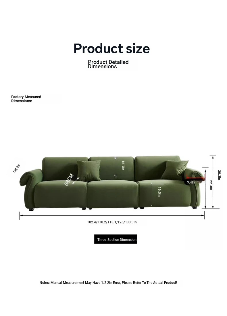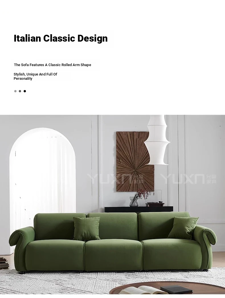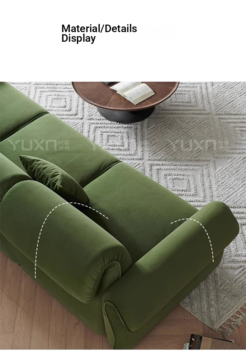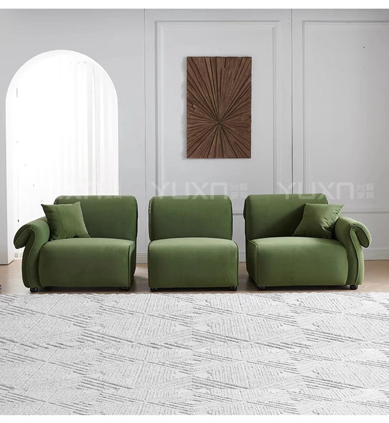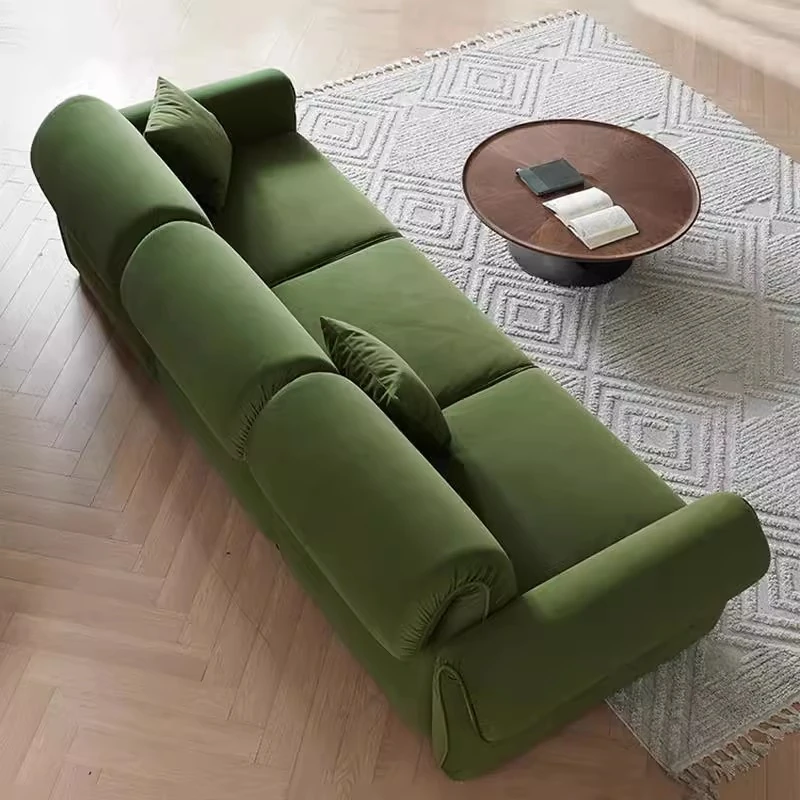 Yunxin Retro French Style Velvet Octopus Sofa - Green Designer Three-Seat Couch for Living Room, Cream Aesthetic, Straight-Line Design
