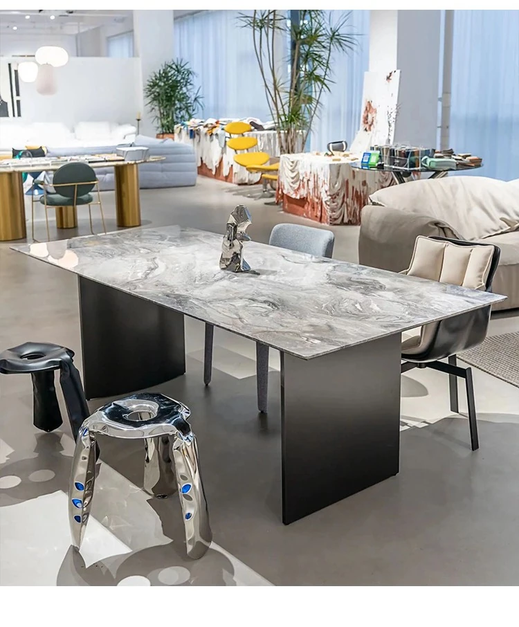 Yunxin Venice Brown Luxury Stone Dining Table - Milo Tiling Natural Marble High-End Designer Dining Table for Premium Living Spaces