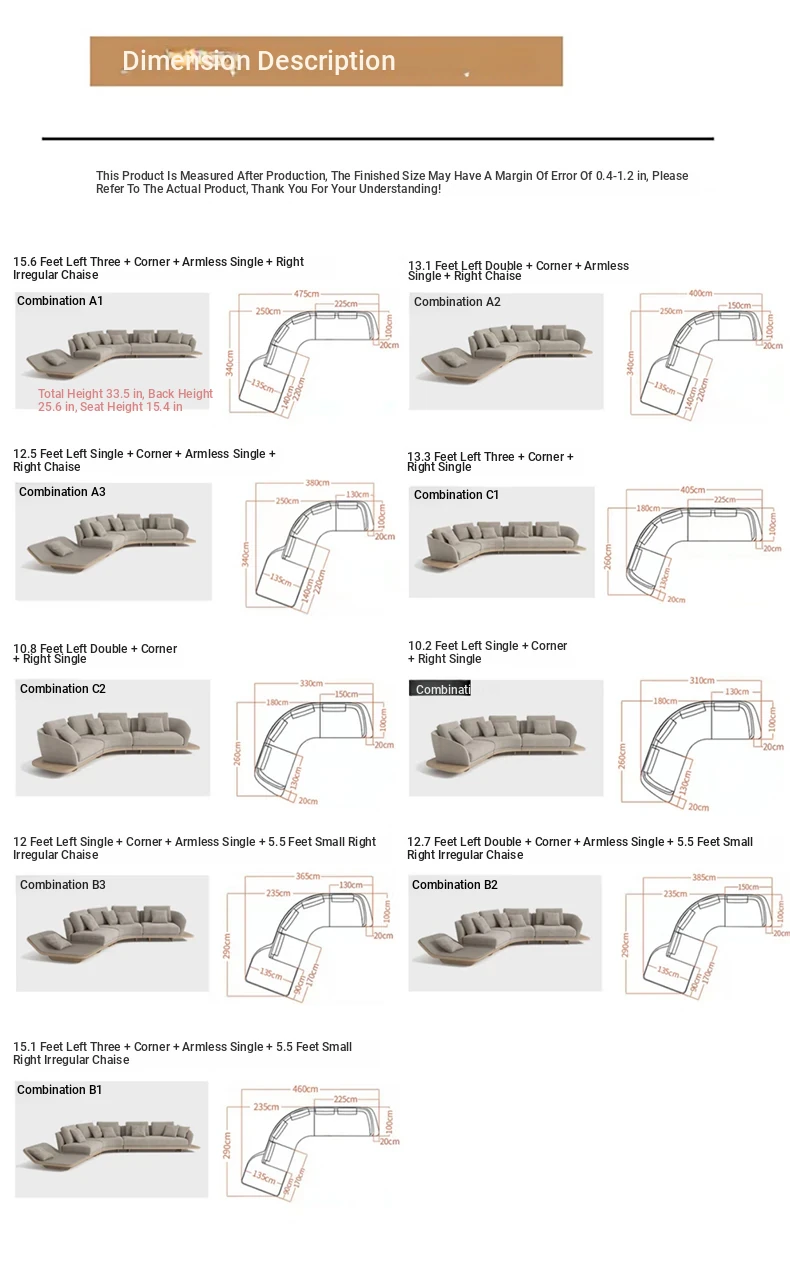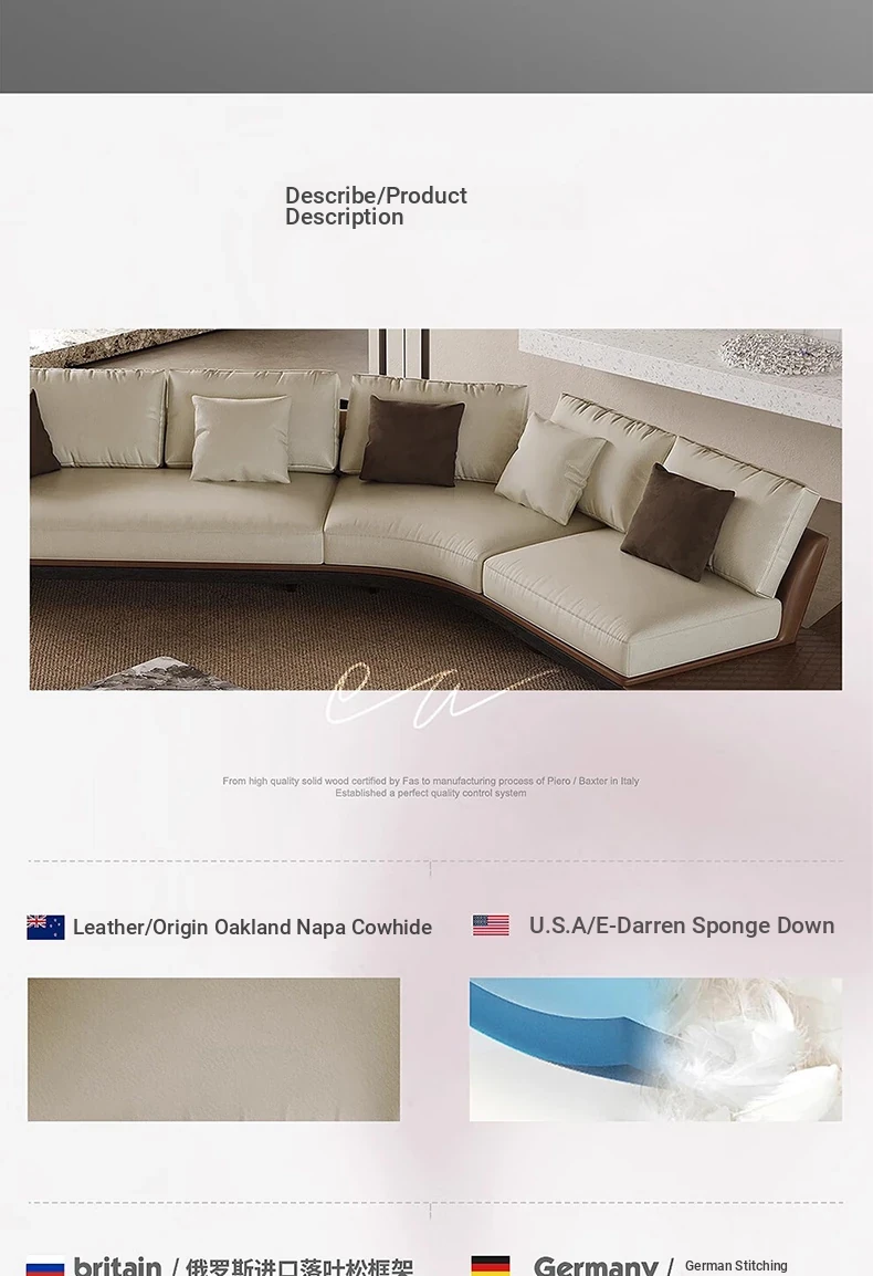 Zhenpi Italian Luxury Genuine Leather Drift Curved Sofa - Premium Villa Living Room Ferrari-Inspired Design for Spacious Flats