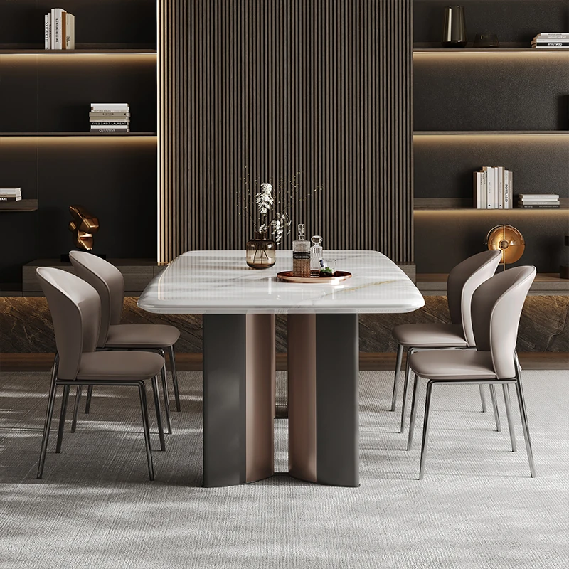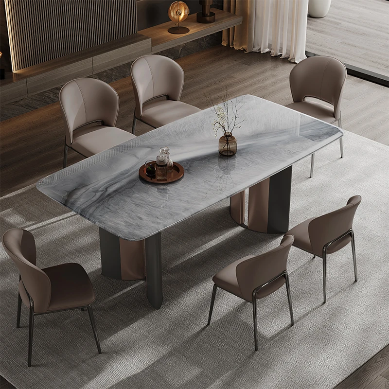 Light gray(55.12 in microcrystalline stone table [aluminum alloy table legs +0.71in thick microcrystalline stone table top] (dining chair * 6))