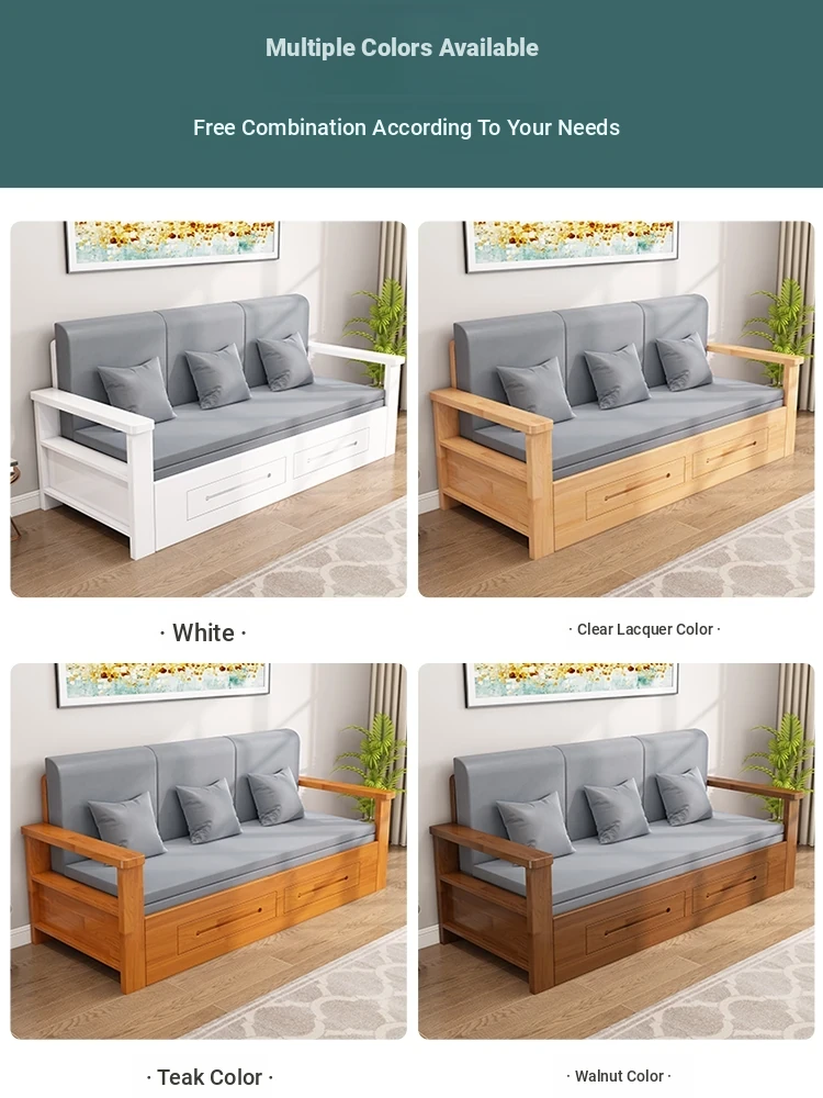 2022 New Multi-Functional Solid Wood Sofa Bed - Space-Saving Design for Small Homes, Perfect for Rural Living, Stylish and Comfortable for Sitting or Sleeping