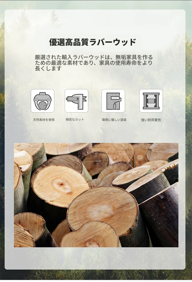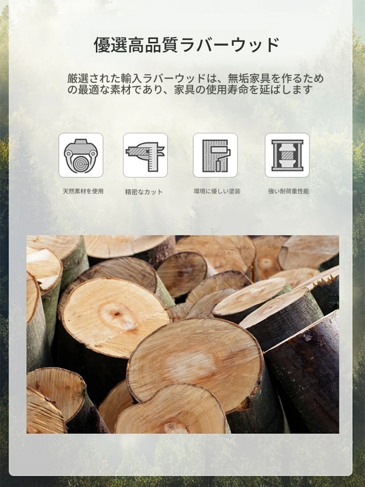 1.5メートル(原木色/ココナッツブラウンマット) ダブル引き出し付き 【8点セット】