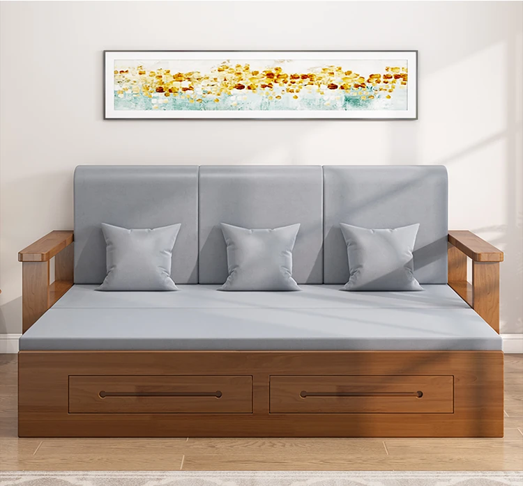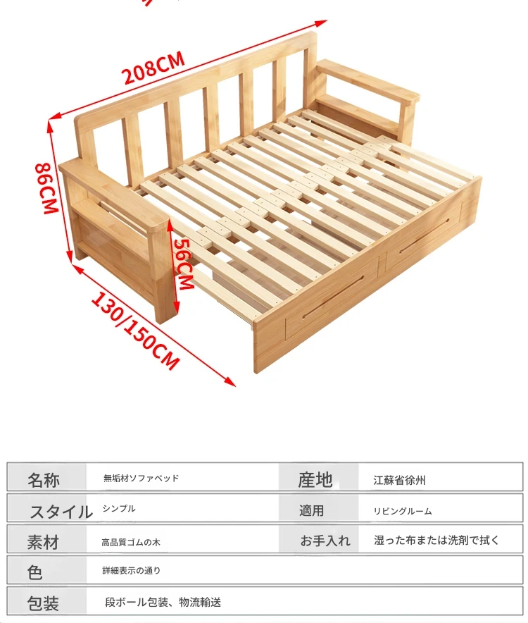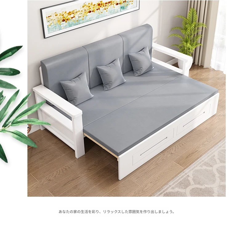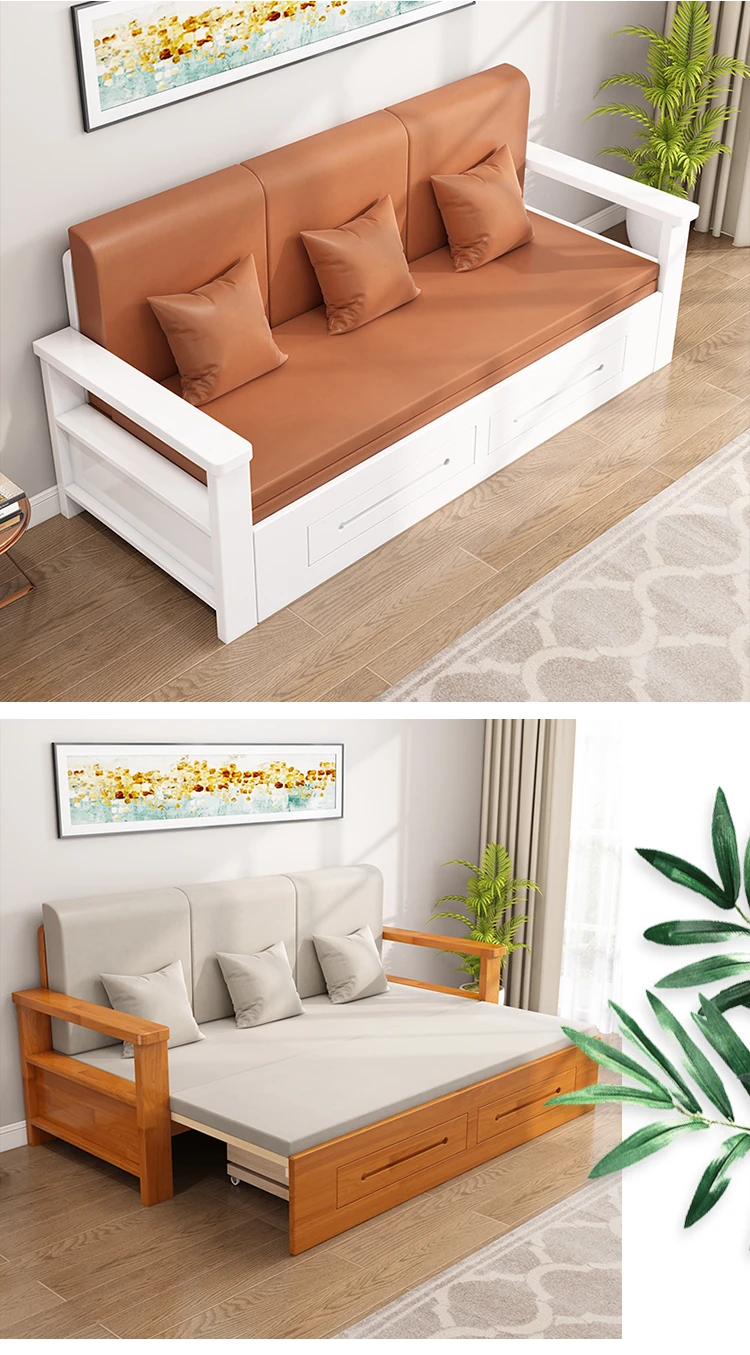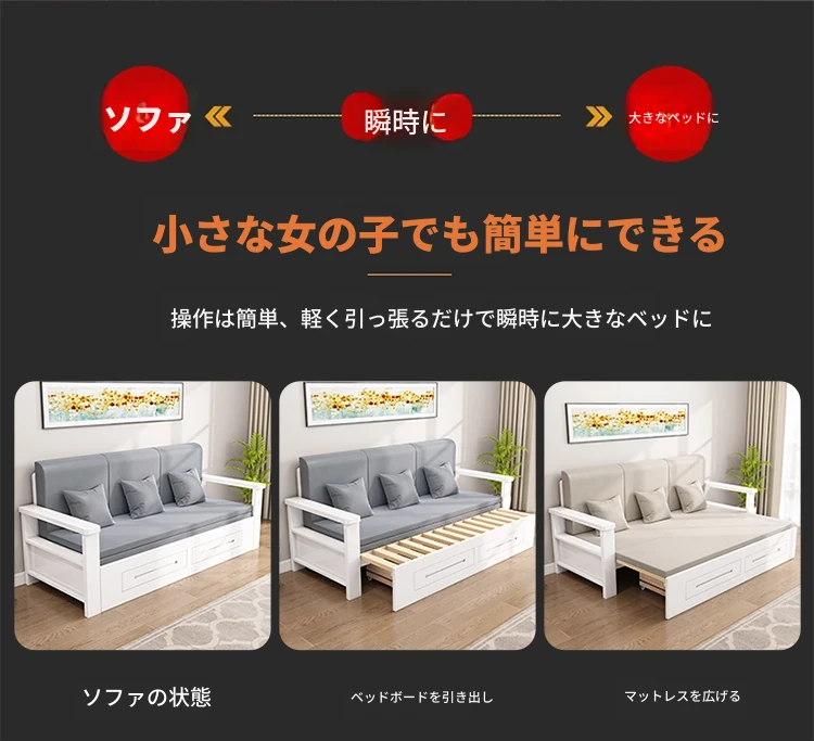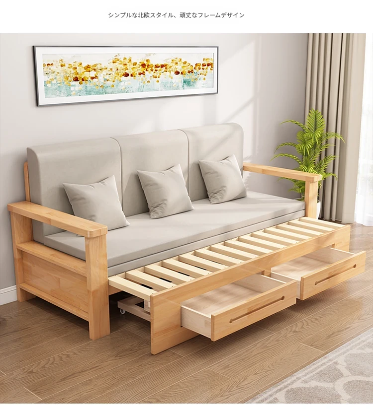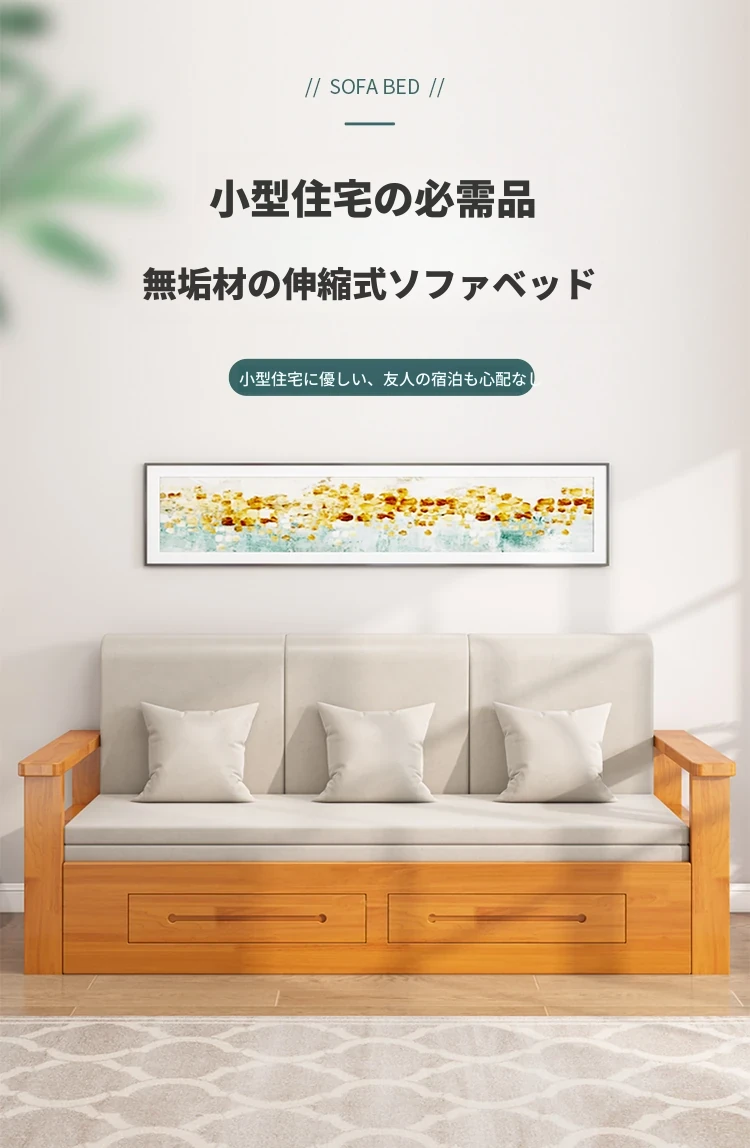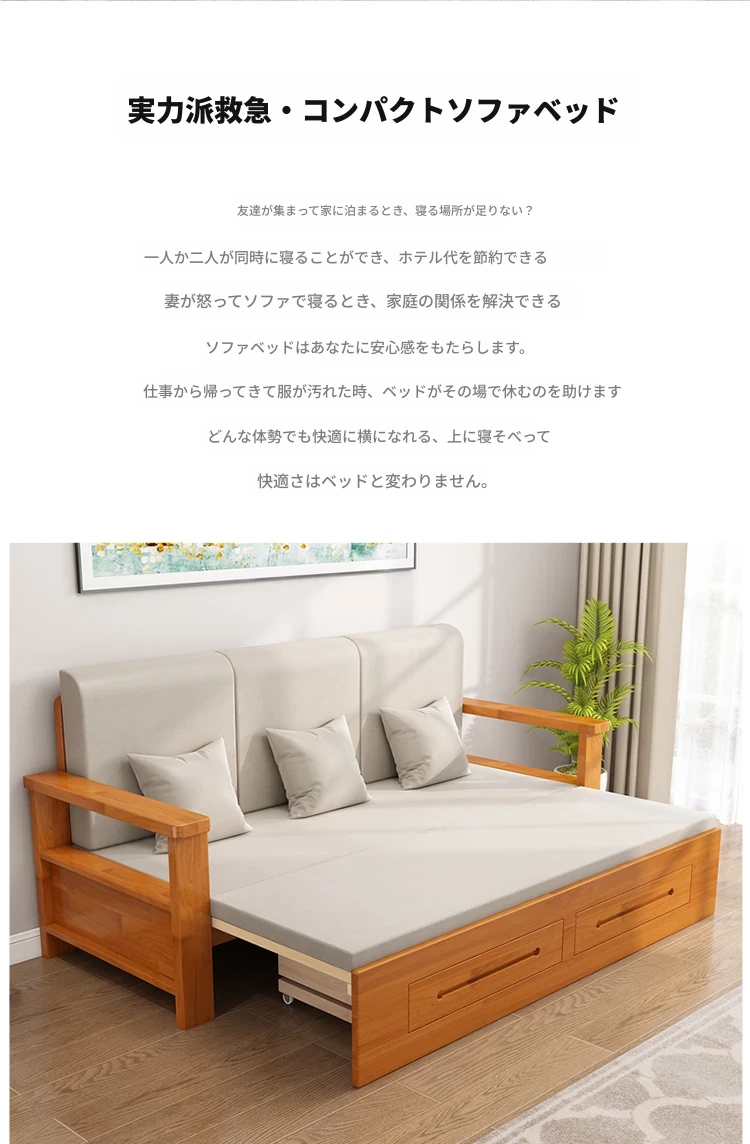 2022年最新!全実木製折りたたみソファベッド - 小型住宅や田舎のリビングにぴったり!寝ることもできるシンプルなデザインで、快適なひとときをお届けします。