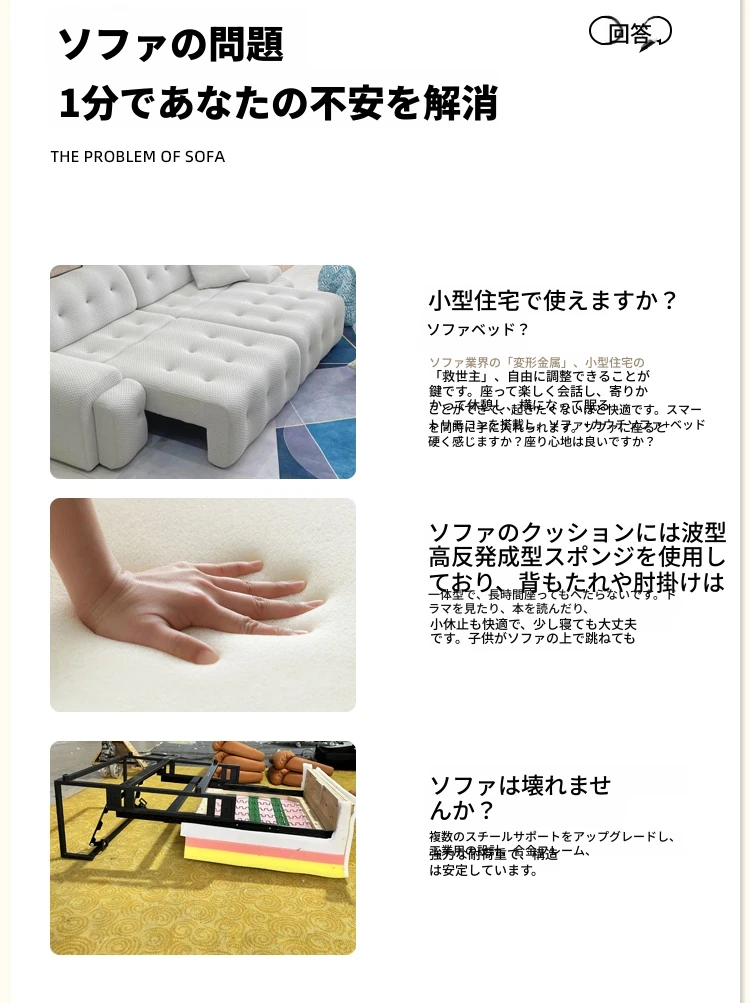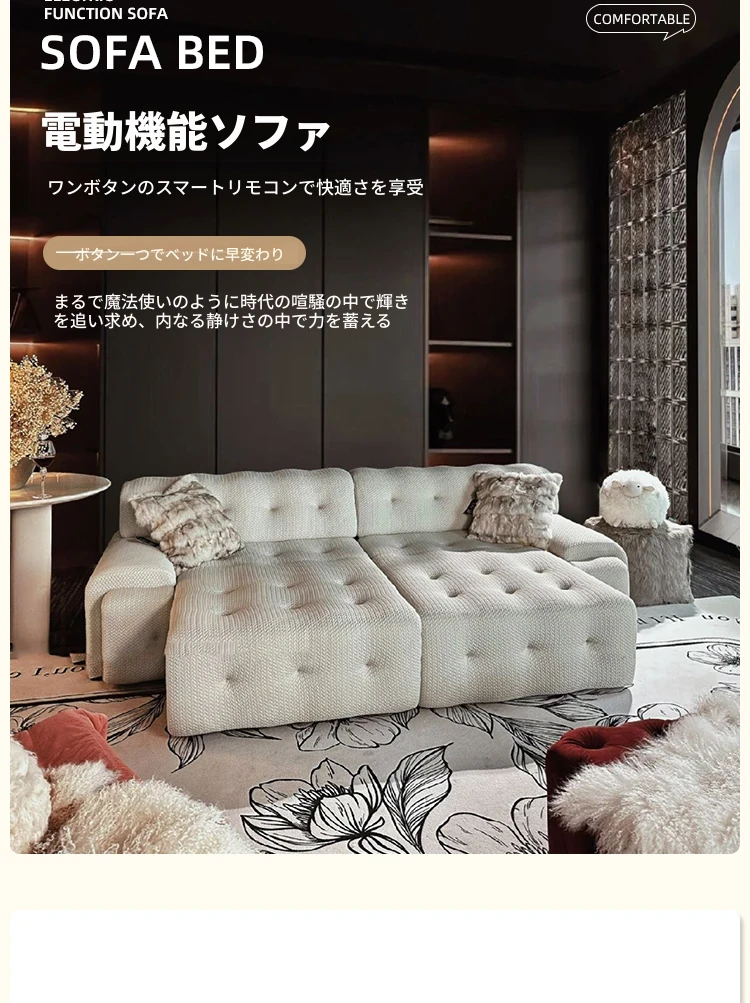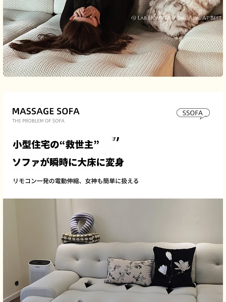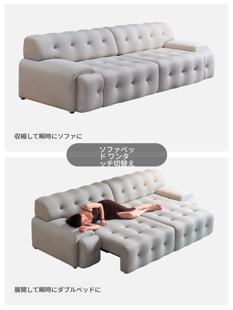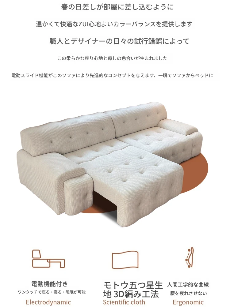 2023年新作!布製ローチ堡ソファー - 電動伸縮機能付きの多機能リビングソファベッド、小型住宅に最適なストレートデザイン!快適さとスタイルを両立した、あなたの理想の空間を演出します。