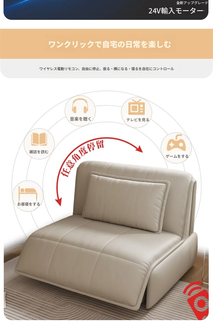 2024年新登场!電動折りたたみEソファベッド - 多機能でスマートな一人用ソファベッド。狭い部屋にもピッタリのスタイリッシュなデザインで、リビングをおしゃれに彩ります!快適さと便利さを兼ね備えたアイテムです!