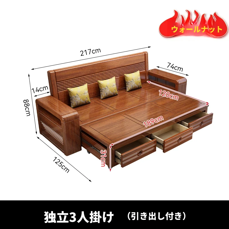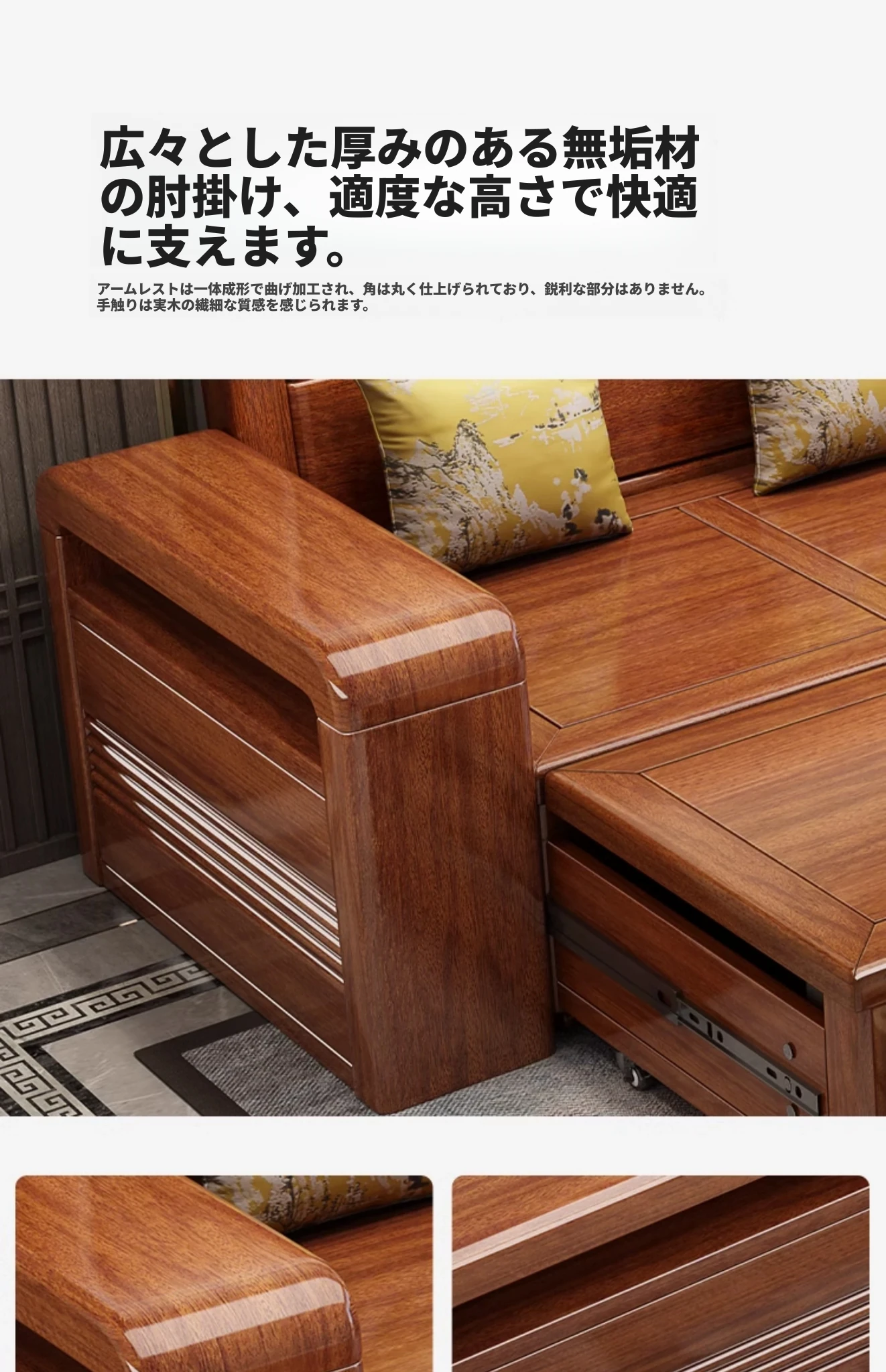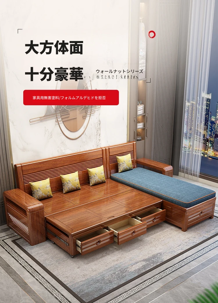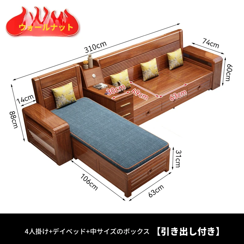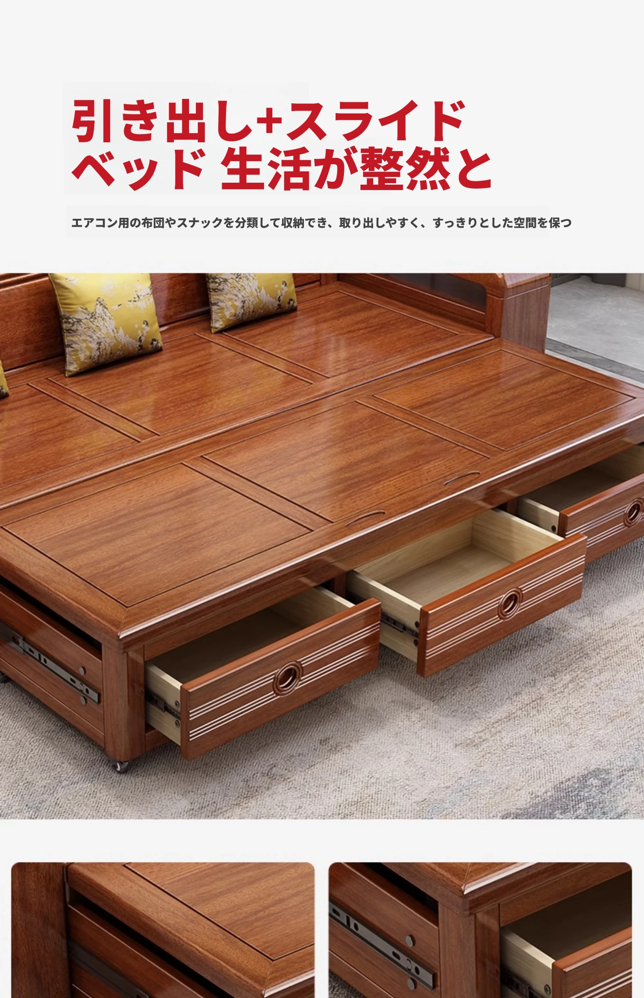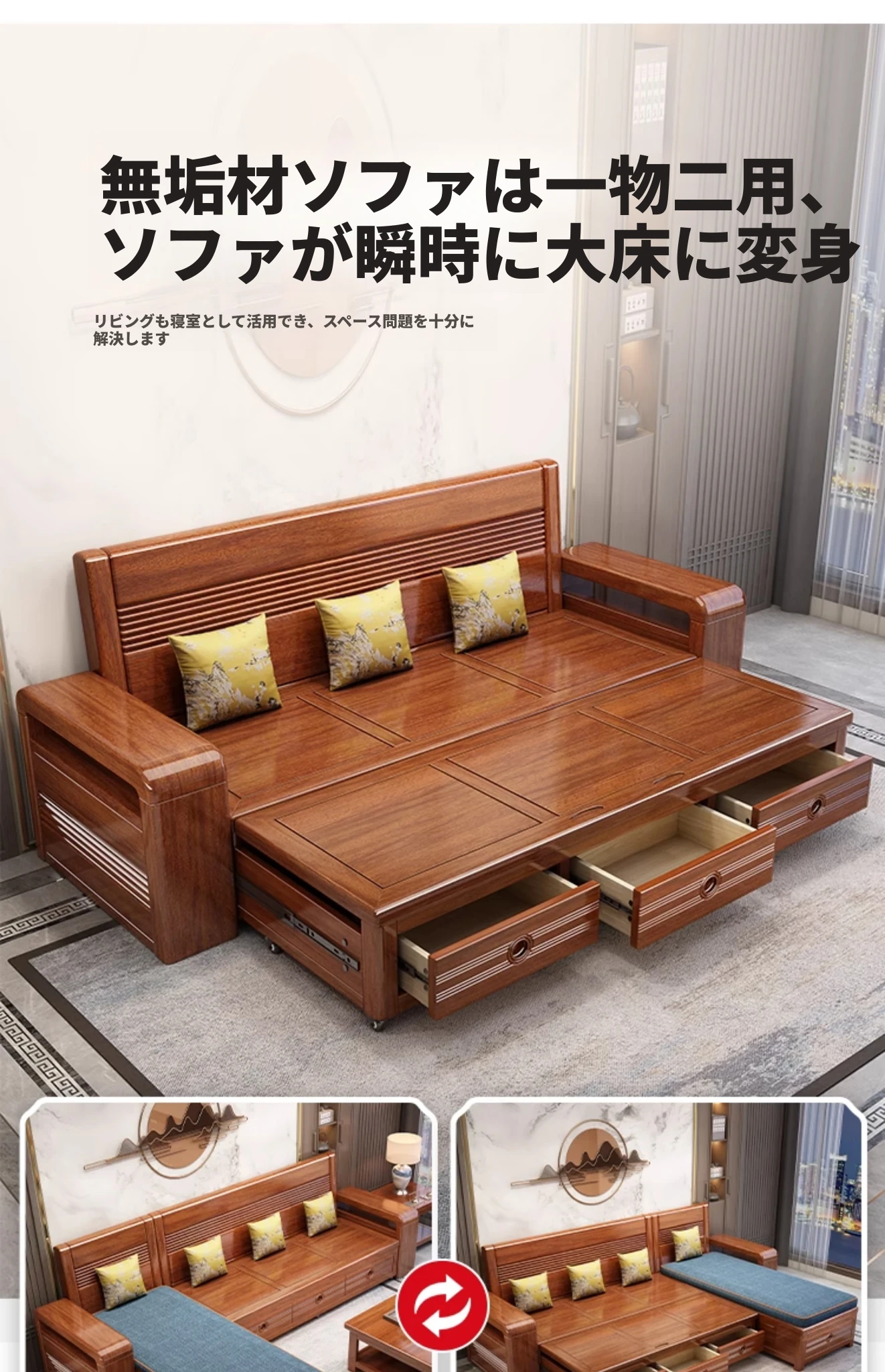 2024年新作!高品質無垢材ソファー - おしゃれなリビングに最適な収納付き中華風ロハンベッド。ウォールナットの美しいデザインで、コンパクトなお部屋にもぴったり!快適な眠りとスタイリッシュな空間を実現します。