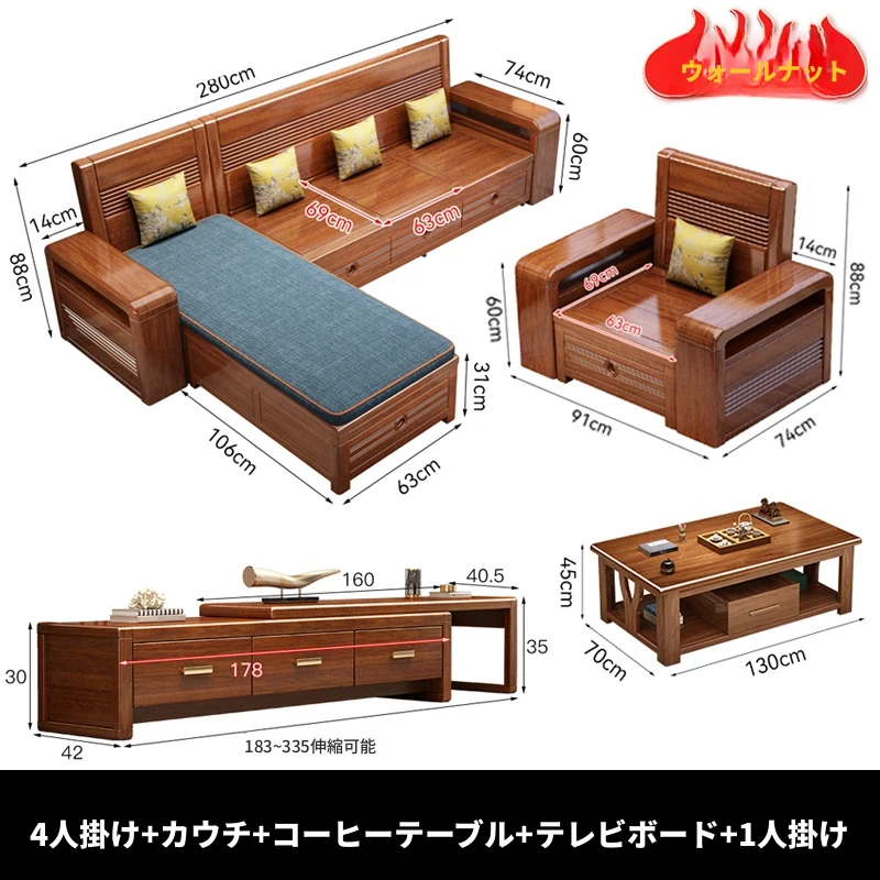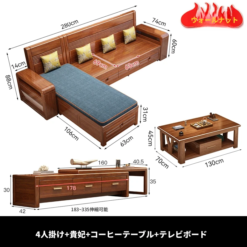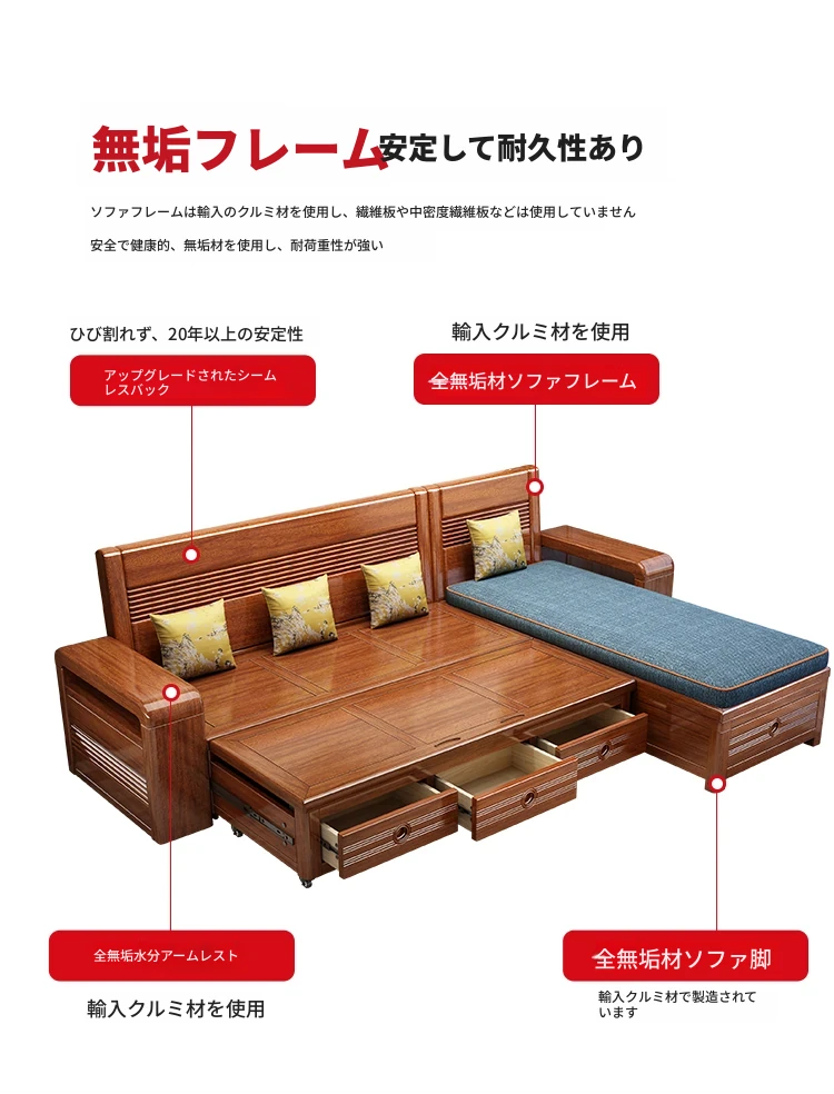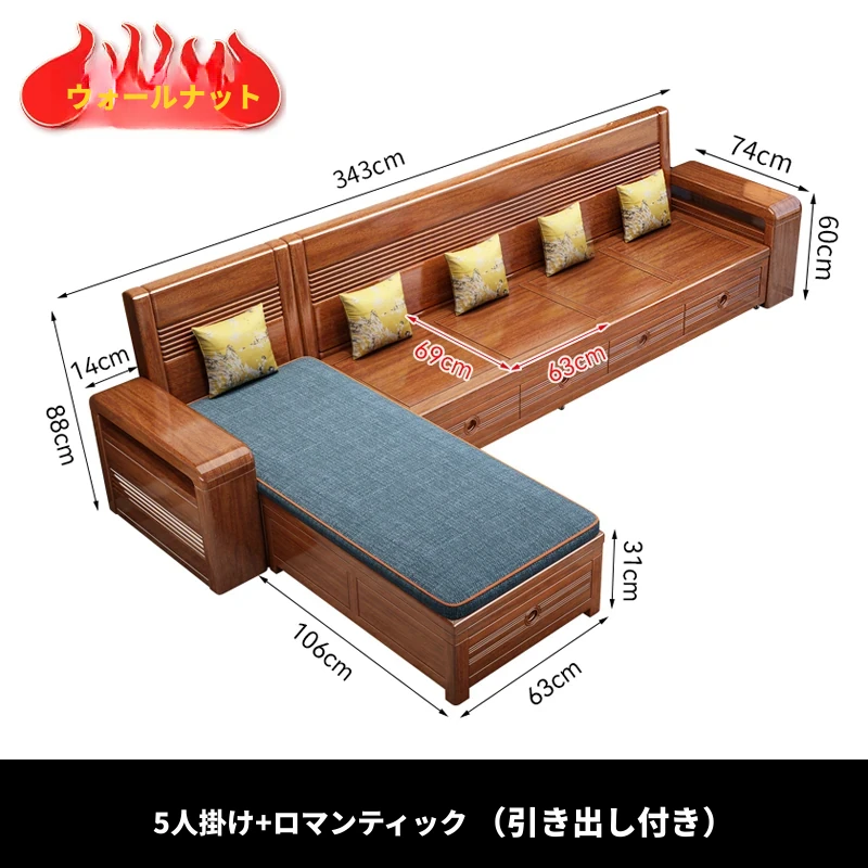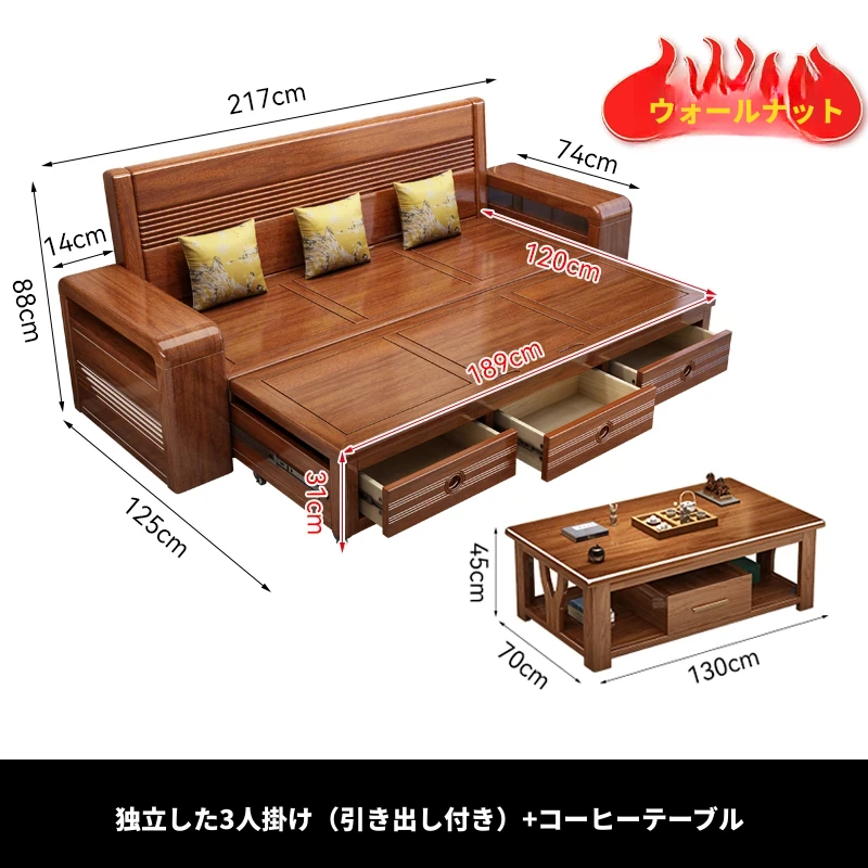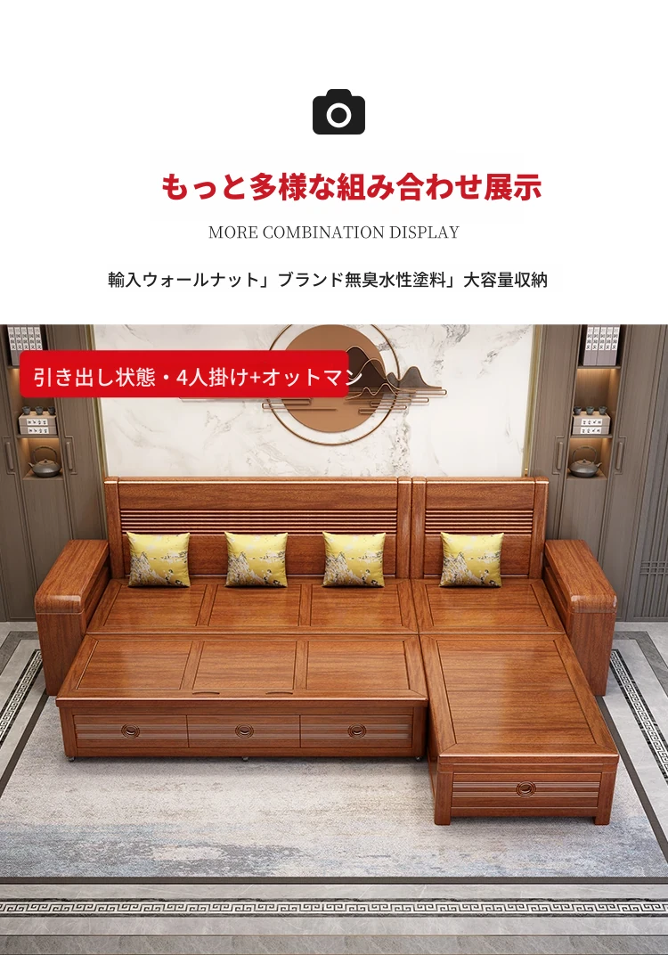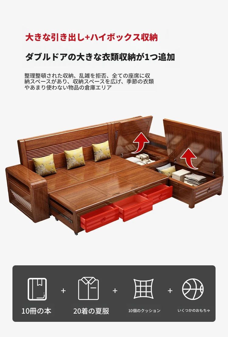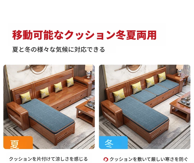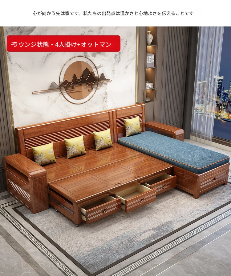 2024年新作!高品質無垢材ソファー - おしゃれなリビングに最適な収納付き中華風ロハンベッド。ウォールナットの美しいデザインで、コンパクトなお部屋にもぴったり!快適な眠りとスタイリッシュな空間を実現します。