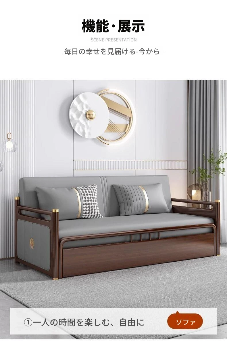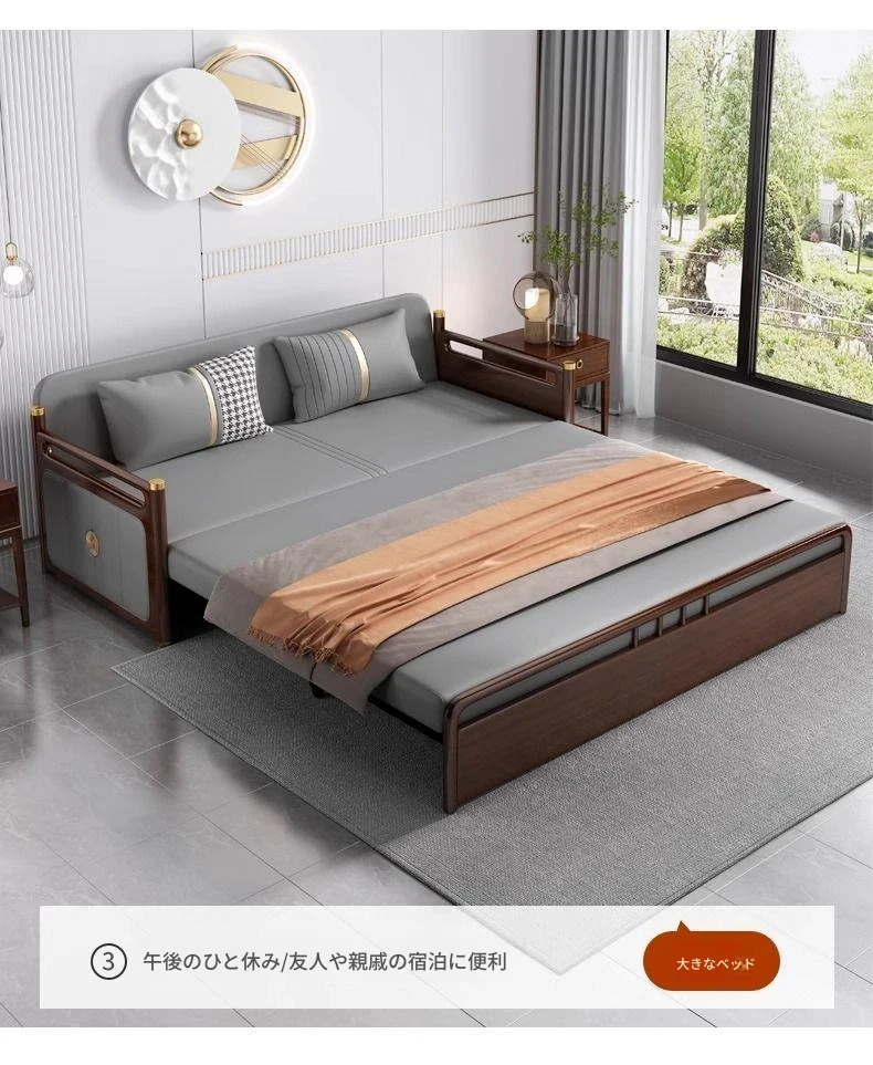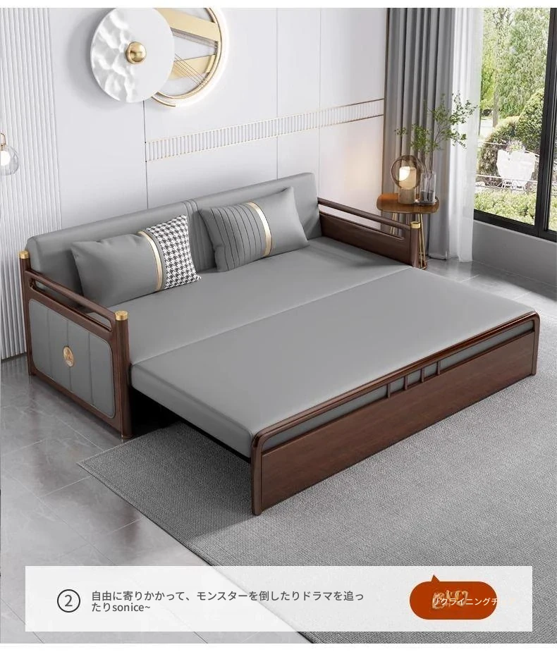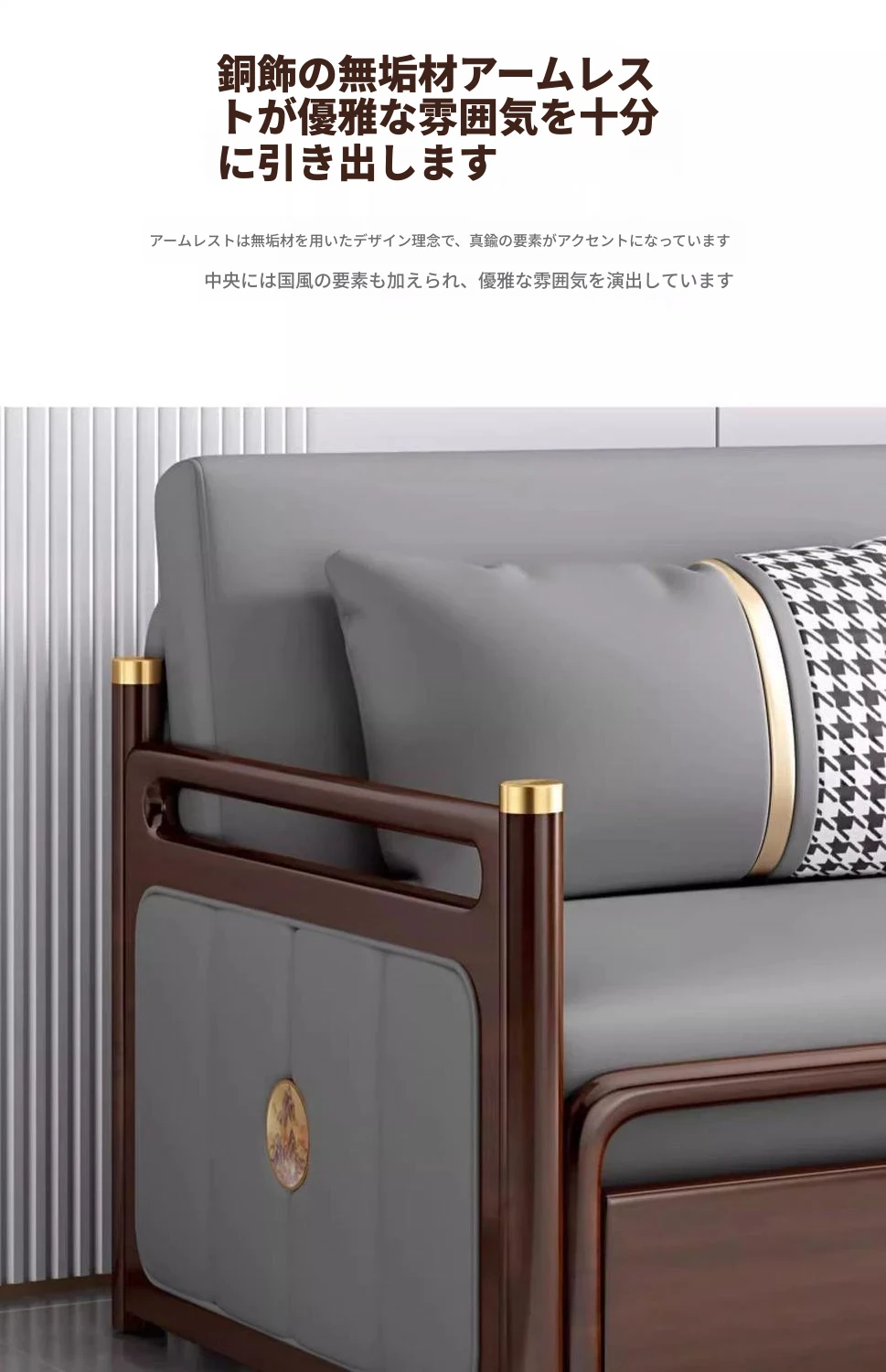 大人気!折りたたみ式実木ソファベッド 二人用 多機能新中式ロハンベッド 小型リビングに最適 2025年モデル