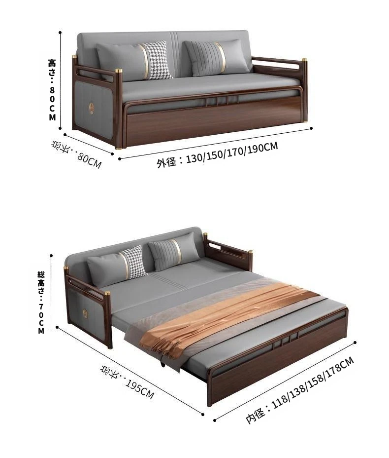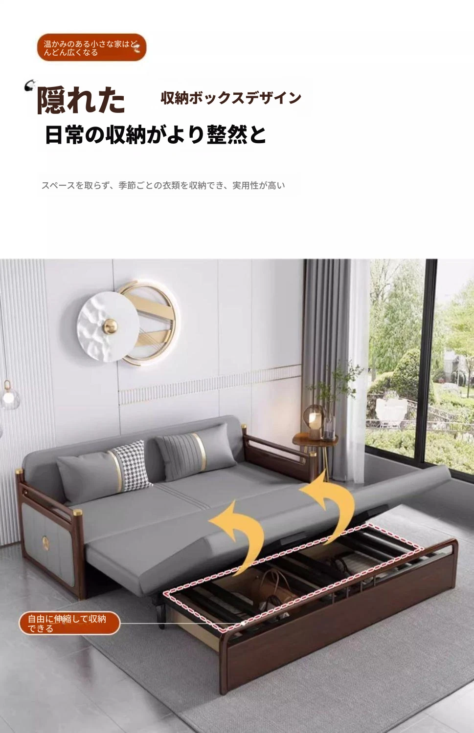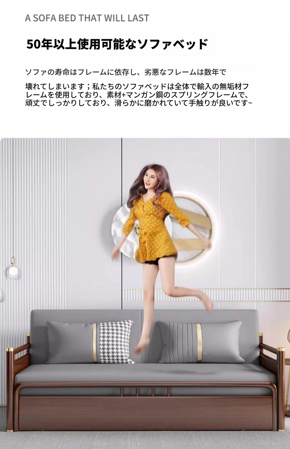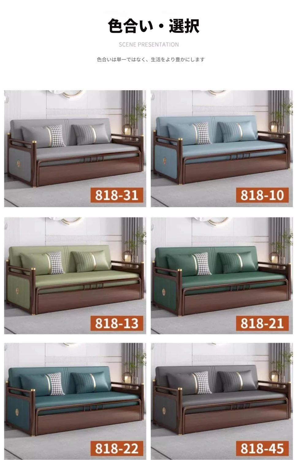 大人気!折りたたみ式実木ソファベッド 二人用 多機能新中式ロハンベッド 小型リビングに最適 2025年モデル